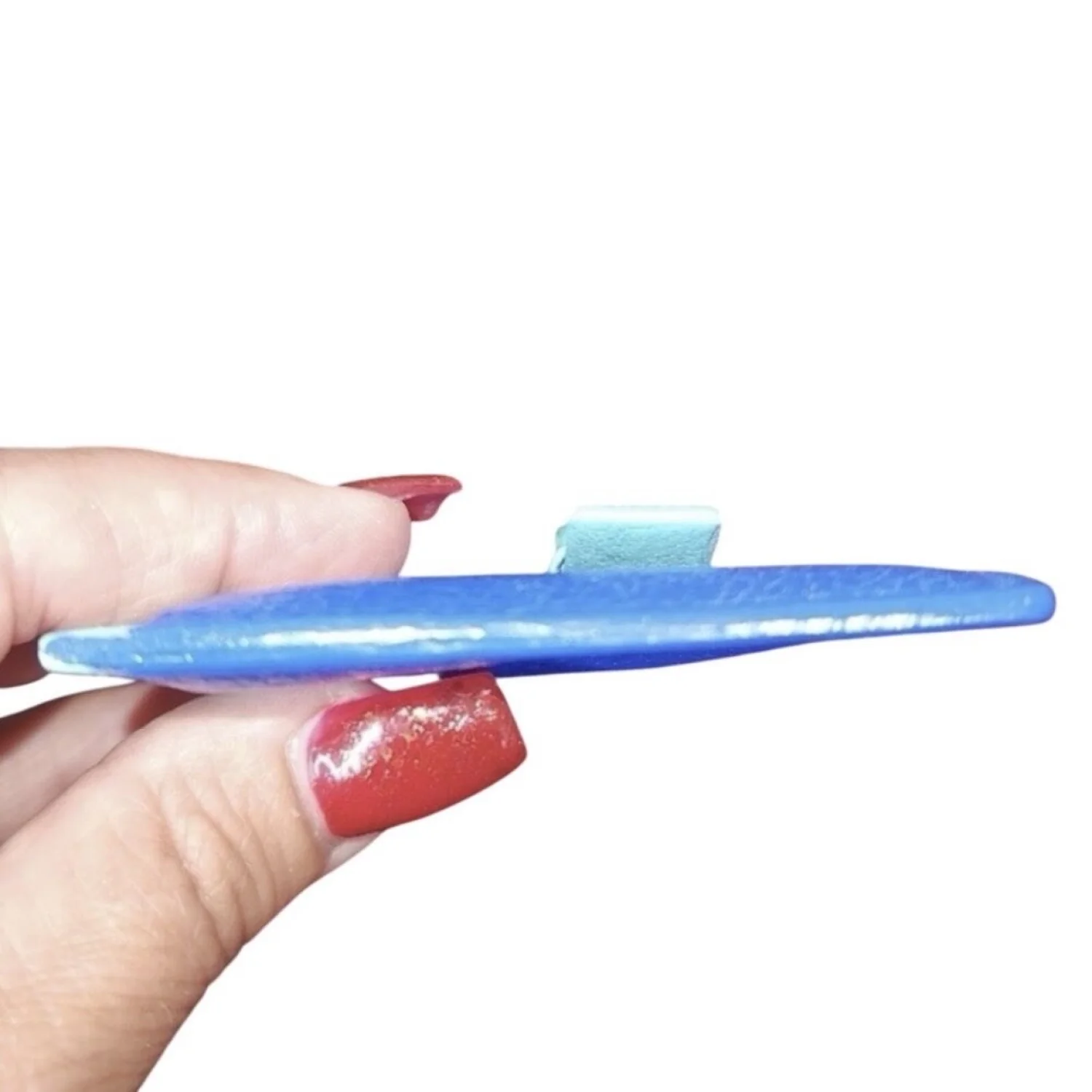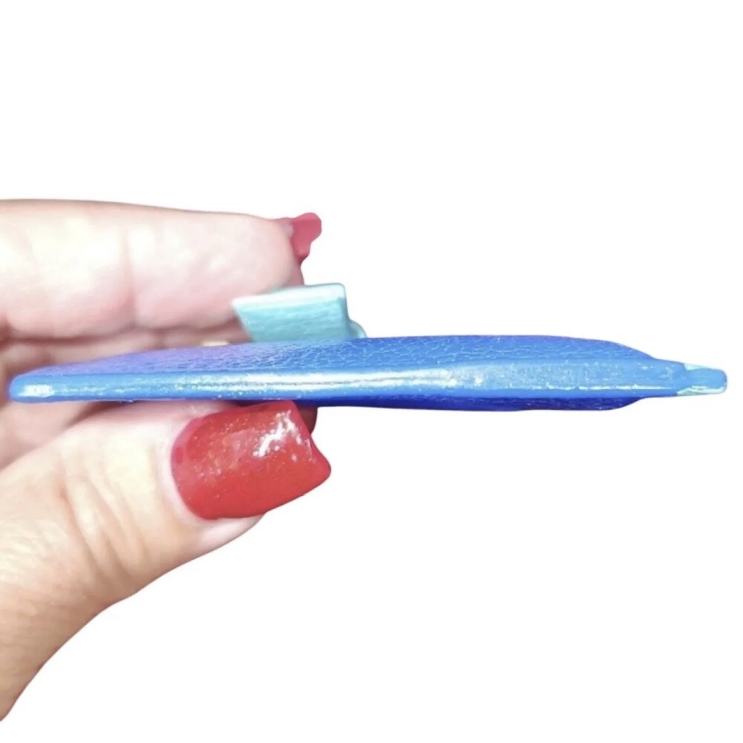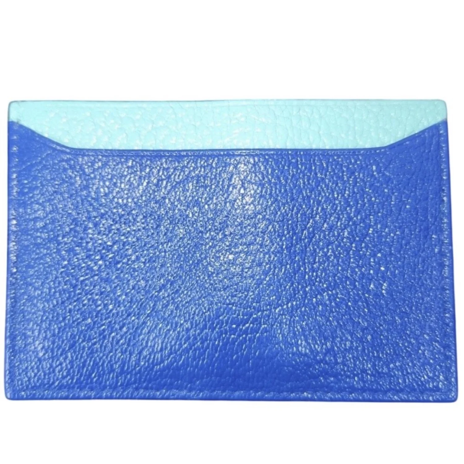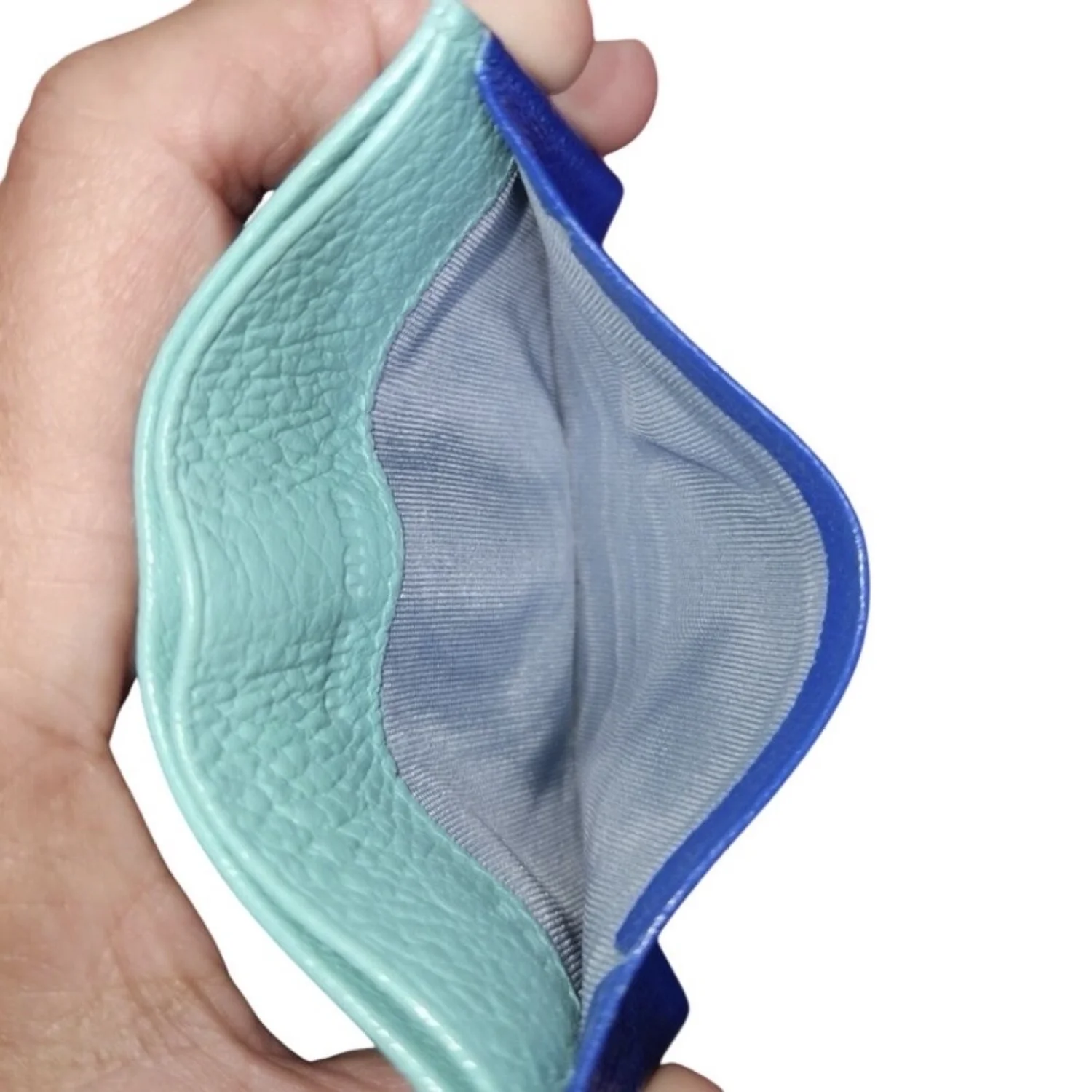 Authentic Miu Miu leather card case / slim wallet in a striking blue and aqua two-tone pebbled leather, finished with the signature bow detail and gold logo. A compact, lightweight piece perfect for cards or a minimalist carry. Condition details: • Exterior leather is in very good condition with vibrant color • Interior shows a small area of cosmetic touch-up / repaint near one seam (see close-up photos) • No structural damage, no peeling • Stitching intact and fully functional Please review all photos carefully, especially the interior, as they are part of the description. Details • Brand: Miu Miu • Material: Pebbled leather • Color: Blue / Aqua • Style: Card case / slim wallet • Logo: Gold-tone “miu miu” • Made in Italy