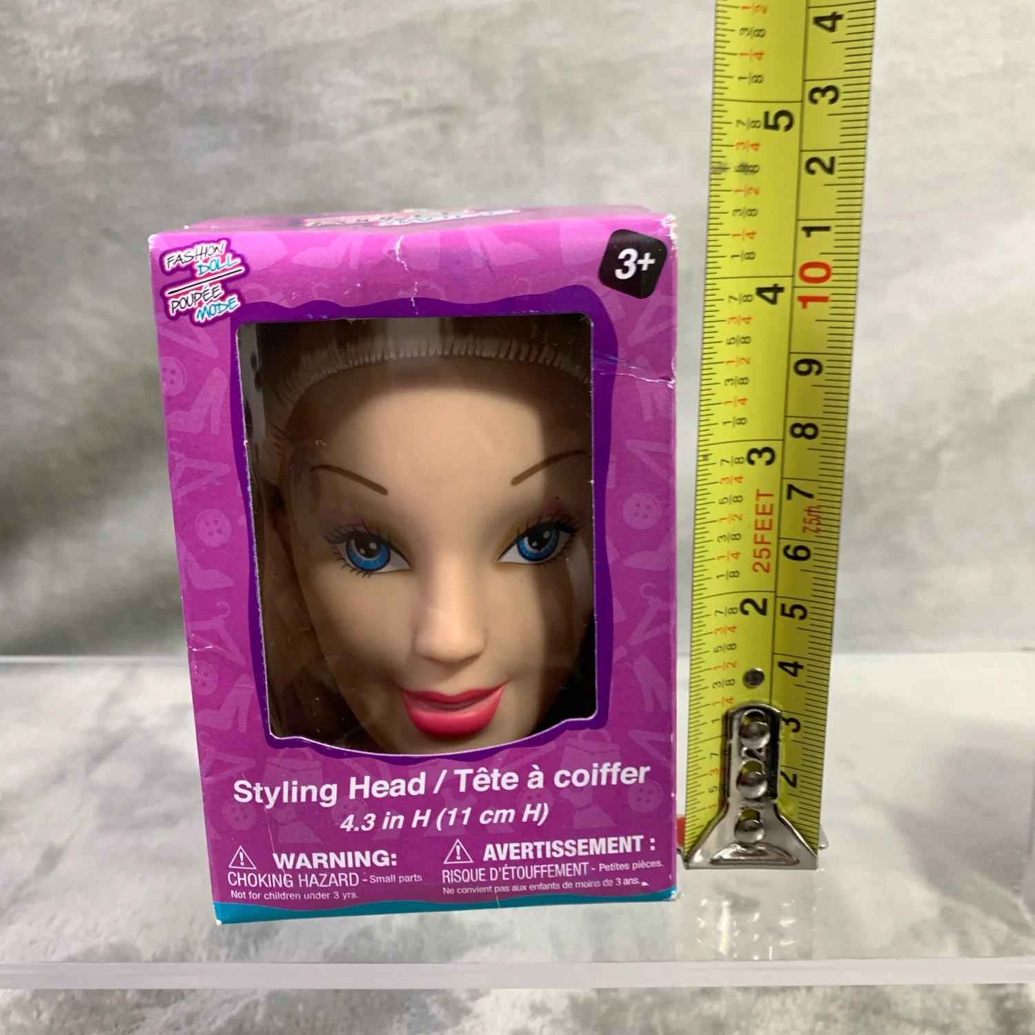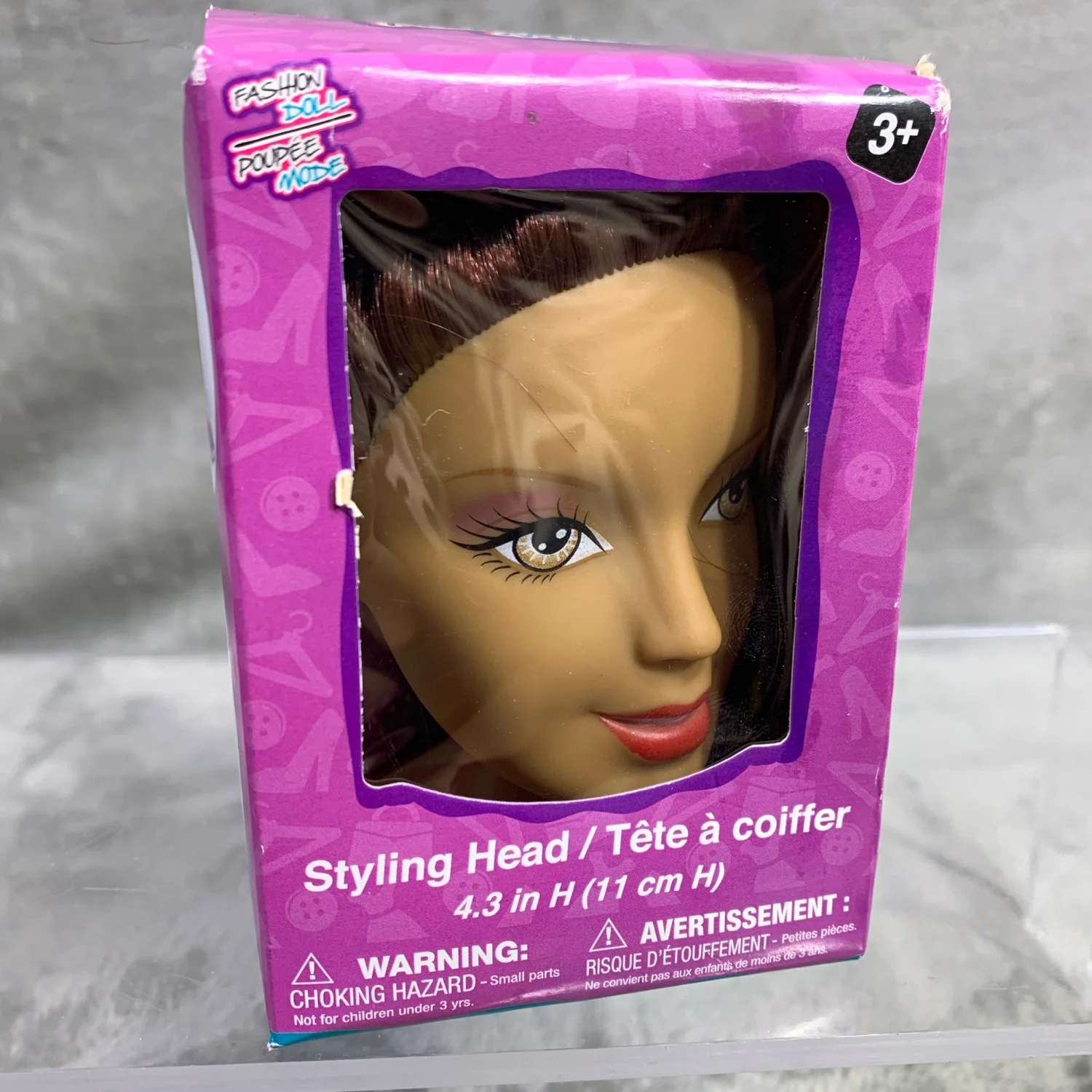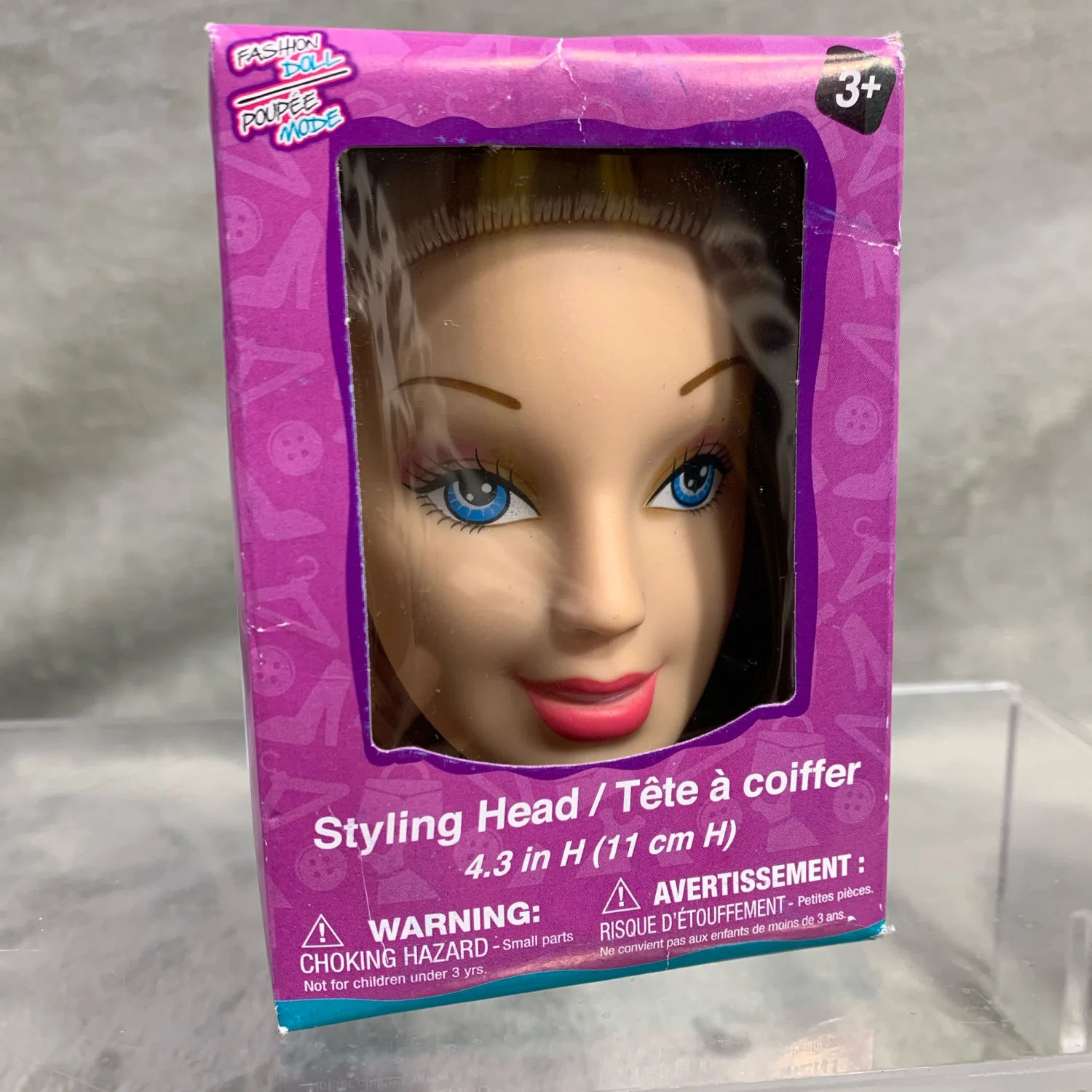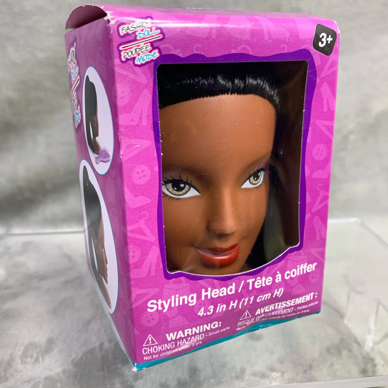 Set includes 3 styling doll heads with combs. Light skin with blonde hair and blue eyes Tan skin with brown hair and eyes Dark skin with black hair and brown eyes Boxes are imperfect. Never been opened.