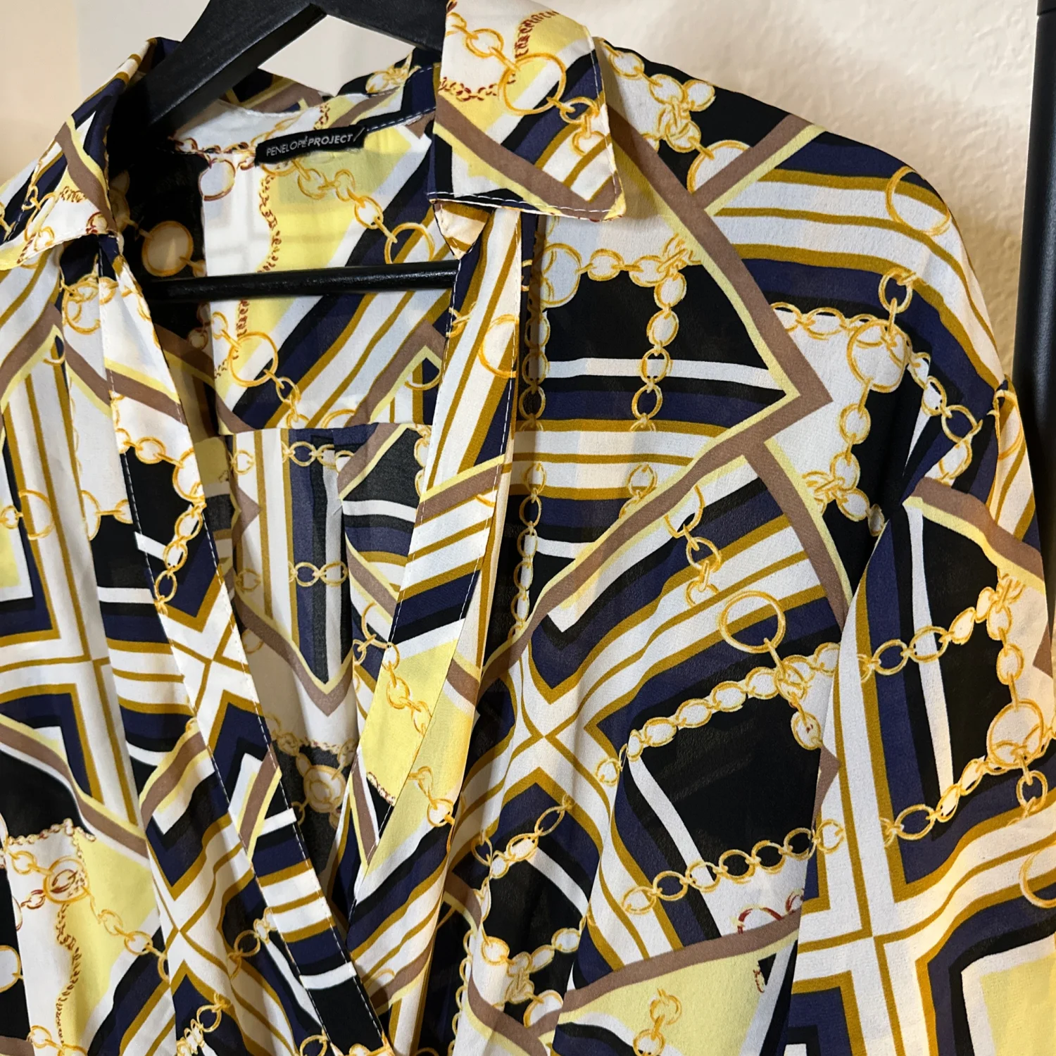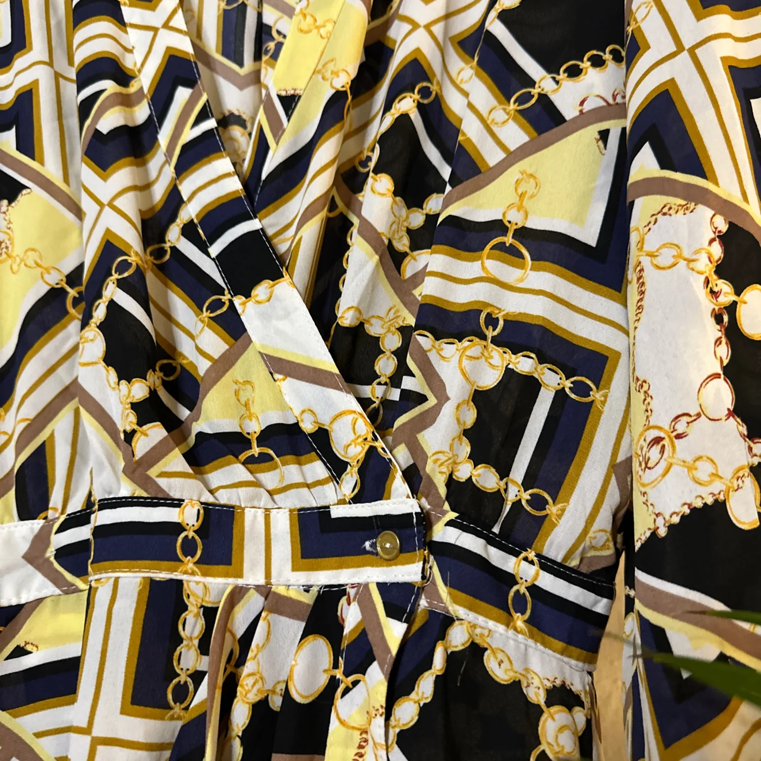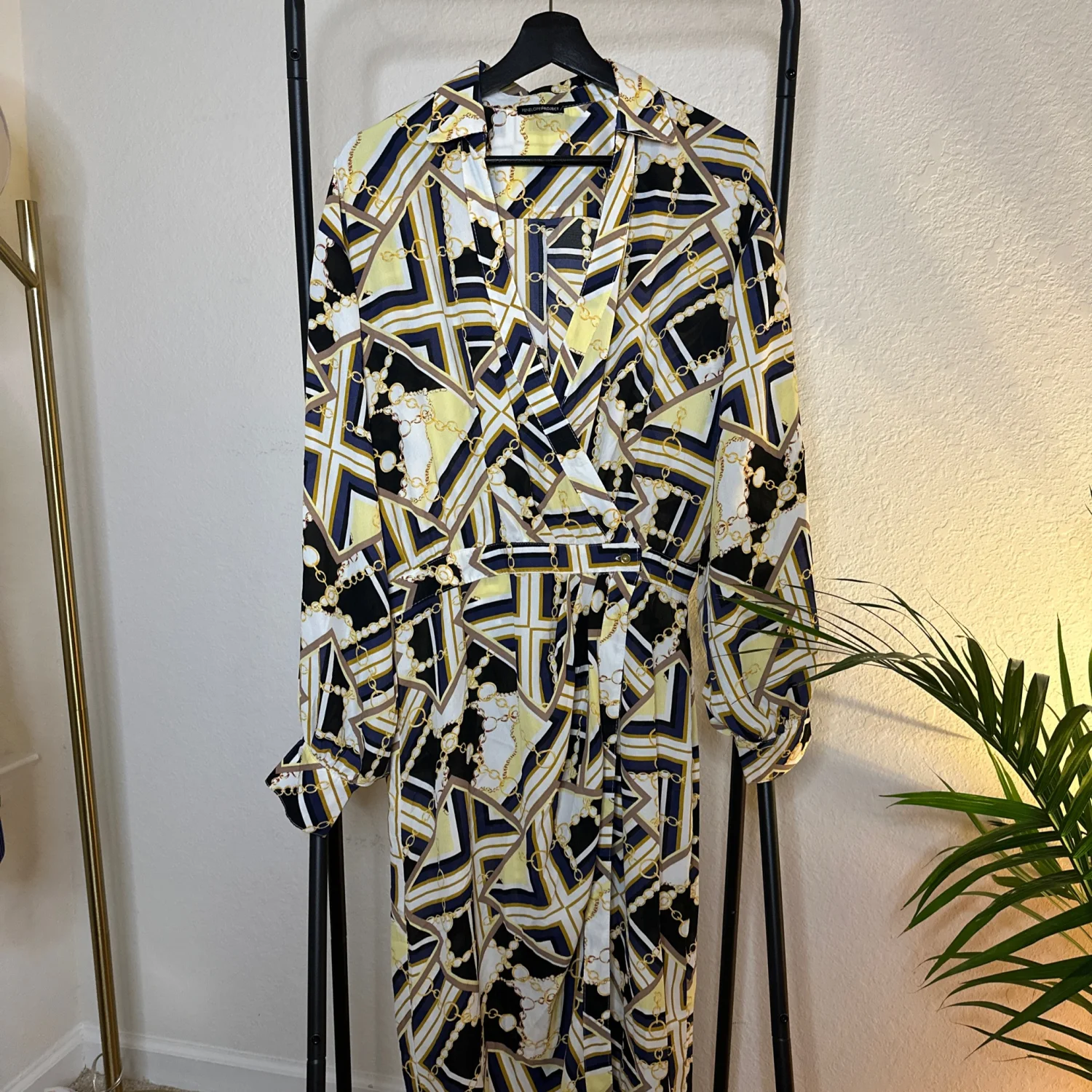 Long sleeve midi shirt/wrap dress Nice condition/ all buttons intact Sexy night on the town/thigh action number Gold/Black/Blue/Yellow/Gold