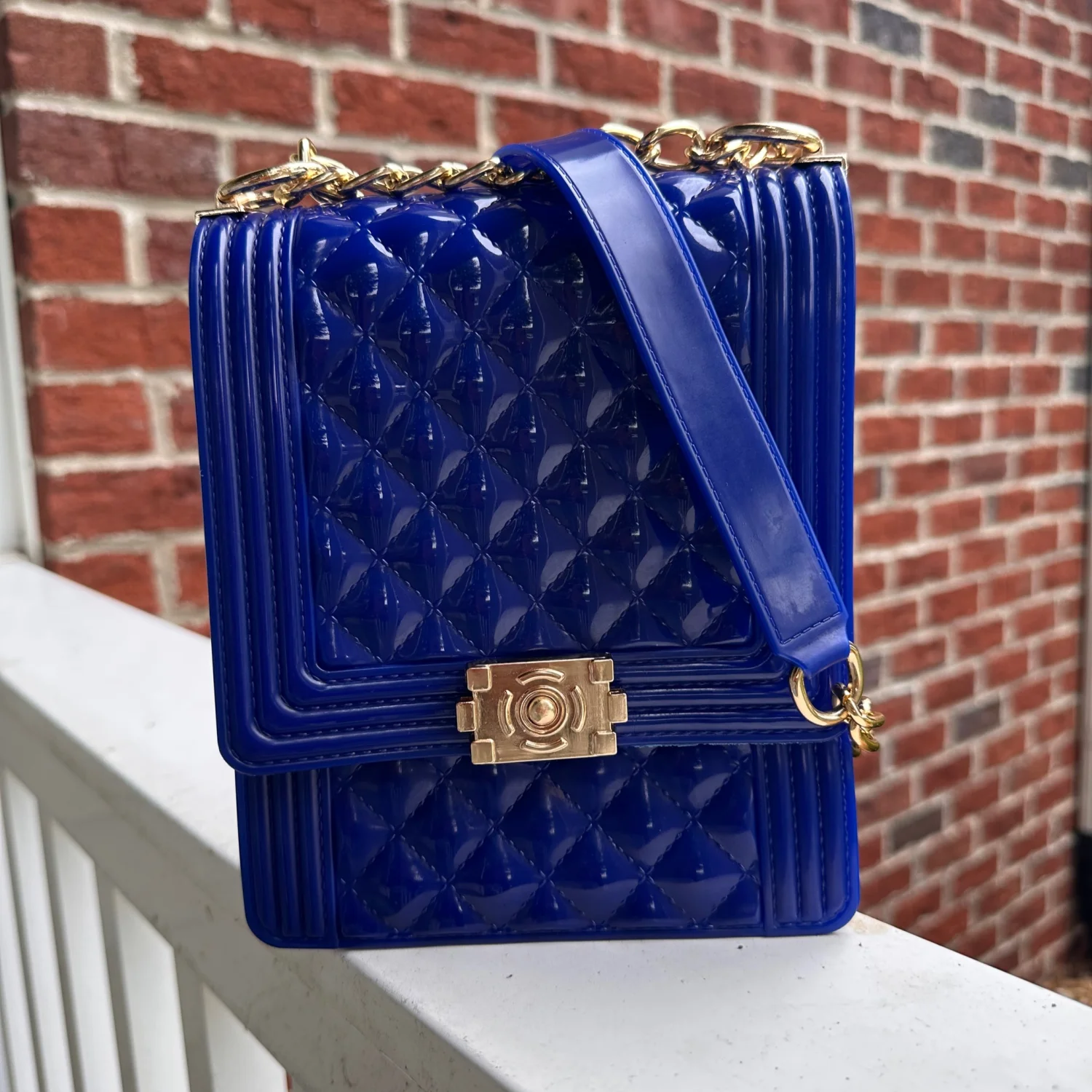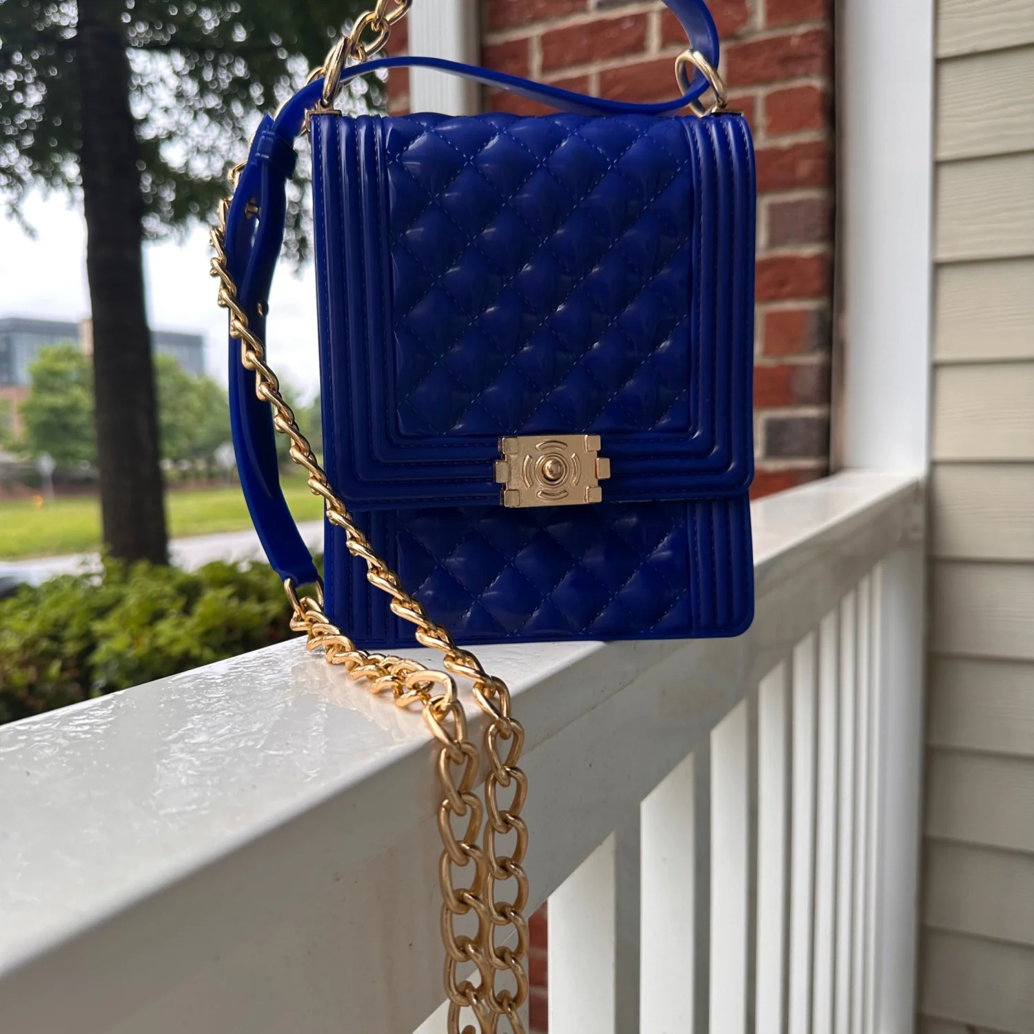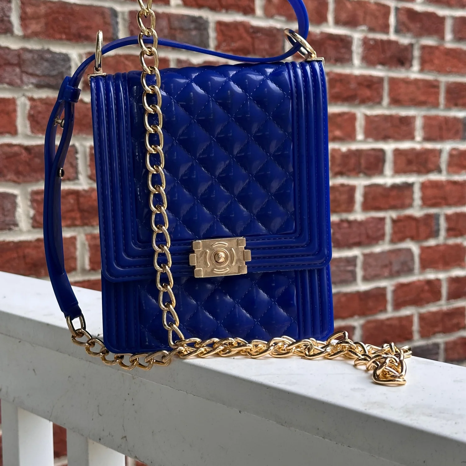 Royal blue crossbody bag with a cute gold chain Strap is gold
