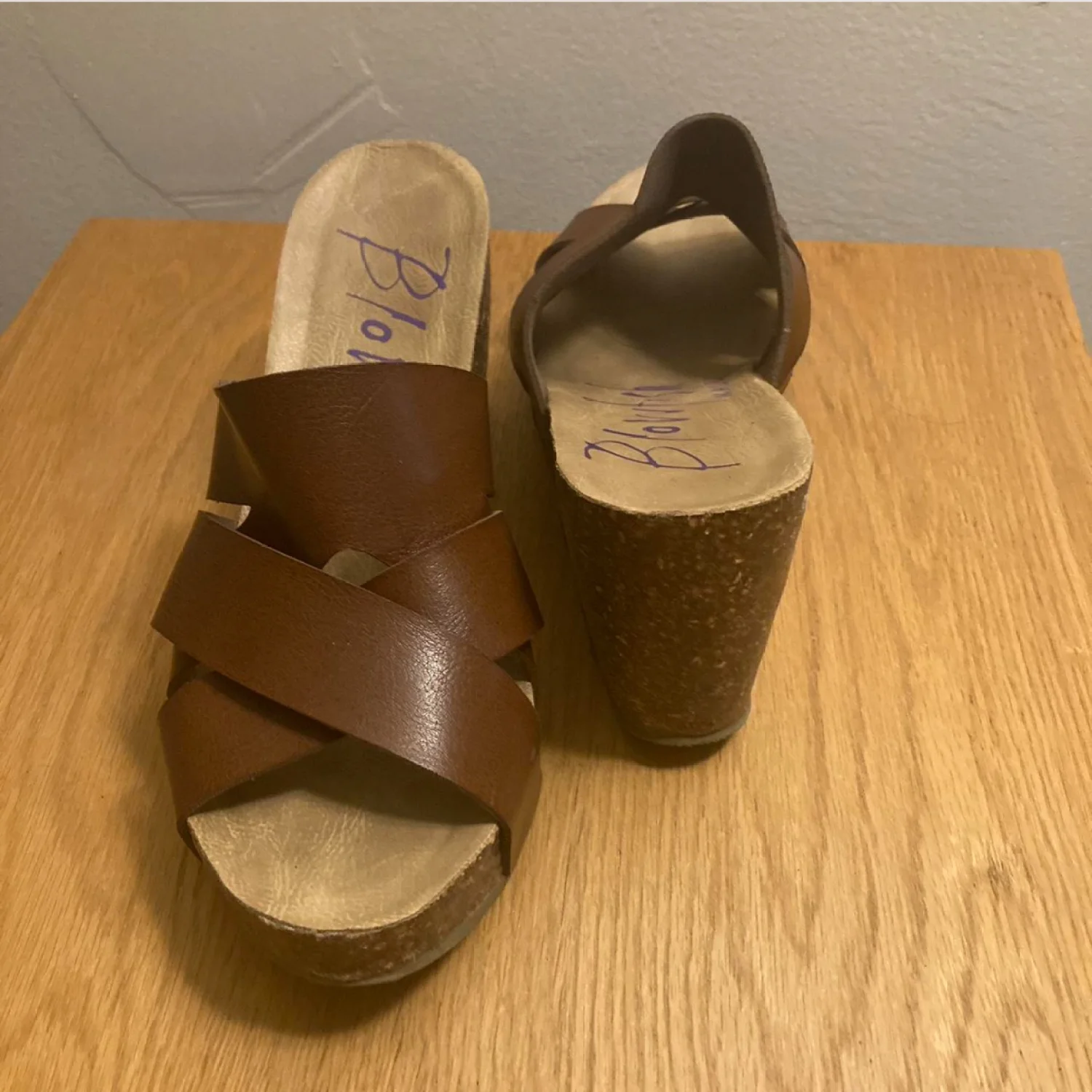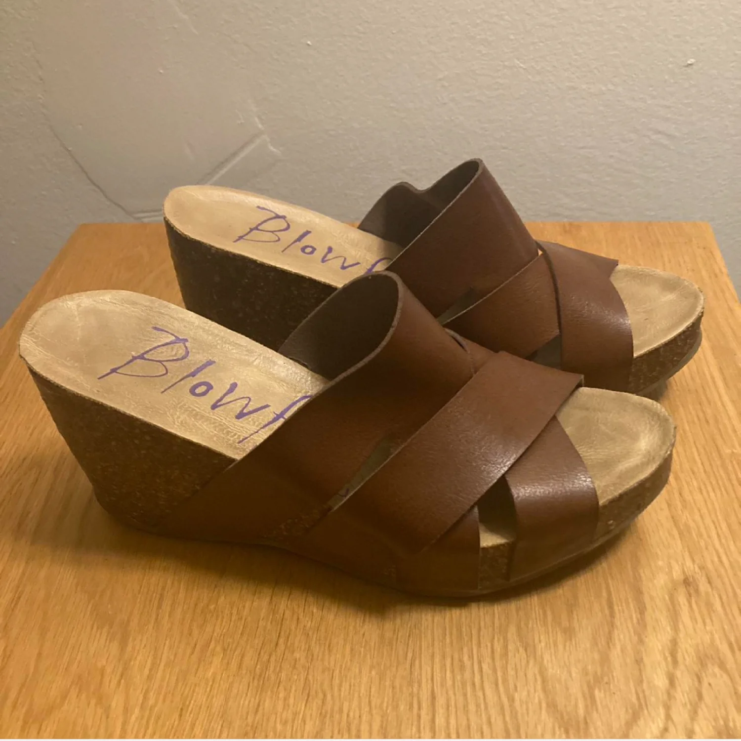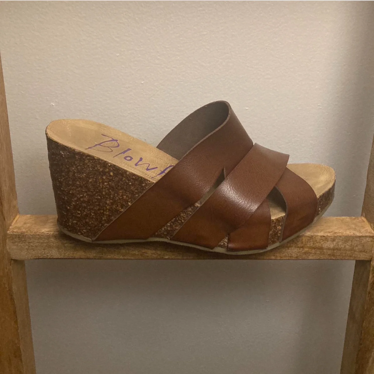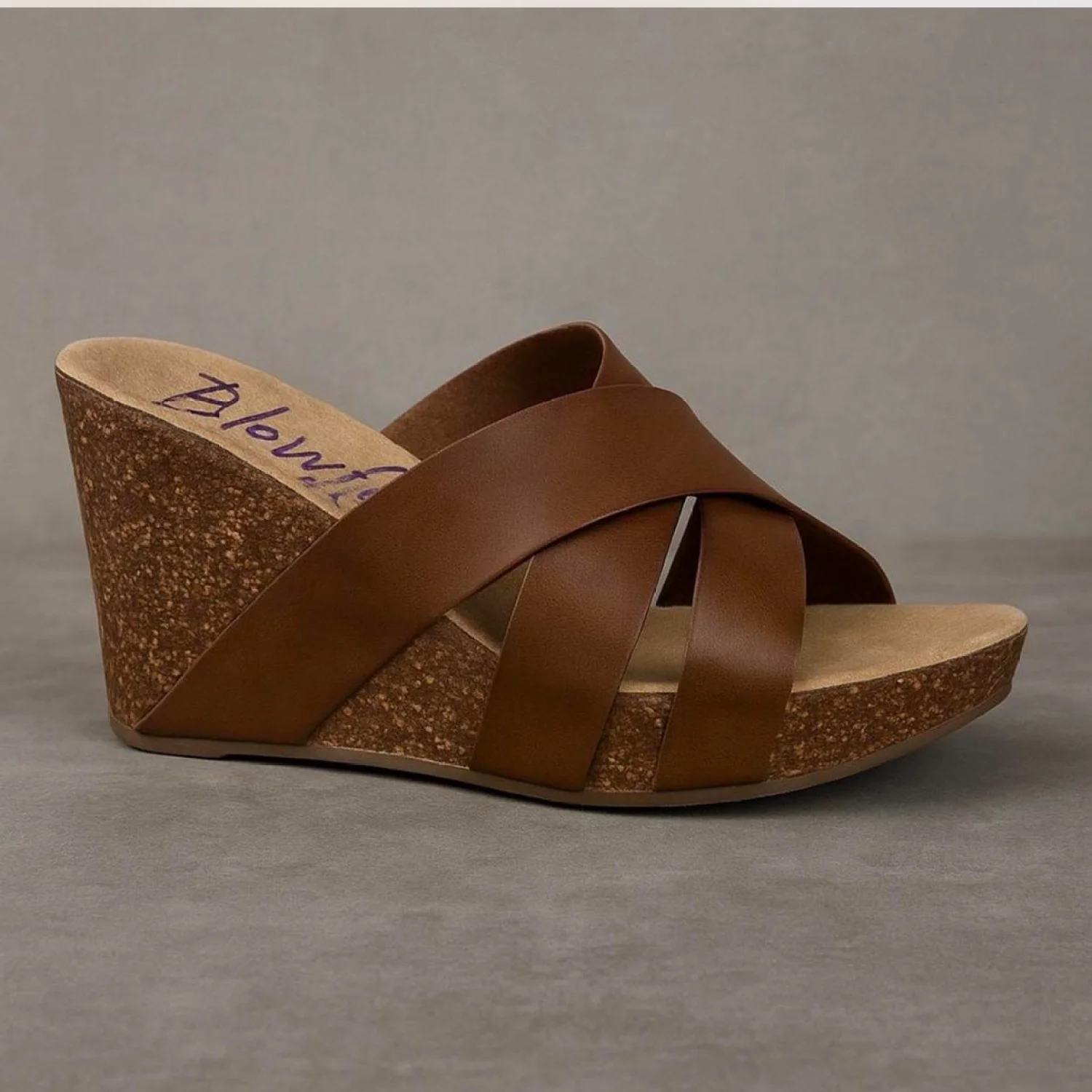 Stylish Blowfish Malibu wedge sandals featuring brown faux leather straps and a comfortable cork sole. These sandals are perfect for casual outings or dressing up a summer outfit. With a slip-on design and wedge heel, they ensure ease and comfort. #SummerWear #CasualSandals #BlowfishStyle • #EverydayWedge • #SummerSandal • #BeachVibes • #CasualChic