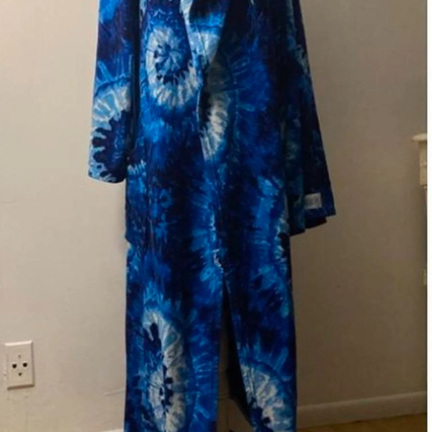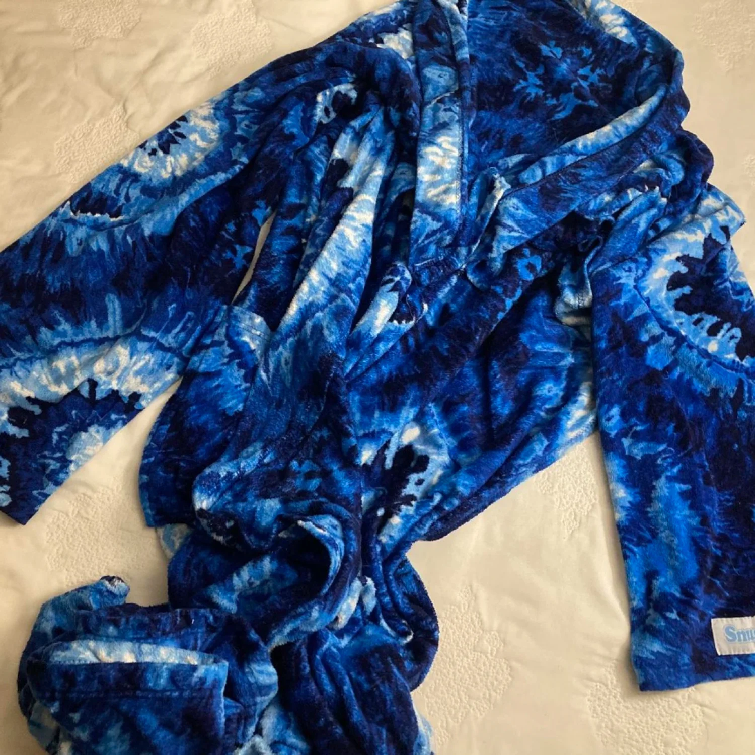 Stay warm and cozy with this blue tie-dye Snuggie blanket. Featuring full-length design with sleeves, it allows you to stay warm while keeping your hands free. Ideal for lounging at home during chilly nights. The soft fleece material ensures maximum comfort. #cozy #homeliving #tiedye