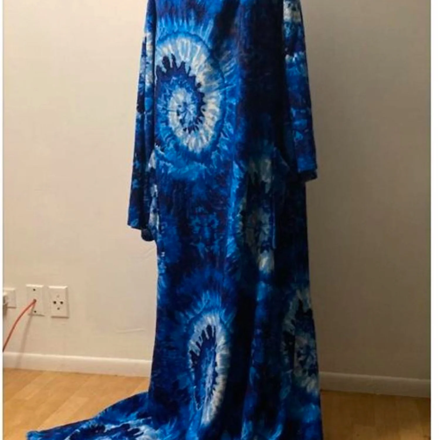 Blue Tie-Dye Snuggie Blanket with Sleeves