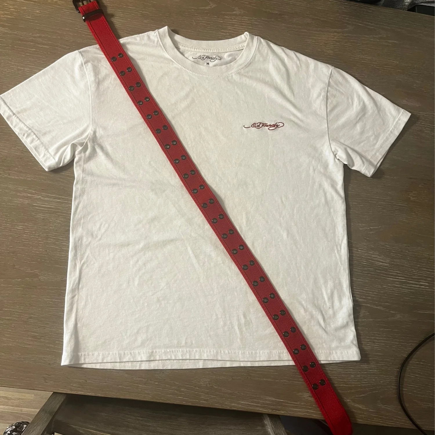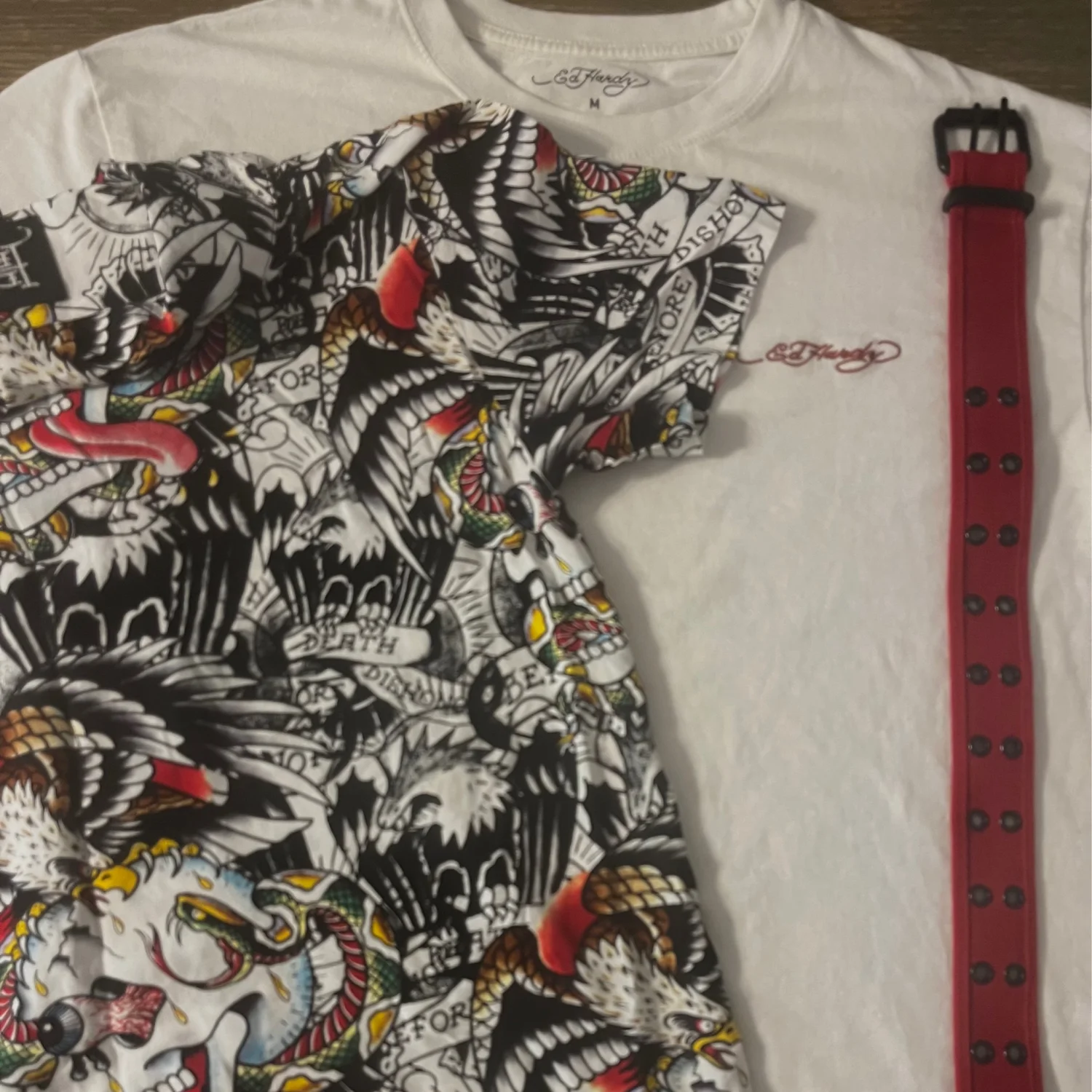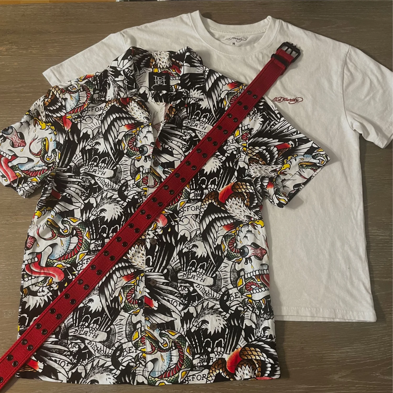 Ed Hardy Graphic Shirt Set with Red Belt