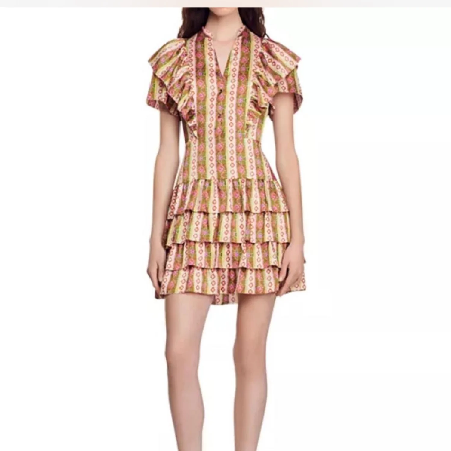 ✨ New with Tags – Make a statement in this luxe Sandro Paris mini dress. Features a stunning multicolor paisley floral print, fluttery ruffled sleeves, a tiered skirt, and button-up V-neckline. Bold, feminine, and perfect for dressing up or down.