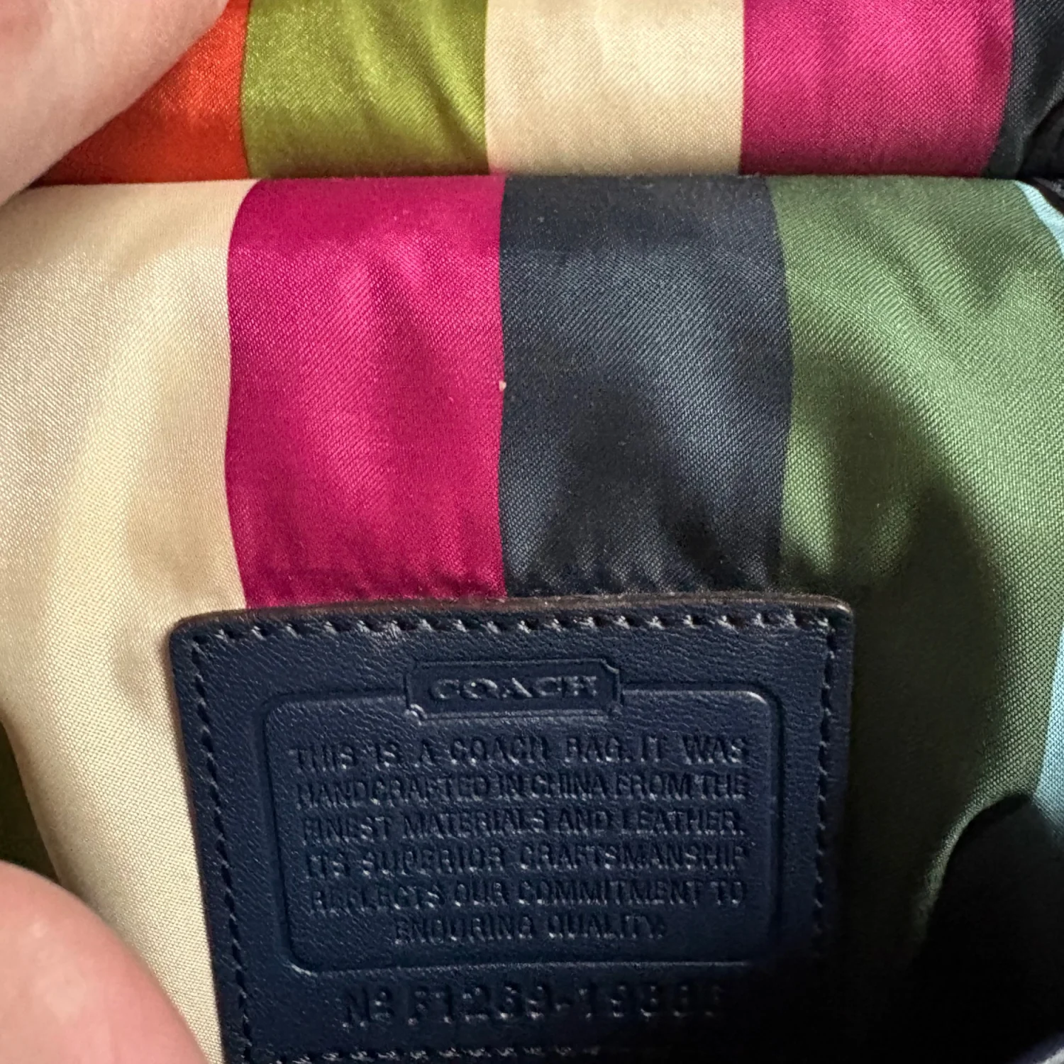 Images taken in natural light. Leather Inside multifunction pocket Turnlock closure, fabric lining Silver hardware Handle with 4" drop Detachable long strap with 21 1/2" drop 6 3/4" (L) x 6 3/4" (H) x 3" (W) Comes with long strap, tassel, leather Coach hang tag and metal cut out Coach hang tag Number B1269-19886 B: The bag was manufactured in February. 12: It was produced in 2012. 69: This code indicates the specific factory or location of manufacture. 19886: This is the style number for the Legacy Mini Willis ——- Condition: Good overall. Clean interior with stripes. Exterior clean, no noted flaws. Has been used but no noticeable indentations or issues. Style no: F1269-19886