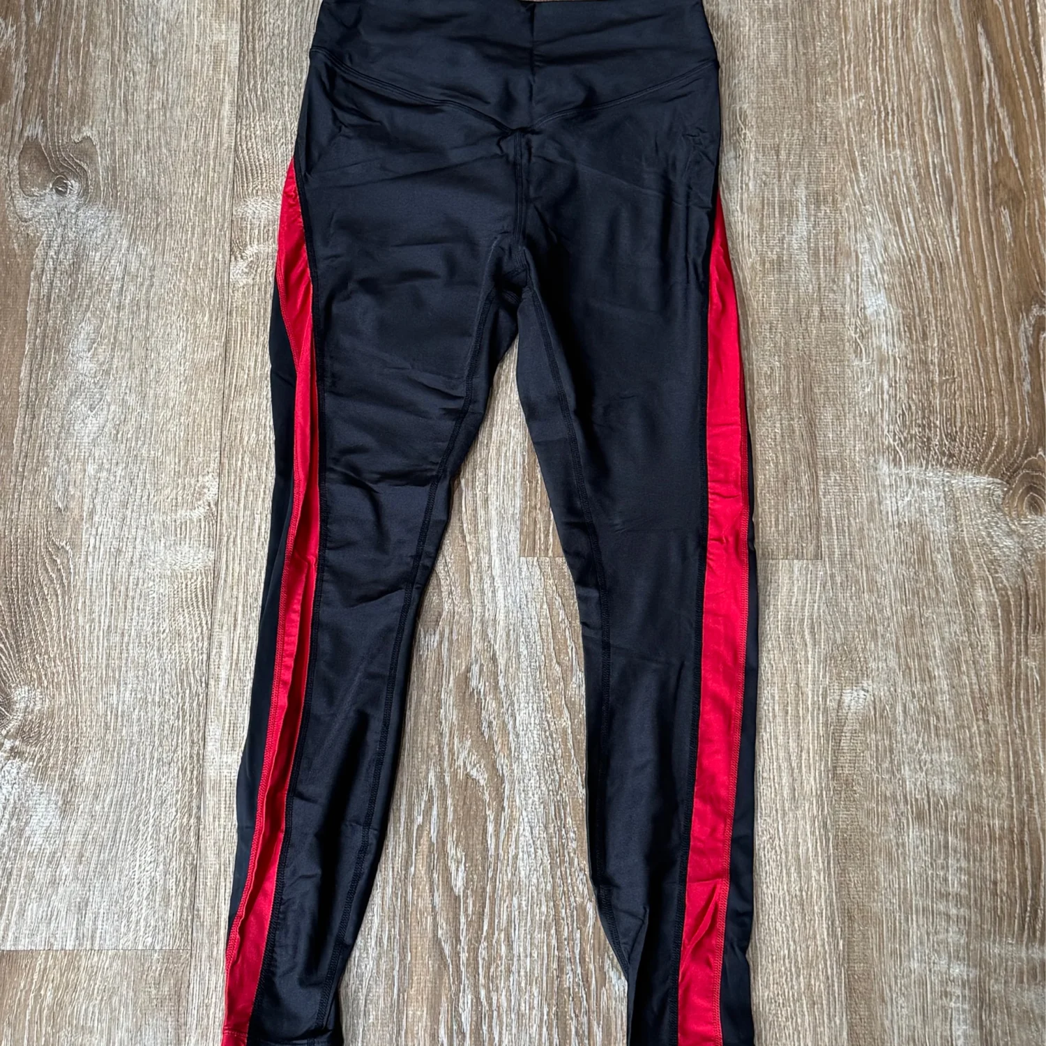 Used great condition Founded in response to fast paced modern life and inspired by the label’s home of New York City, Alala is the luxury activewear brand that brings a sophisticated edge and downtown cool to classic sportswear. Black and ruby red high waisted striped leggings from alala featuring a stretch fit, a pull-on style and a regular length Size: Xsmall Material: 79% Nylon 21% Elastane Machine wash cold with like colors only Designed in New York Made in China MSRP: $135