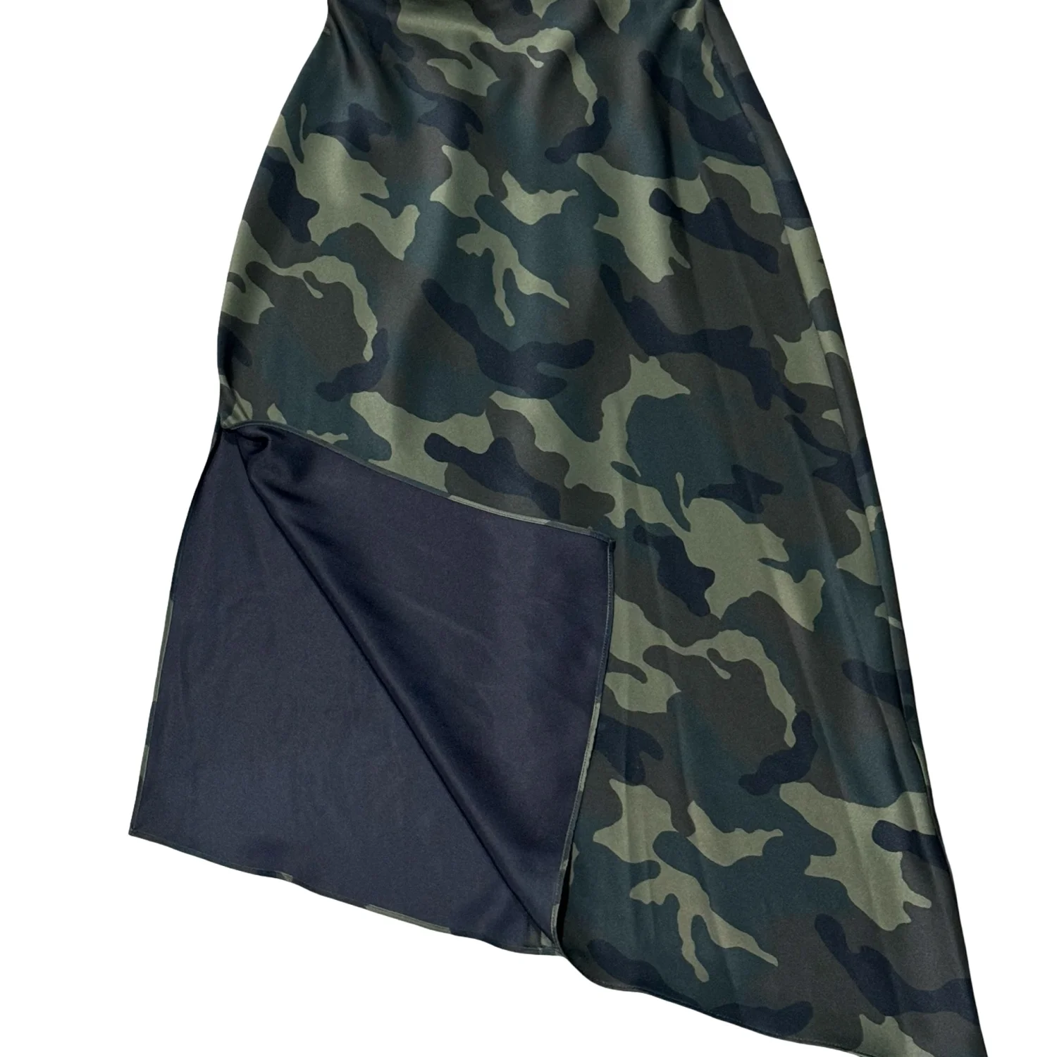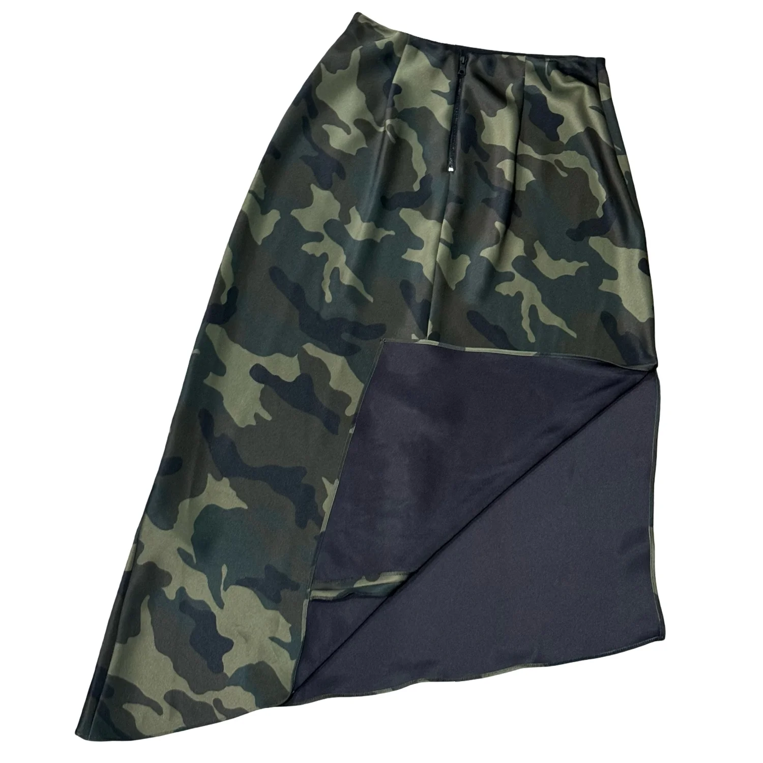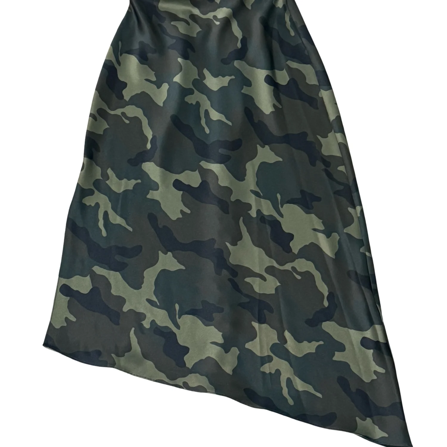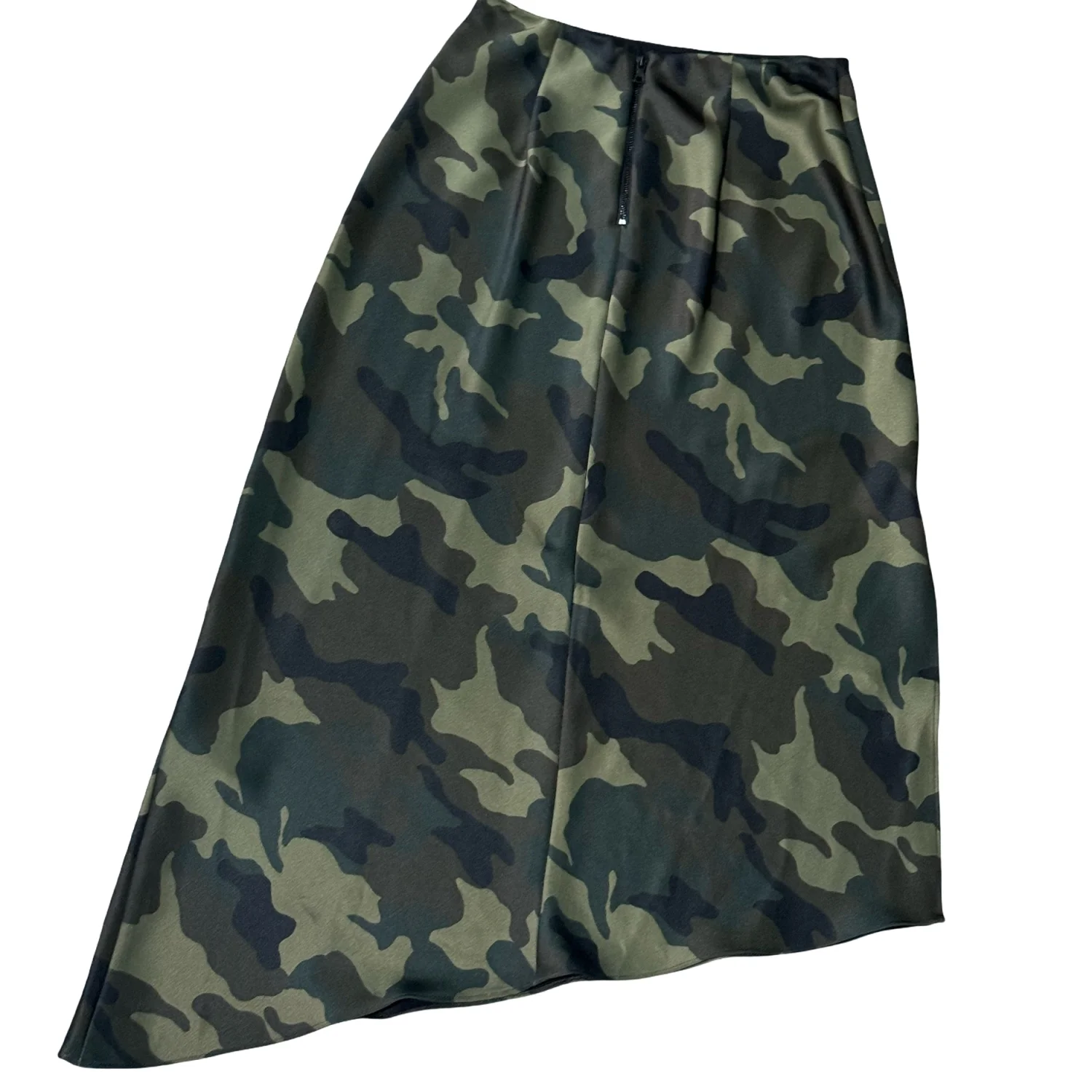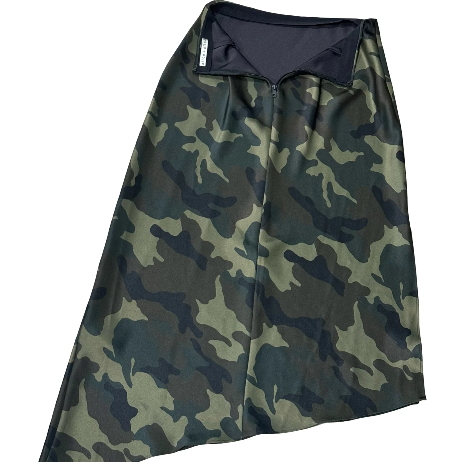 This SOLD OUT Alice + Olivia is in great condition like new. This midi-length skirt features a classic green camouflage print and is distinguished by its body-skimming silhouette and high-low, asymmetric hemline. It is typically made from a lightweight, silky polyester satin with a back concealed zip closure Size: 6 Shell: 100% polyester Combo: 94% polyester / 6% Elastane Waist flat: 13” - 13.5” Length: 29” - 37” Professional dry clean Made in China MSRP: $275