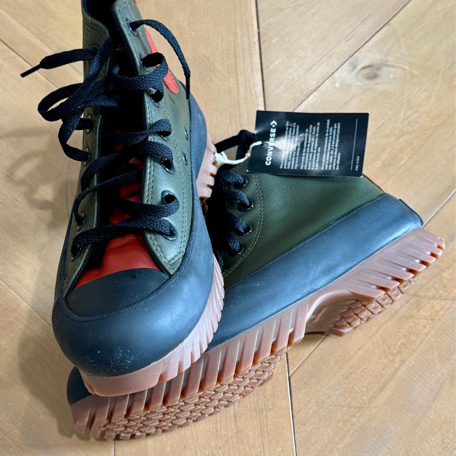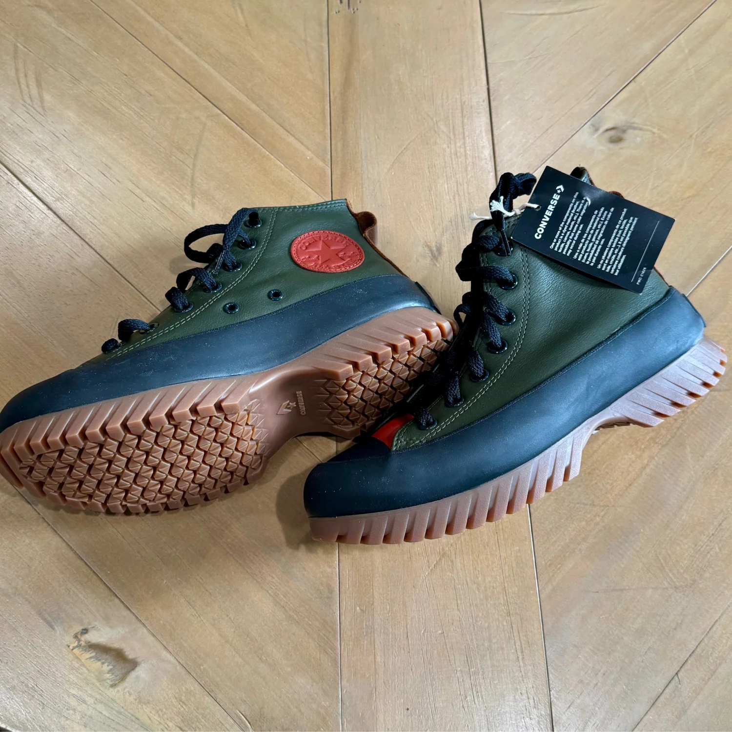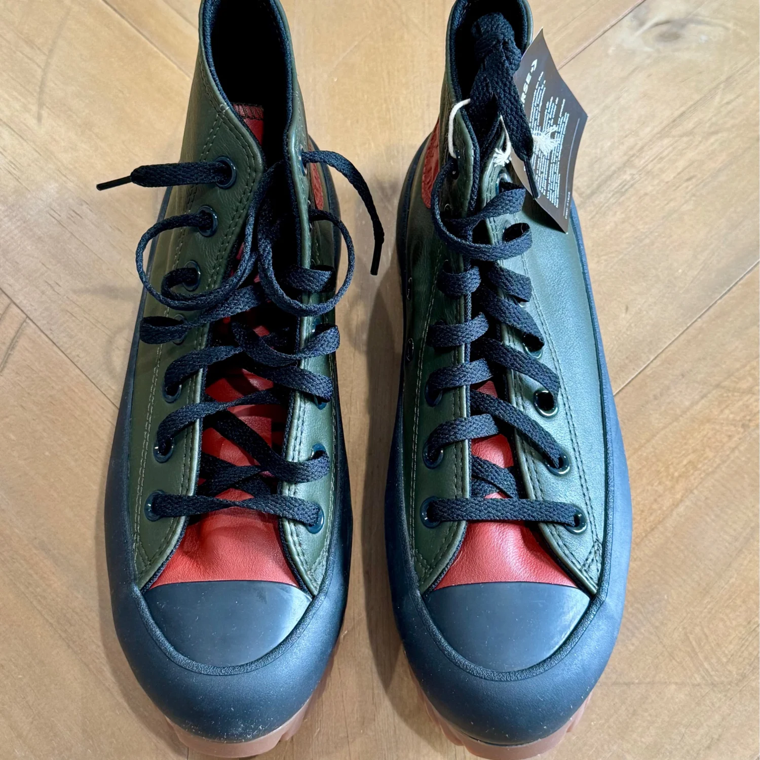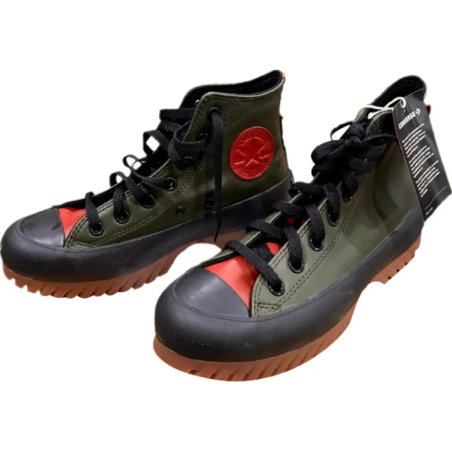 Brand New with Box.100% Authentic. Next Day Shipping. Lace-up closure for a secure fit and customizable style. Iconic Converse logo prominently displayed on the shoe. Durable upper material for long-lasting wear Elevate your footwear collection with these striking Converse sneakers, featuring a vibrant green and red color scheme. Designed for comfort and style, these sneakers are perfect for making a statement on any casual outing. Enjoy the classic Converse quality with a modern twist in these eye-catching shoes. Brand: Converse Casual & Dress Shoe Style: Fashion Sneakers Color: Green & black & brown Shoe unisex size: 5 man’s / 7 women’s Material: Canvas Pattern: Solid Print Insole Material: Canvas Shoe Sole Material: Rubber Heel Height: 20 mm Shoe Closure: Lace-Up Made in Vietnam MSRP: $120