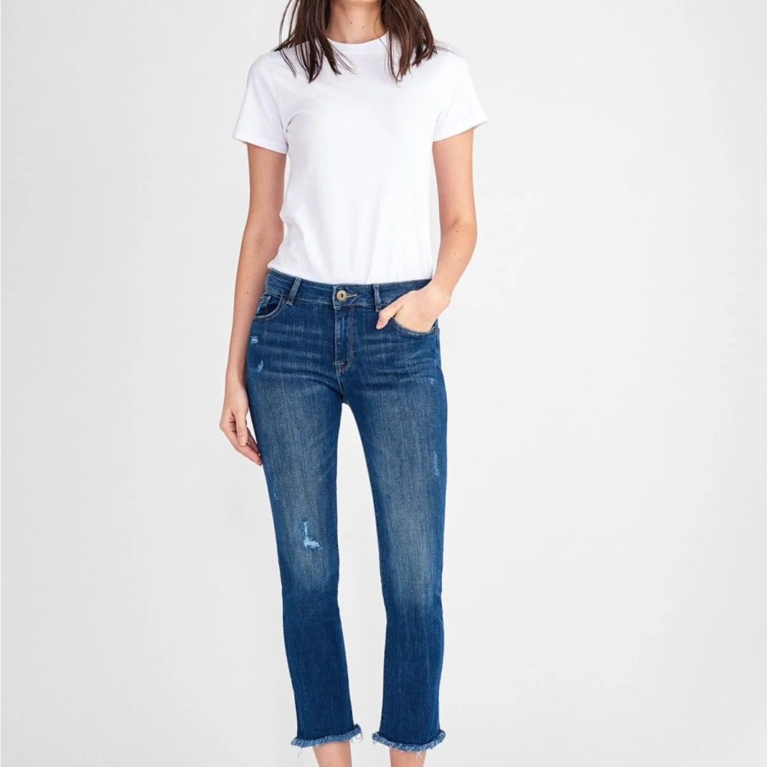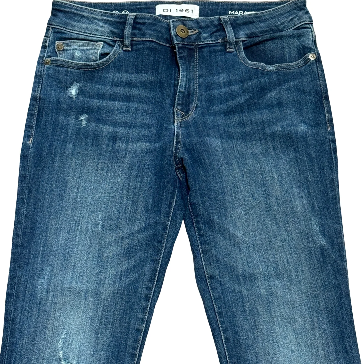 The Mara is a mid-rise, ankle-length Instasculpt straight with an easy, laid-back fit and a slimming contoured waistband. Ravine is a jewelled, mid-indigo wash with contrast stitching, delicate touches of distressing, and a frayed hem. Size: 28 Waist: 28” Material: 93% cotton, 6% polyester, 1% lycra Rise: 9” Inseam: 27″ Leg Opening: 12.5” Zip fly with single-button closure Antiqued brass hardware Wash separately at 30 degrees. Hang vertically to dry MSRP: $230