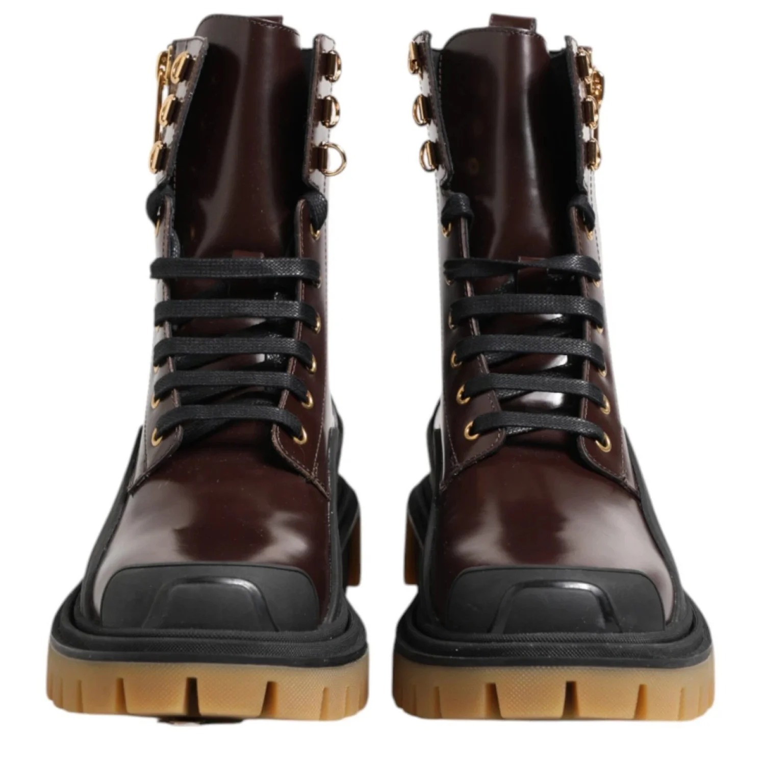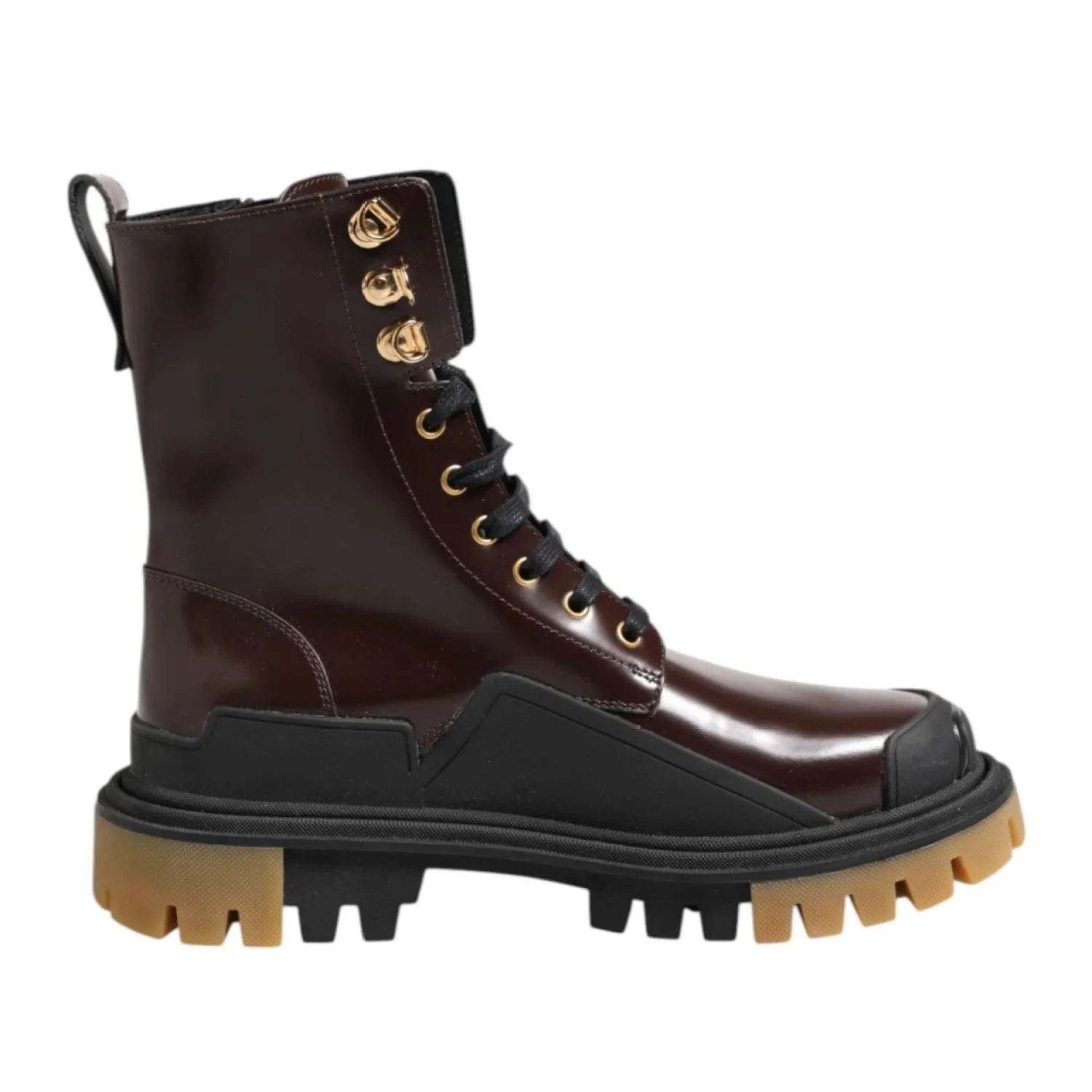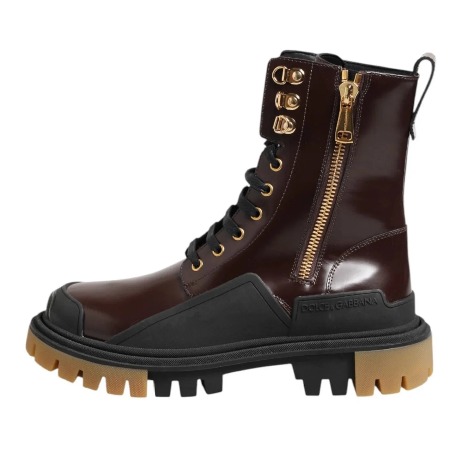 DOLCE & GABBANA Gorgeous brand new, 100% Authentic Dolce & Gabbana men’s boots shoes. Embodying the adventurous spirit of the outdoors, Dolce & Gabbana presents the Amphibian Trekking Style Boots, crafted from lustrous calf leather. These men's ankle boots, designed with a side zip for seamless wearability, merge refined craftsmanship with rugged allure, offering a timeless addition to any discerning wardrobe Size: Eu 38 Us 5 Model: Boots Color: Brown, Black Lace up closure Logo details Polished calfskin upper with rubber details • Flat laces • Calfskin footbed with logoed label • Rubber two-tone sole • Packaging in theme with the product • Made in Italy External Composition: 100% Calfskin Internal Composition: 90% Lambskin 10% Goatskin Made in Italy Very exclusive and high craftsmanship Retail Price: $1272.00