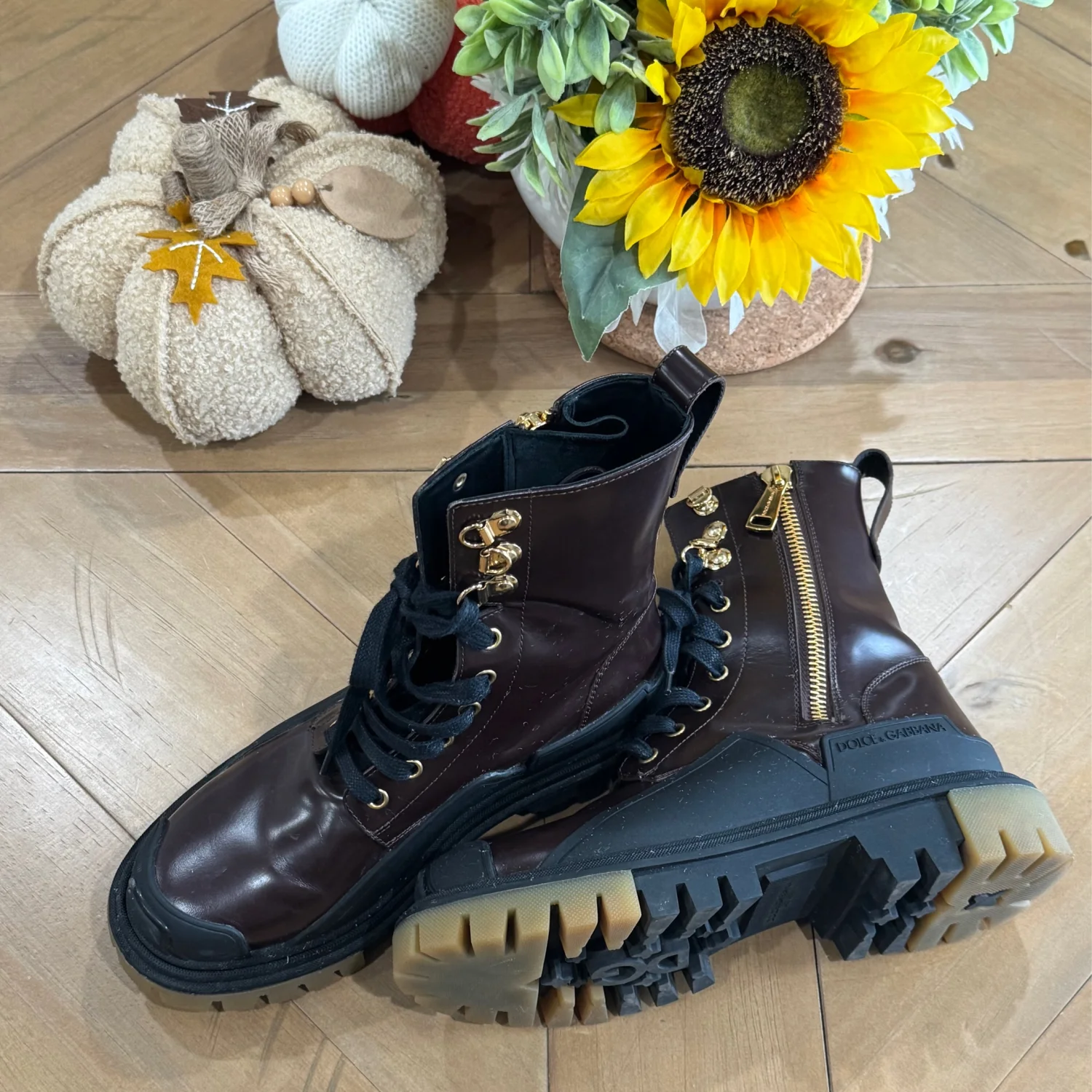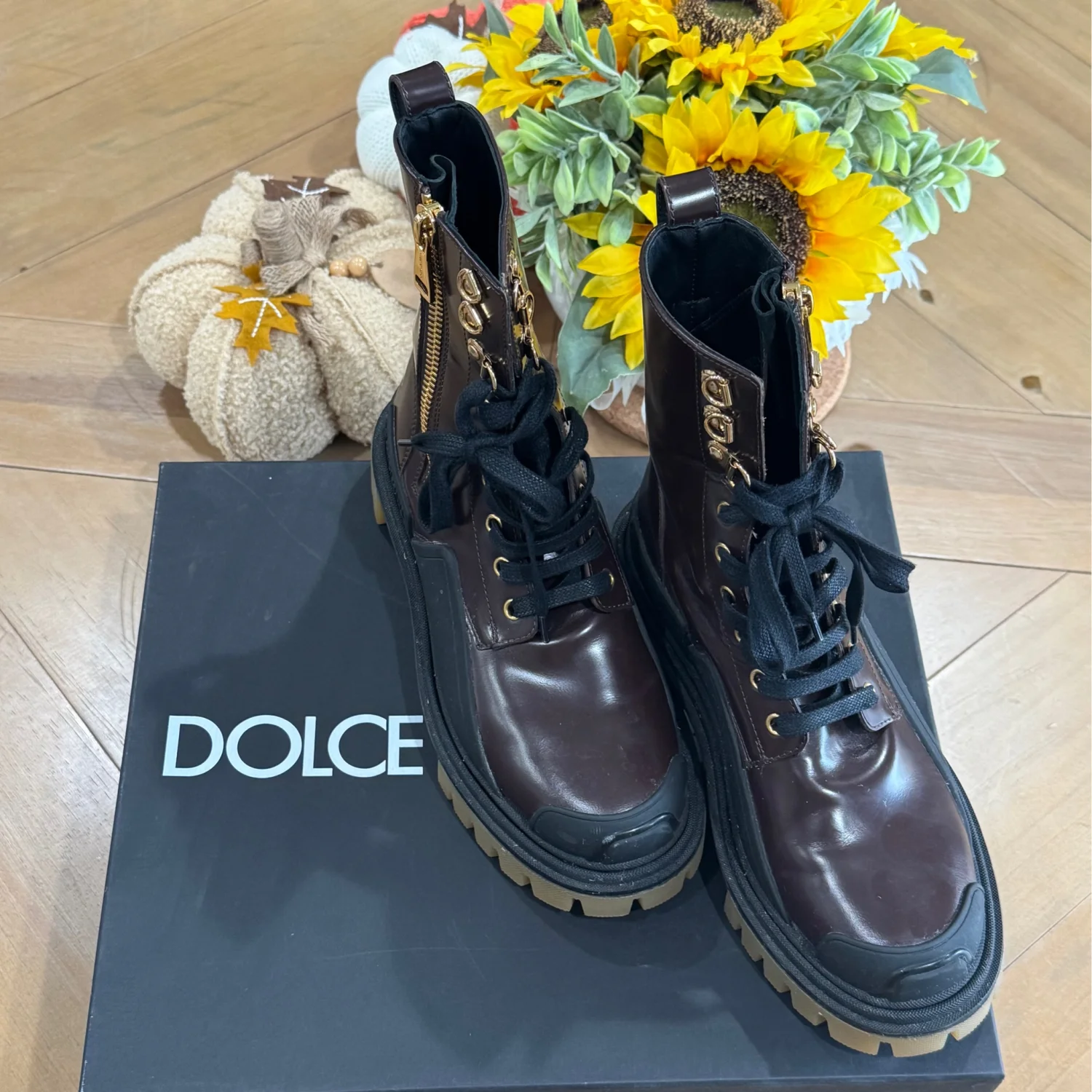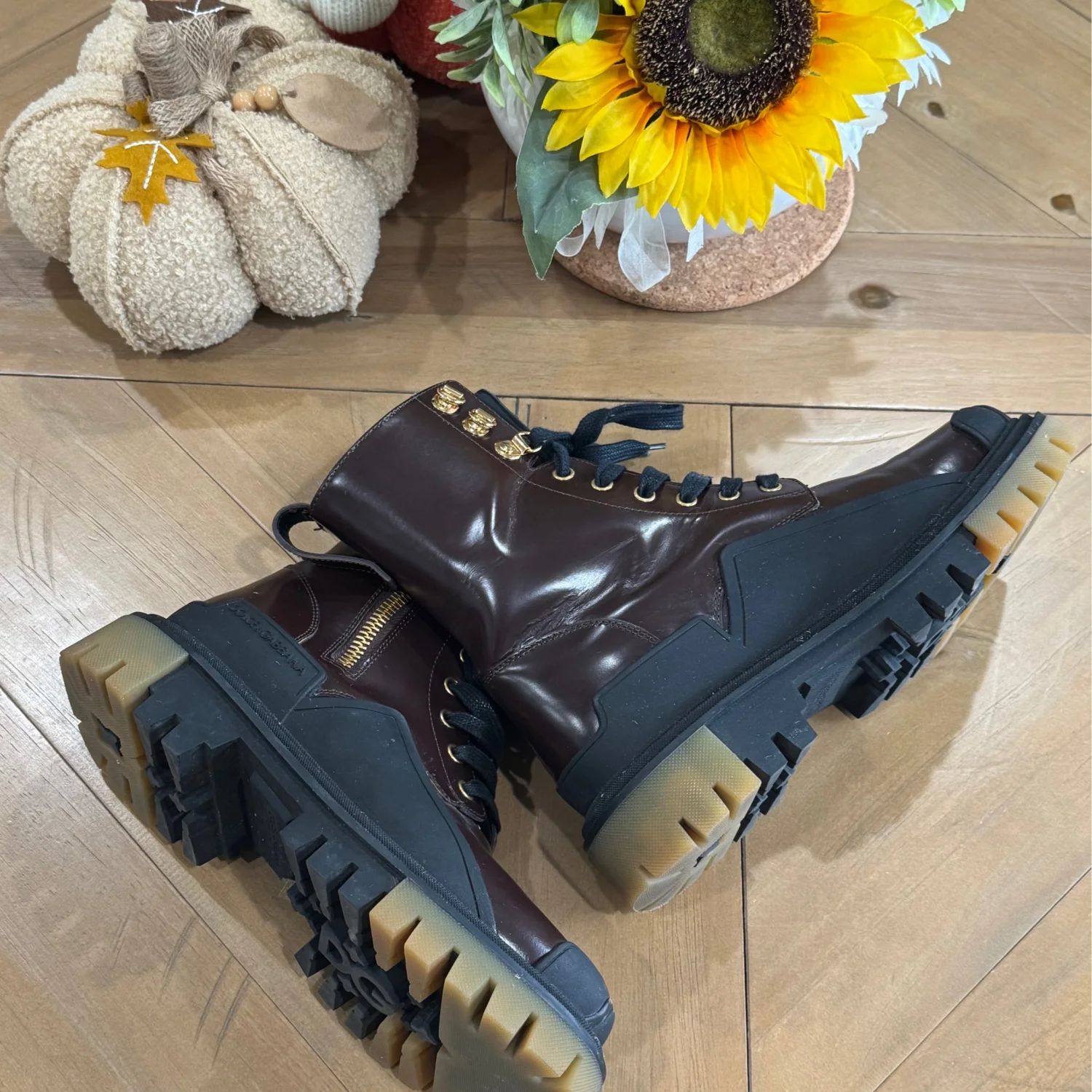 DOLCE & GABBANA Gorgeous brand new, 100% Authentic Dolce & Gabbana men’s boots shoes. Embodying the adventurous spirit of the outdoors, Dolce & Gabbana presents the Amphibian Trekking Style Boots, crafted from lustrous calf leather. These men's ankle boots, designed with a side zip for seamless wearability, merge refined craftsmanship with rugged allure, offering a timeless addition to any discerning wardrobe Size: Eu 38 Us 5 Model: Boots Color: Brown, Black Lace up closure Logo details Polished calfskin upper with rubber details • Flat laces • Calfskin footbed with logoed label • Rubber two-tone sole • Packaging in theme with the product • Made in Italy External Composition: 100% Calfskin Internal Composition: 90% Lambskin 10% Goatskin Made in Italy Very exclusive and high craftsmanship Retail Price: $1272.00