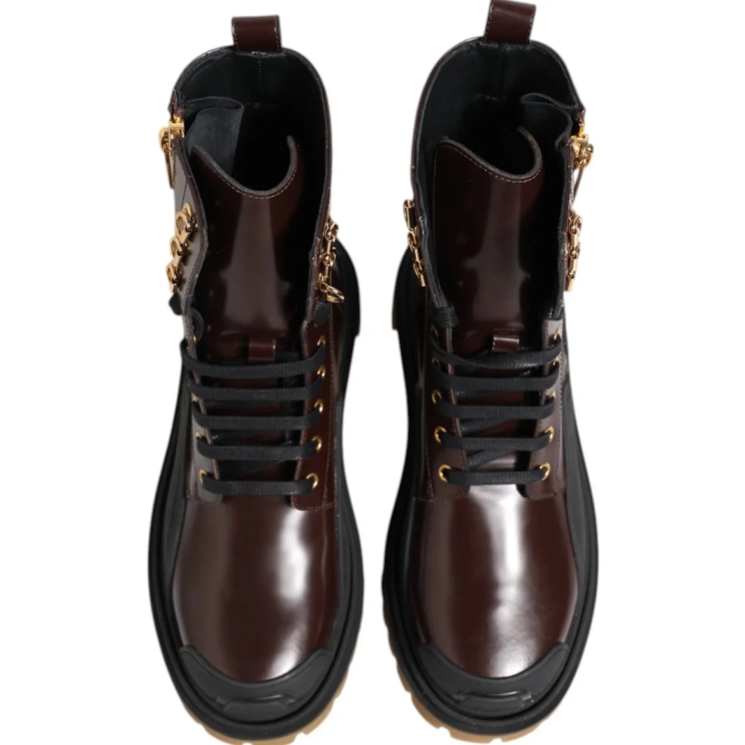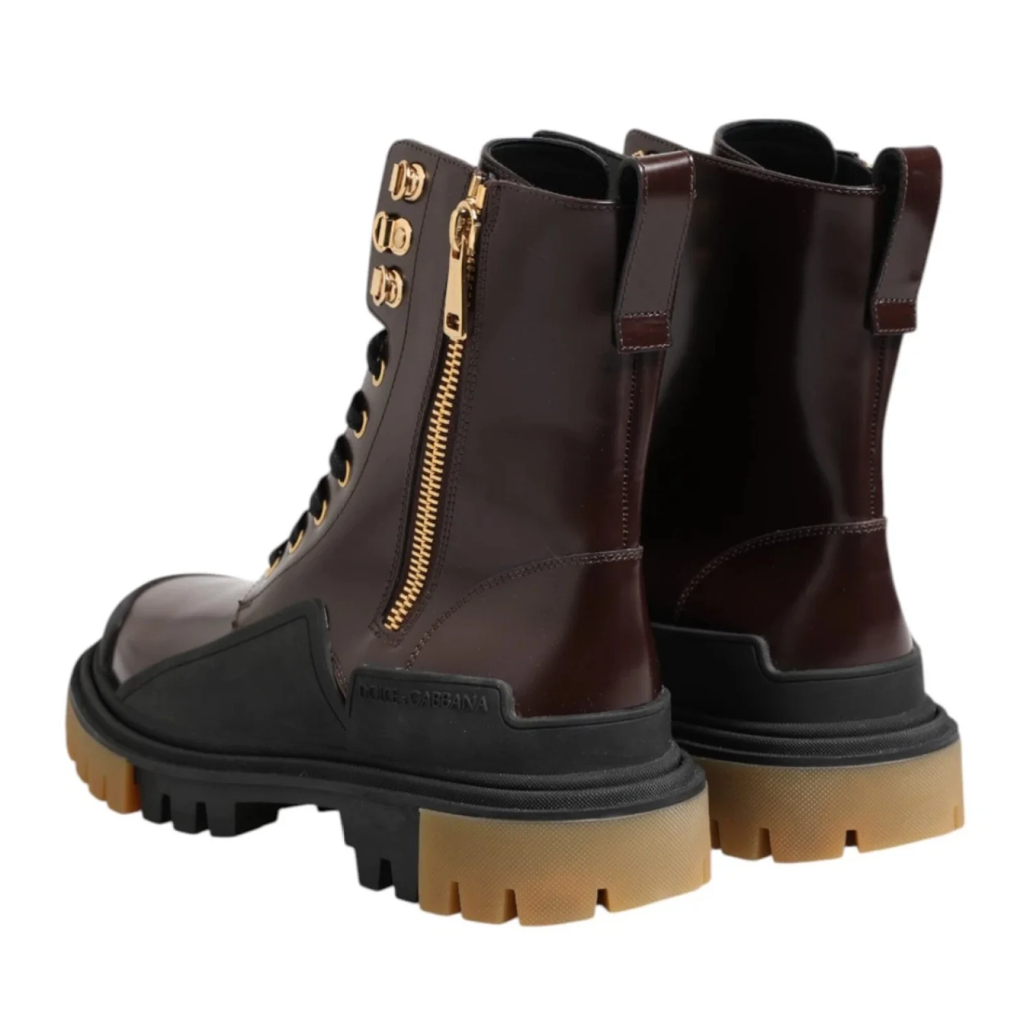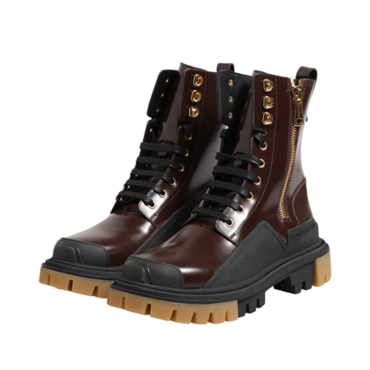 Dolce & Gabbana Brown Black Leather Boots Zipper Lace Up Men's Shoes