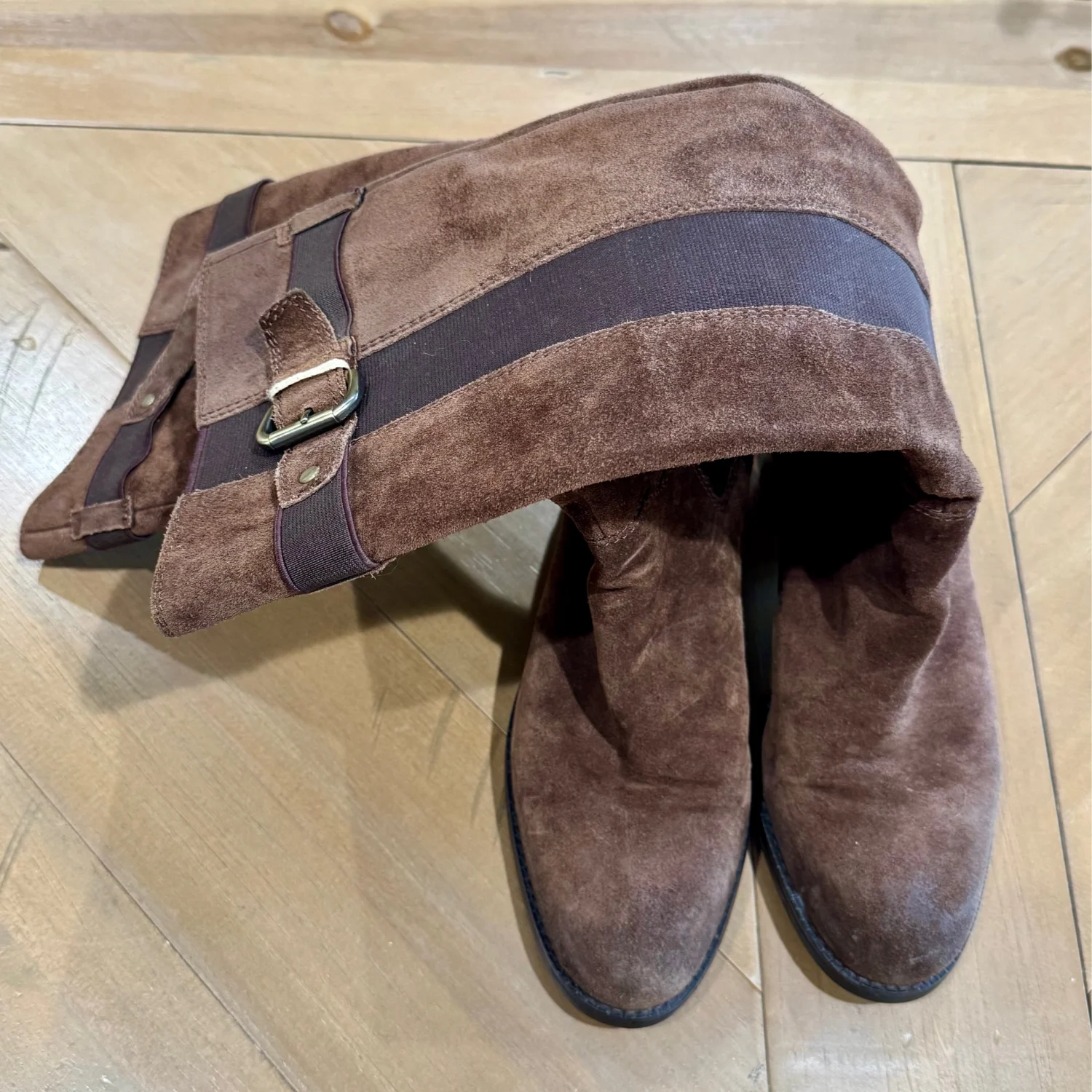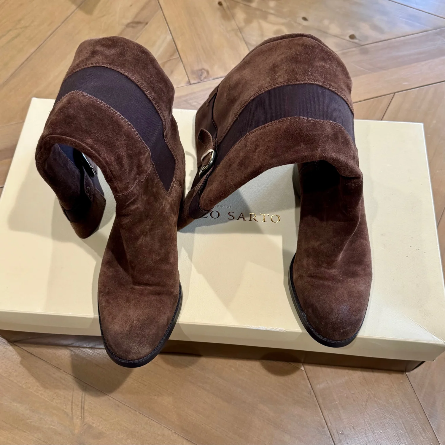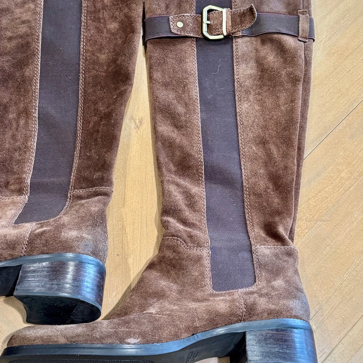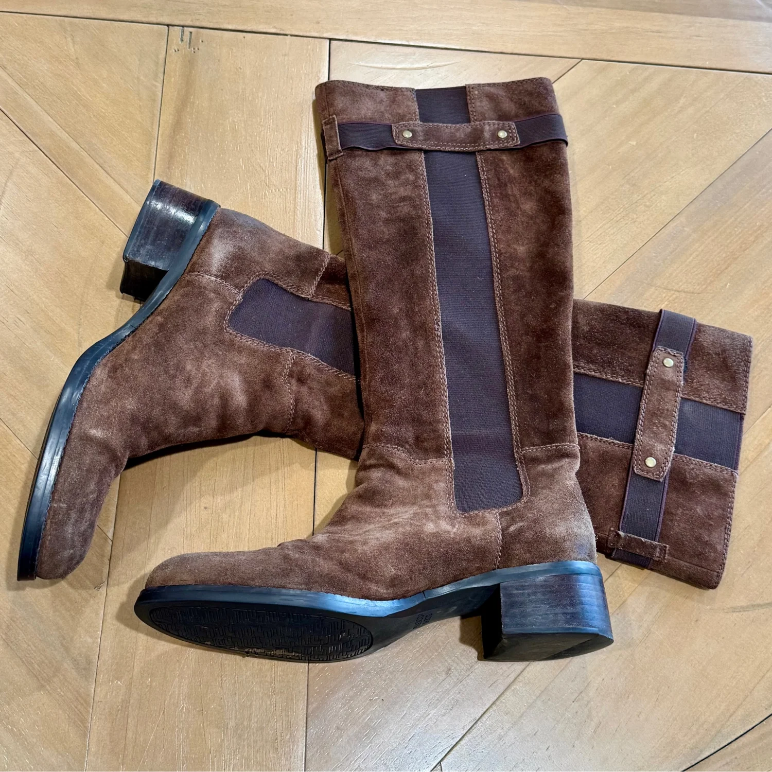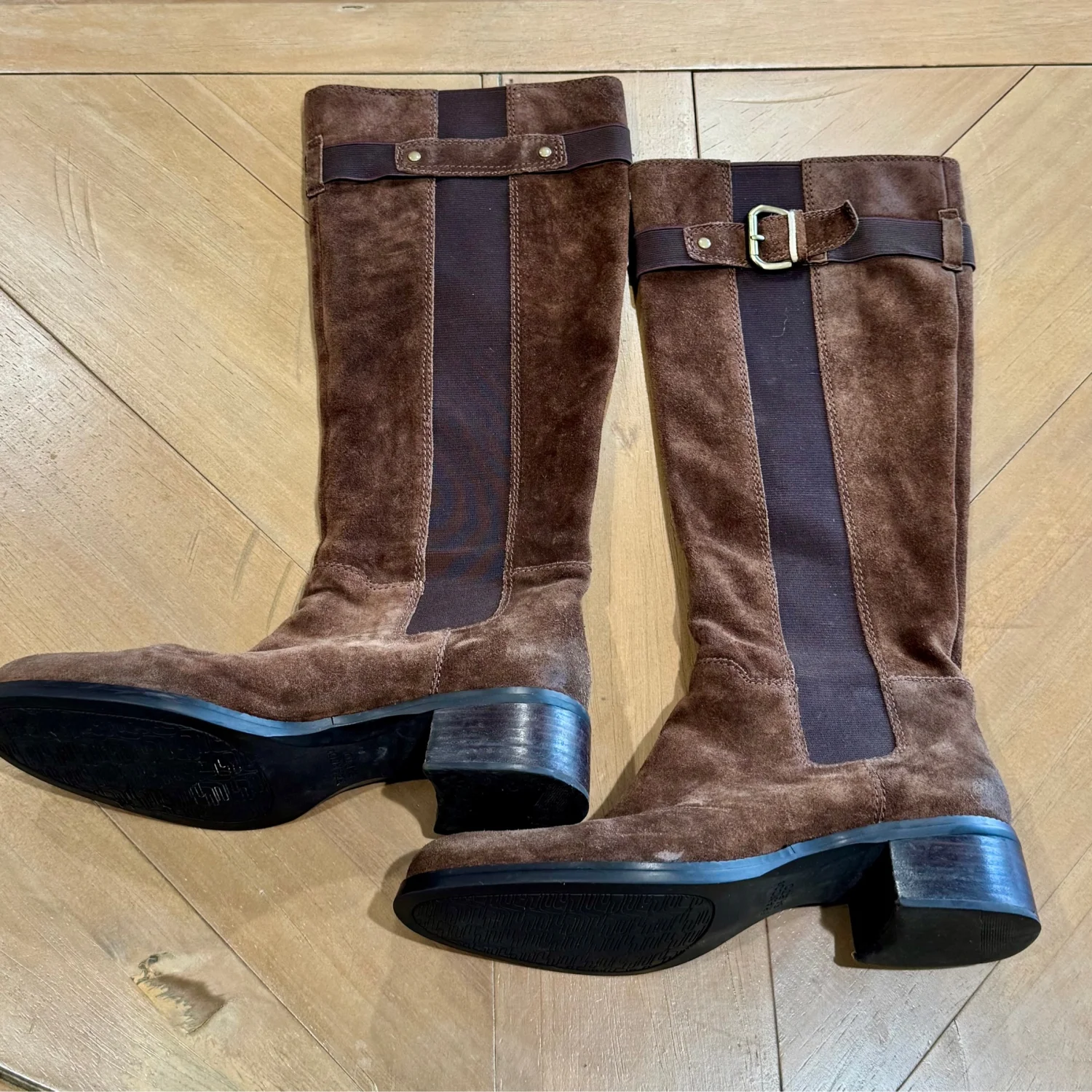 Used good condition Step out in style with these elegant Franco Sarto brown suede knee-high boots. Perfect for any occasion, they offer both comfort and sophistication. block heel and Almond toe. Pull on style with elastic side panels , stretch Original Franco Sarto box True to size fit Size: 7.5 Width: Medium Material: Suede Heel: 1.5” Shaft: 15”