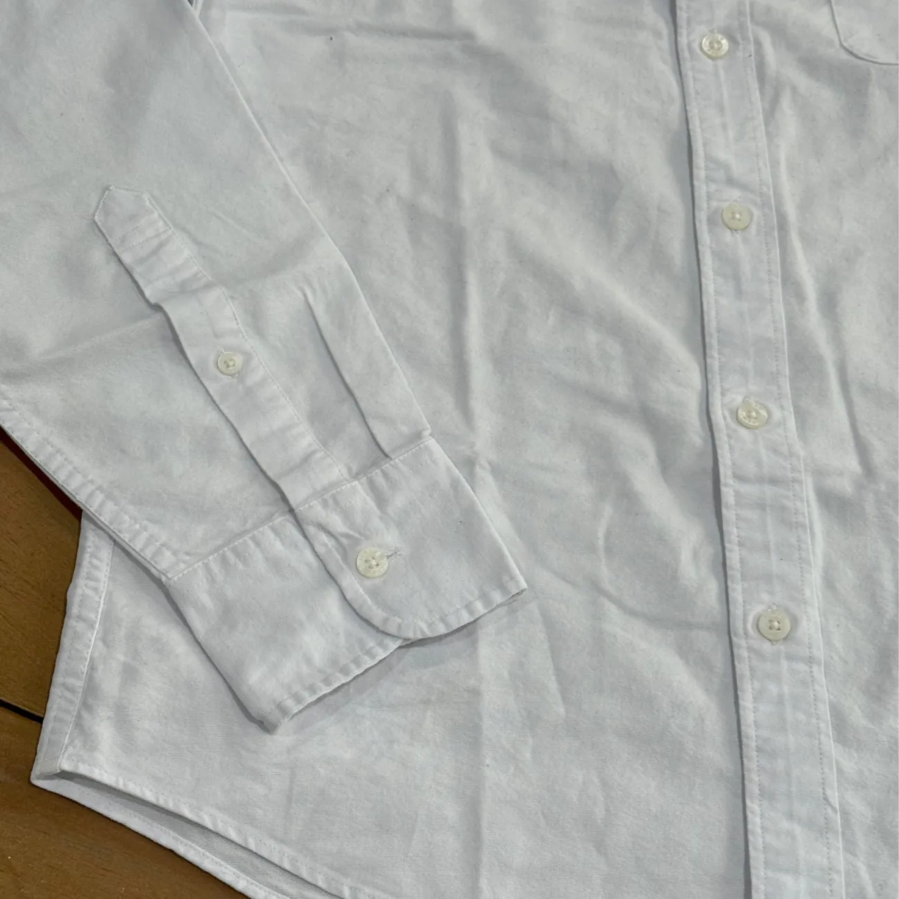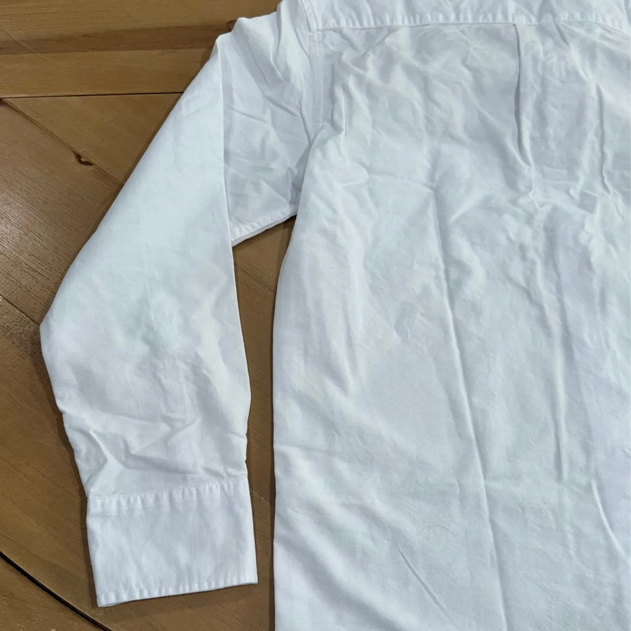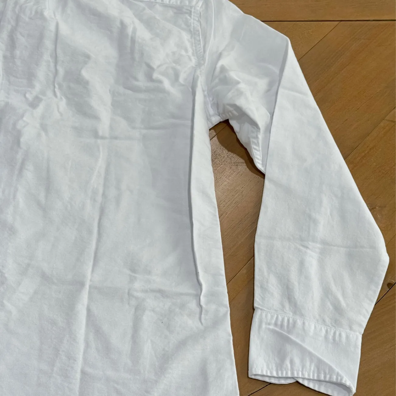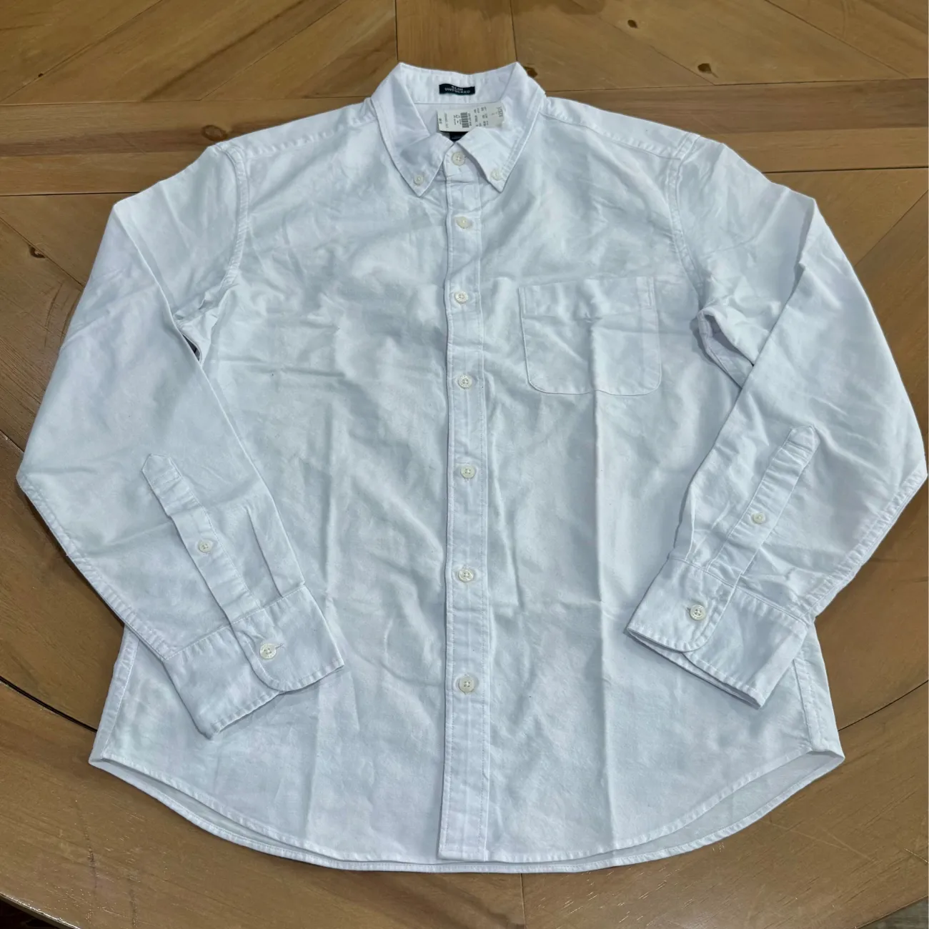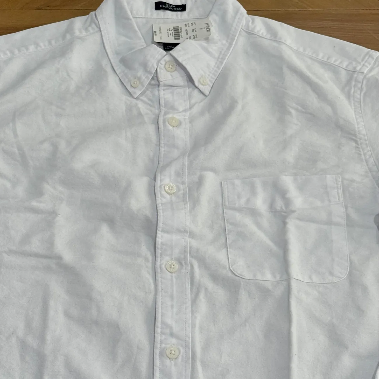 Elevate your wardrobe with this classic white men's shirt. Perfect for any occasion, this shirt offers a timeless look and comfortable fit. Designed to be worn untucked, our Untucked fit is 1 1/4" shorter in the body and 1" shorter in the sleeves. Slim Untucked Size: medium Material: 100% cotton Underarm pit to pit flat: approx 20” Length: approx 28.5” With stretch for added comfort. Button-down collar. Machine wash cold with like colors Made in Madacascar MSRP: $89.50