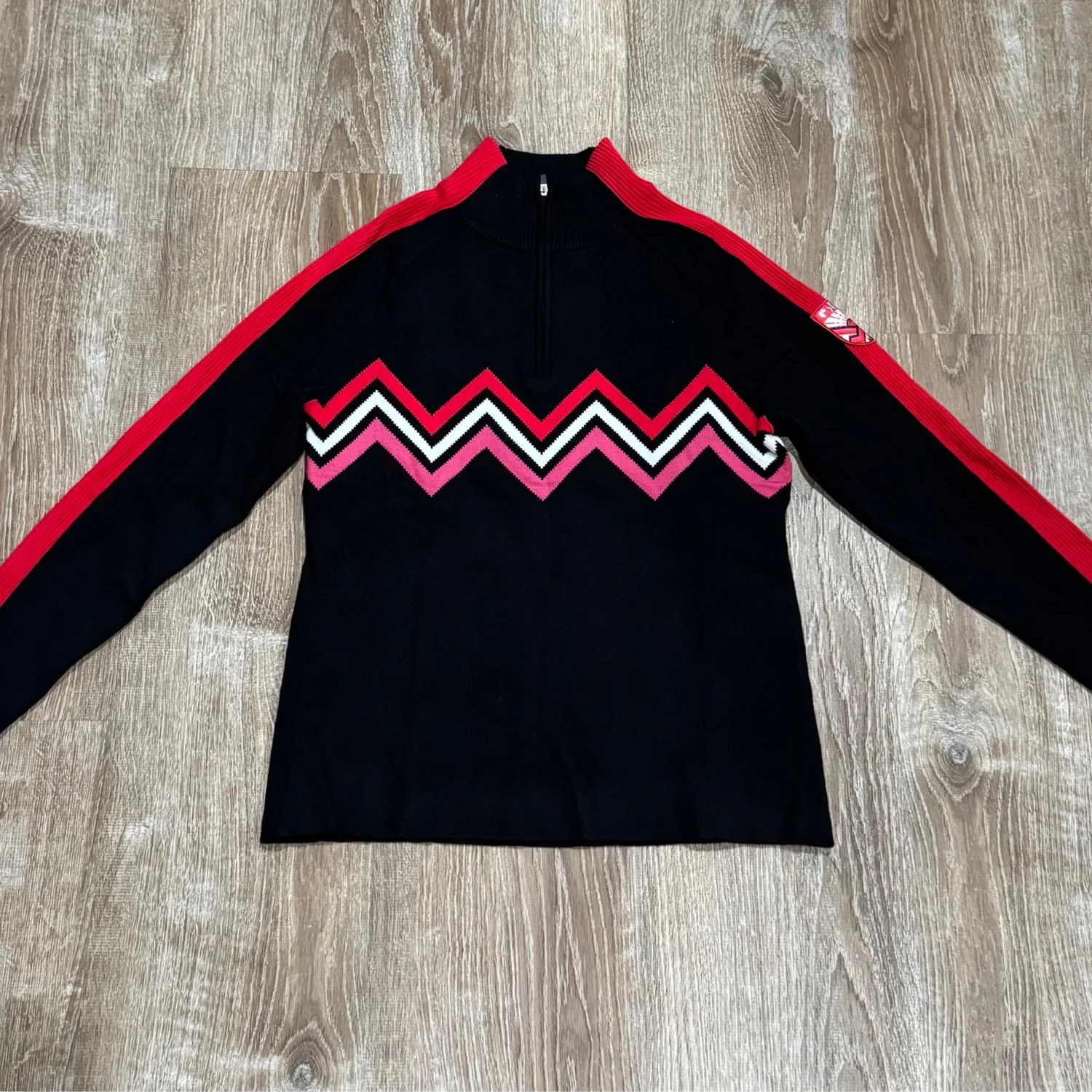 Used great condition Zig zag down the mountain in the Dryas quarter zip neck sweater! Lenzing Viscose is derived from sustainable wood pulp, coming from responsibly managed forests and controlled sources. It's a favorite because of its silk-like aesthetic and drape, exceptional breathability, moisture absorbency, and smooth, sleek comfort. Wool-free style and great performance. Size: Medium length: 25” Underarm pit to pit flat: 18” Slim fit Custom Krimson Klover patch Lenzing EcoVero Viscose/ Polyester Machine wash cold on delicate cycle. Do not bleach. Lay flat to dry. Cool iron when needed. Designed in Colorado Made in China MSRP: $209