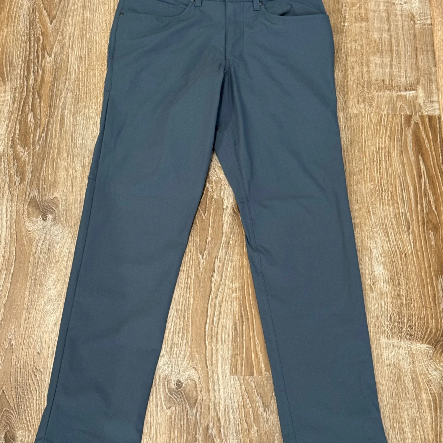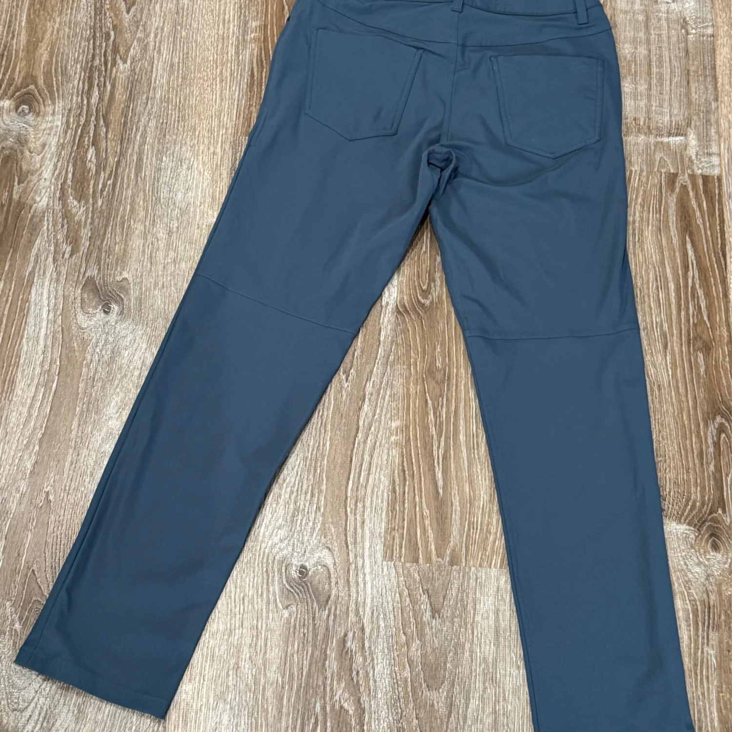 Used great condition Lulelemon Men’s Pants Classic-Tapered Fit Stretchy, wrinkle-resistant Warpstreme™ fabric makes 'smart-casual' a breeze. •Streamlined fit that gives glutes & thighs breathing room •Tapers from knee to hem •Our ABC™ (Anti-Ball-Crushing) technology uses an ergonomic gusset to remove tension from the crotch of our pants so you can move in comfort Size: 29 Small ( Lululemon size chart ) Length: 39” •Everyday performance •Shape retention •Quick-drying •Four-way stretch •Breathable •Wrinkle-resistant •Feels smooth, falls softly away from body •100% of the polyester in this product is recycled (excluding trims) •Hand pockets, a phone pocket, and an internal sleeve to stash coins •Back pockets with a hidden zippered compartment •Flip up the cuffs to reveal reflective details Materials: Body: 53% Elastomultiester, 47% Polyester ( Pocket Lining: 100% Polyester (recycled) Care: Machine Wash Cold with like colors. Made in Bangladesh MSRP: $138