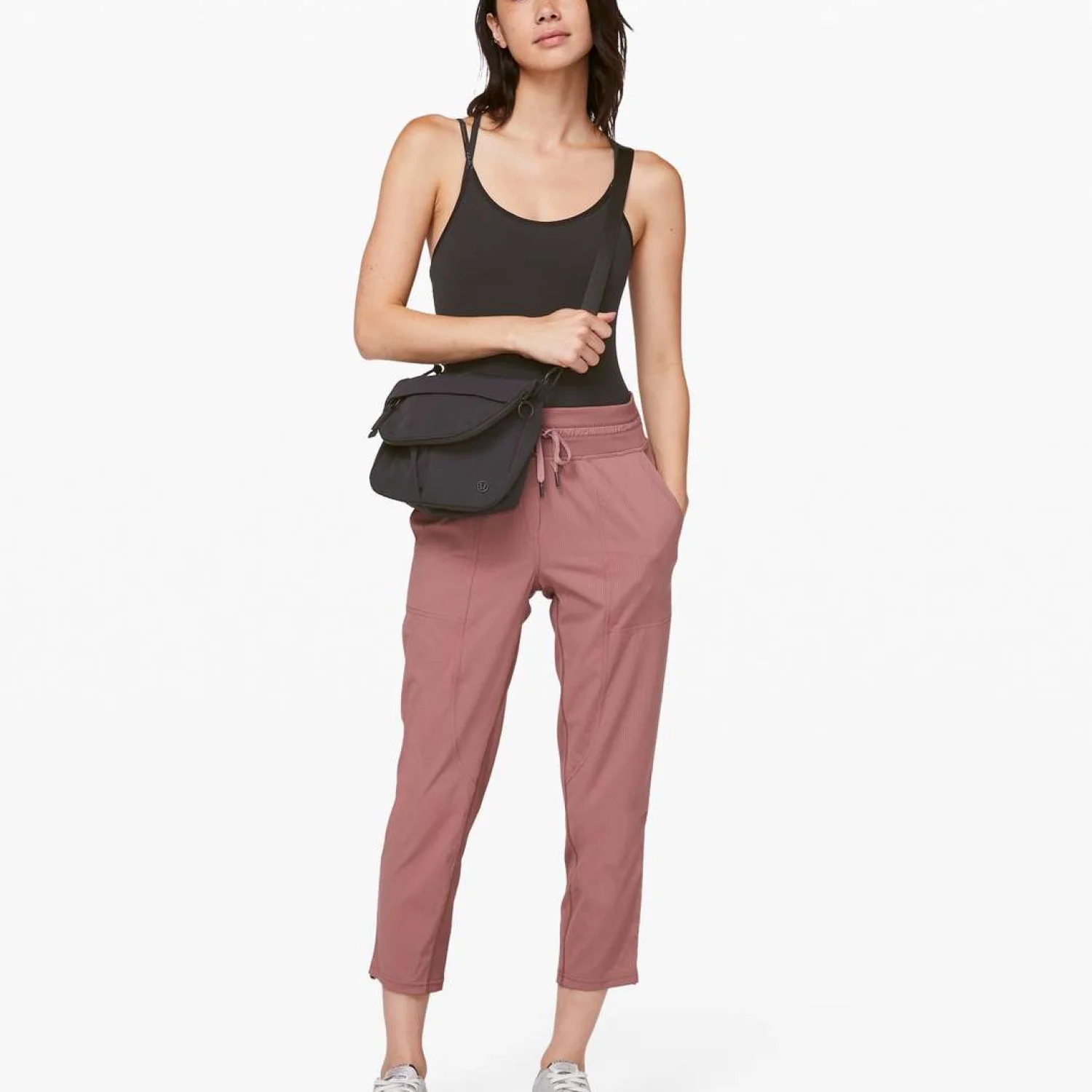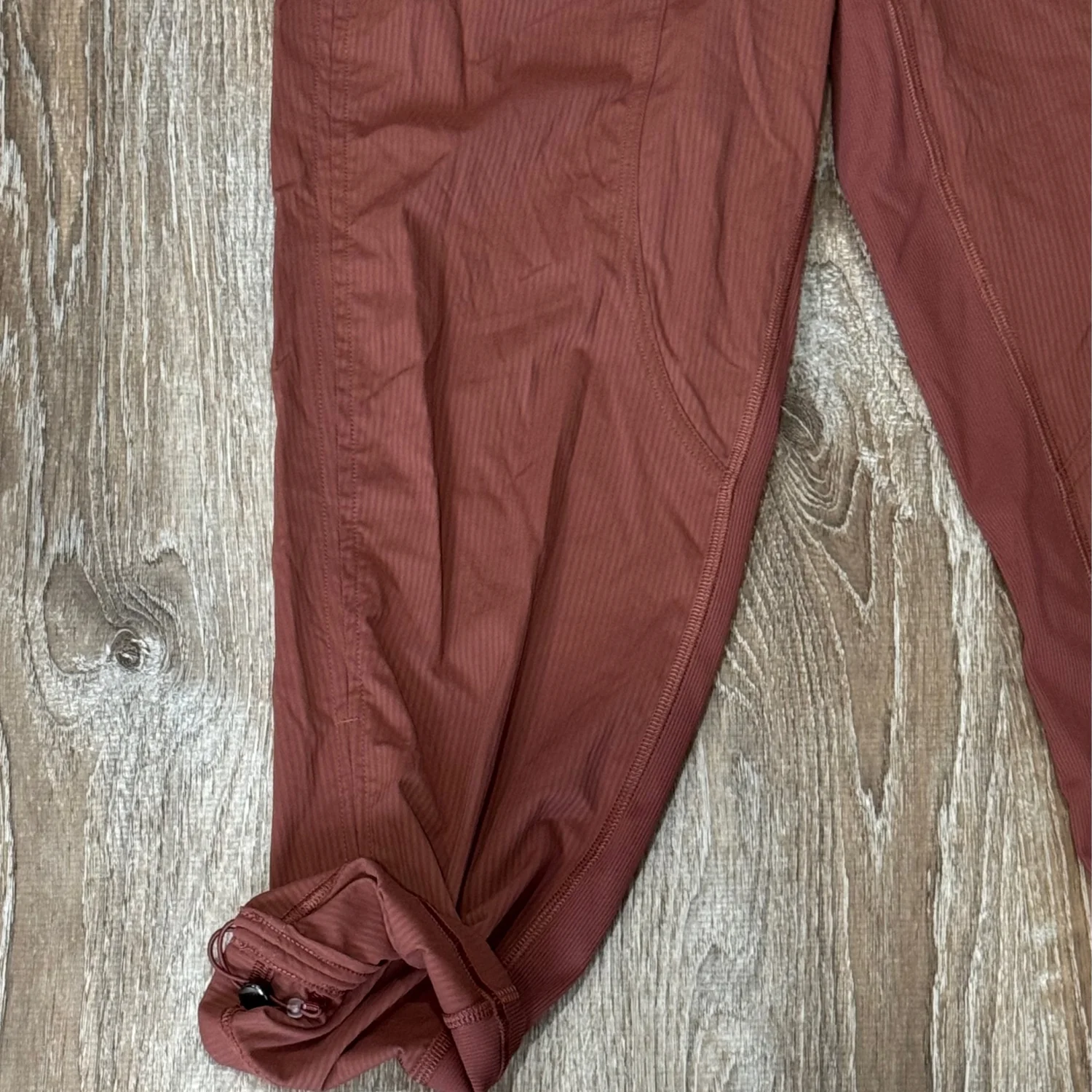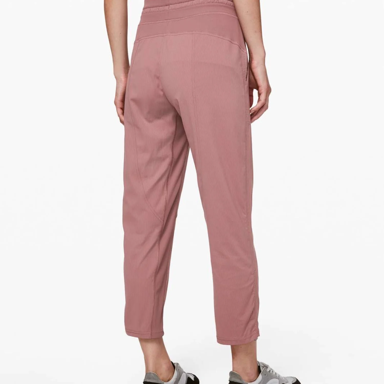 Used great condition Lululemon Dance studio crop pants. We designed these comfy crops to easily layer as you head to and from the studio Woven for strength and no-bulk performance, lightweight Swift fabric is two-way stretch and sweat-wicking to move with you and stay out of your way Size: 6 Material body: 94% nylon 6% Elastane Waistband: 88% Nylon 12% Elastane two-way stretch lightweight woven for strength Color: Red dust Designed for: On the Move Drawcord: Customize the fit with the drawcord in the waistband Media pocket: Lets you keep your tunes on hand Mobility: Gusset is placed to allow increased mobility Adjustable cuff: Adjustable cuffs let you lock in heat Rise: Mid rise Wash with like colors Made in Vietnam MSRP: $90