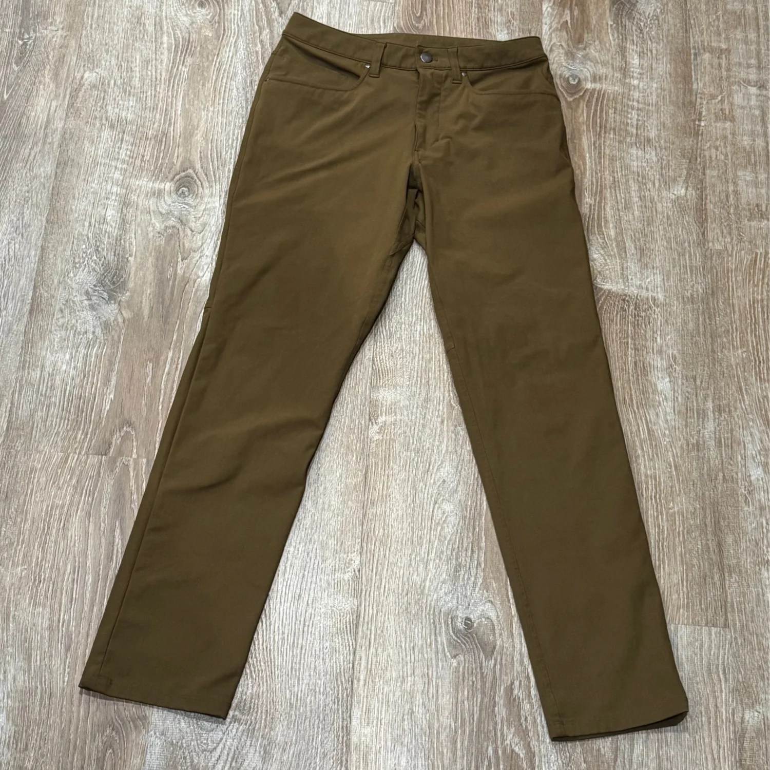 Used great condition Men’s Lululemon pants ,Our ABC™ (Anti-Ball-Crushing) technology uses an ergonomic gusset to remove tension from the crotch of our pants so you can move in comfort. Slim fit that skims glutes and thighs. Hidden zippered pocket in back pocket , Flip up the cuffs to reveal reflective details. •Size: 29 Small ( Lululemon chart ) •Length: 39.5” •Inseam: 31.5” •Corded texture •Sweat-wicking •Quick-drying •Two-way stretch Pockets: 100% Polyester (recycled) Body: 74% Polyester, 26% Elastomultiester Waistband Lining: 86% Polyester (recycled), 14% Elastane Machine Wash Cold , Do Not Bleach , Tumble Dry Low Do Not Iron , Do Not Dry Clean , Wash With Like Colors Made in Philippines MSRP: $128
