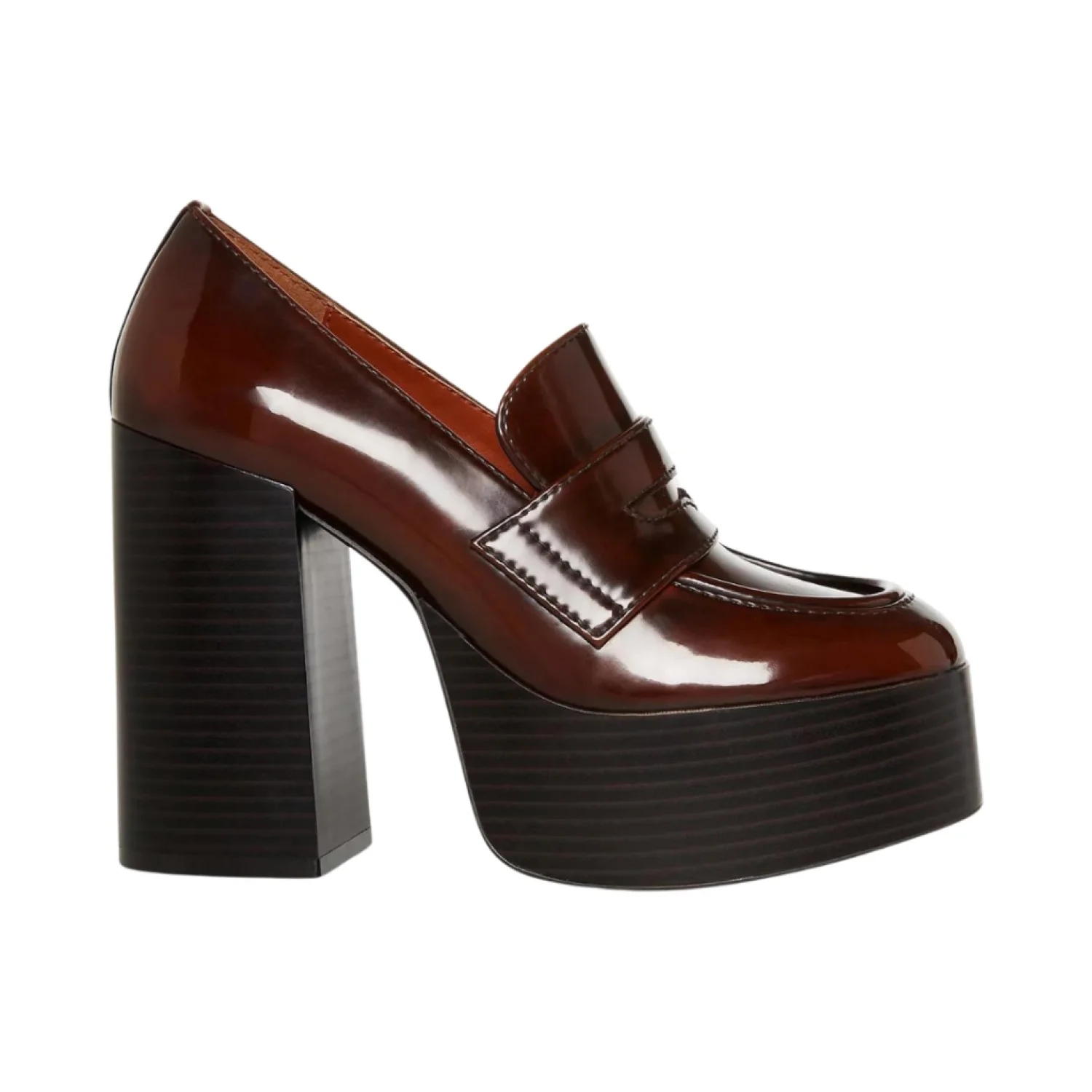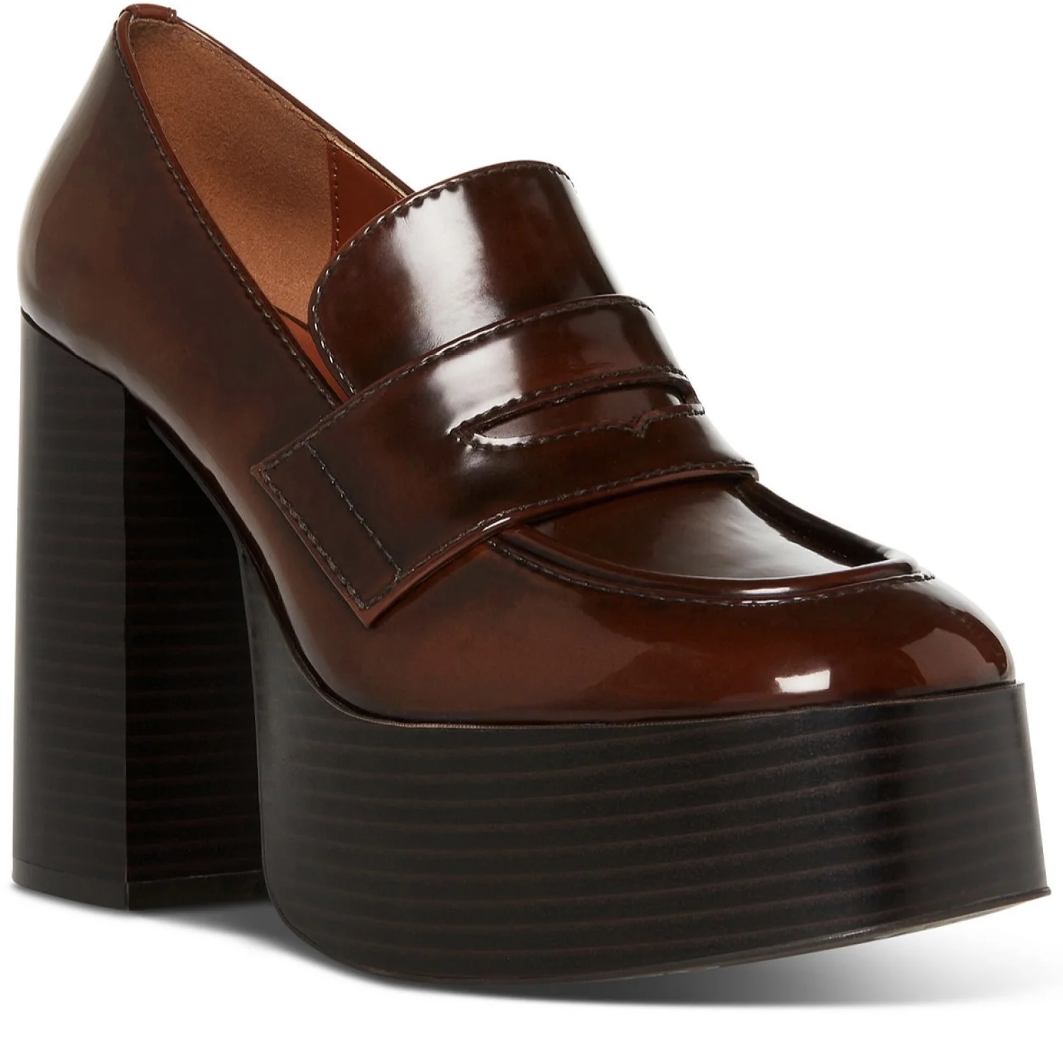 Penny loafer appeal goes sky high on the towering platform heel and classic tailoring of the Cherilyn pumps from Madden Girl. • Size: 10 • Width: Medium • 4-1/2" block heel; 1-3/4" platform • Square-toe slip-on platform pumps • Penny keeper detailing at vamp • Manmade upper; manmade lining; manmade sole • Made in China