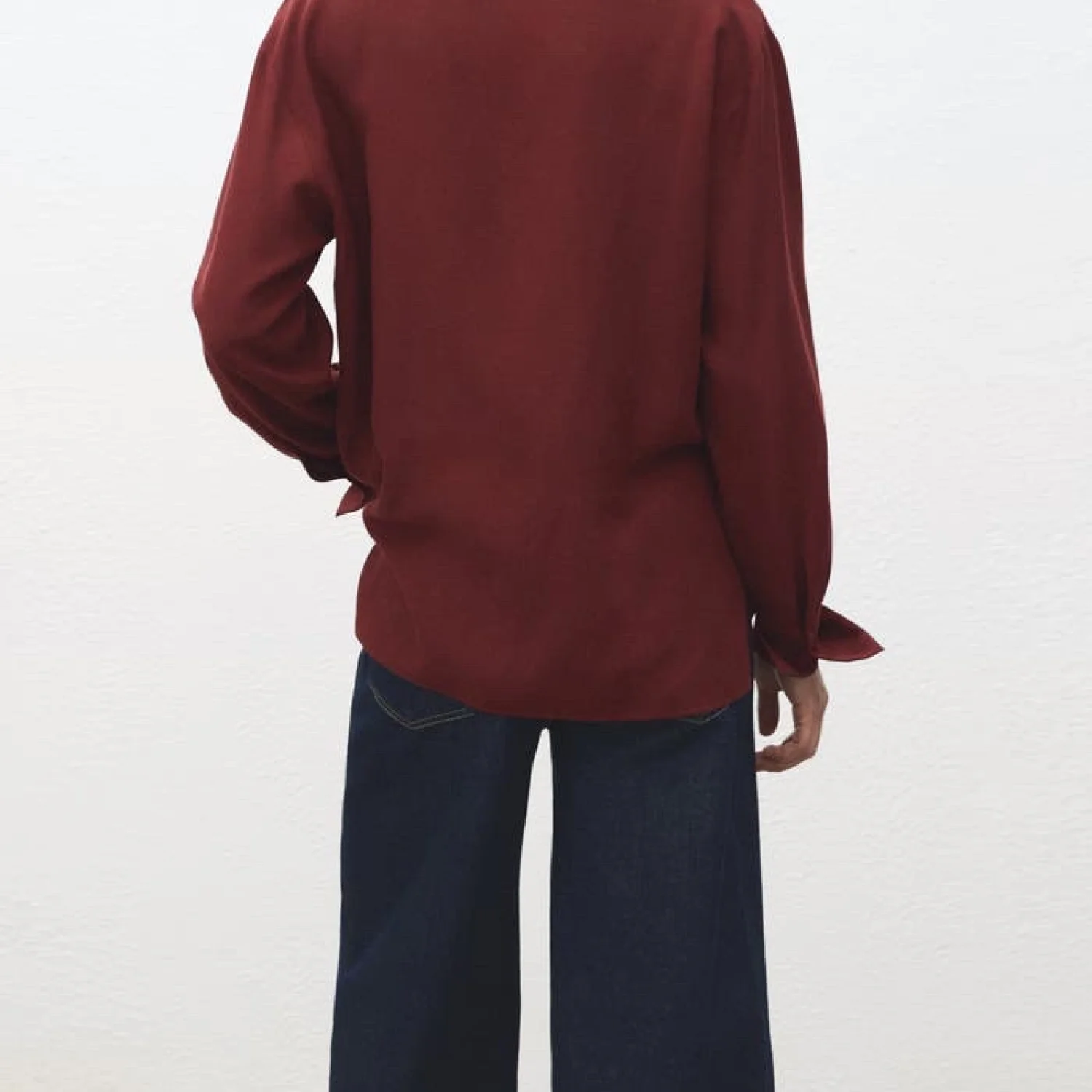 With a history spanning four decades, Mango is one of Europe's leading fashion brands. From Barcelona, on the banks of the Mediterranean, they delight the world with their fashion proposal and lifestyle. Mango's creative team works every day to translate fashion trends into their own language, which they deliver to customers in a personalized way while paying attention to detail. Layerable and relaxed, this button-up shirt is a versatile option that you'll want to wear on repeat. Size: Usa 8 Medium / EU Large Front button closure Hidden-button placket Long sleeves with flared one-button cuffs Material: 100% lyocell Machine wash, line dry , do not bleach Made in Turkey MSRP: $69.99