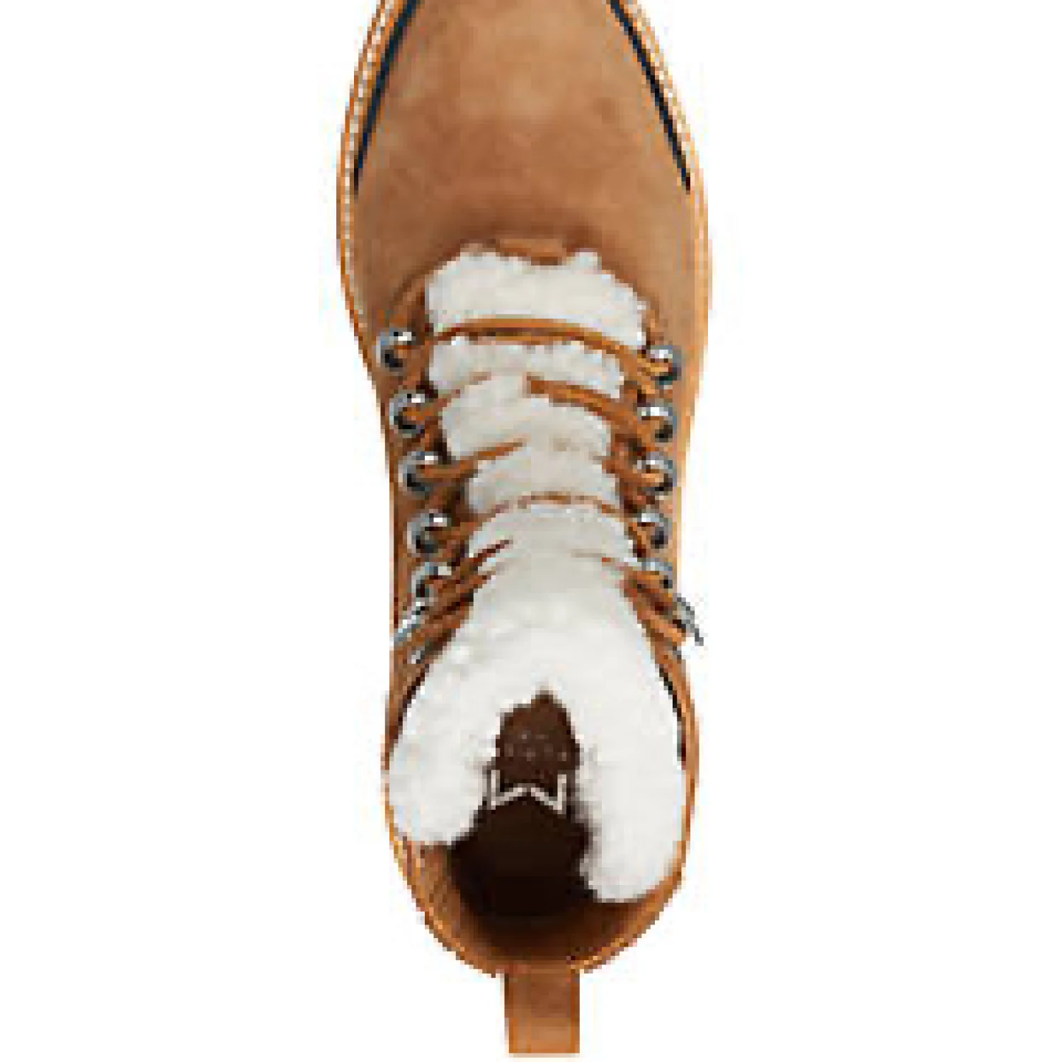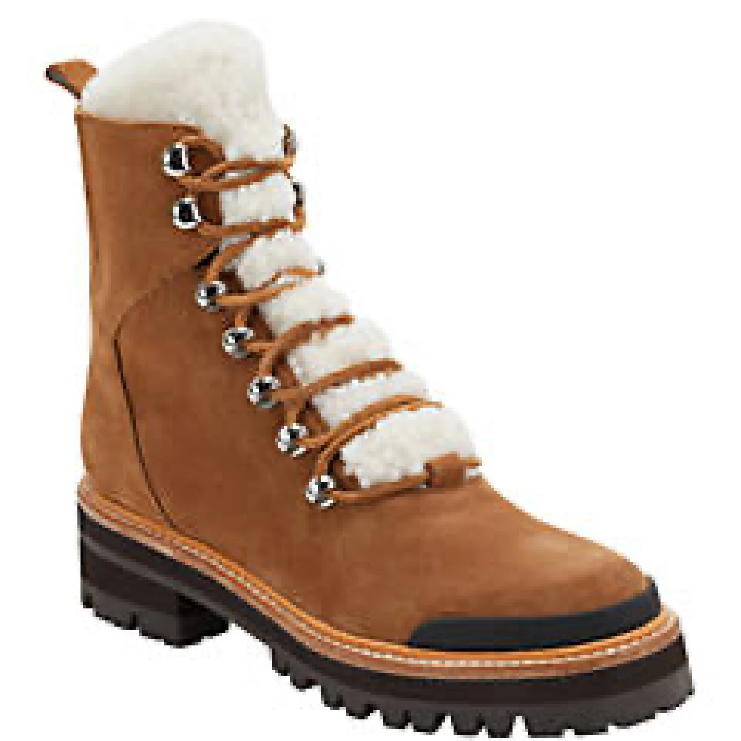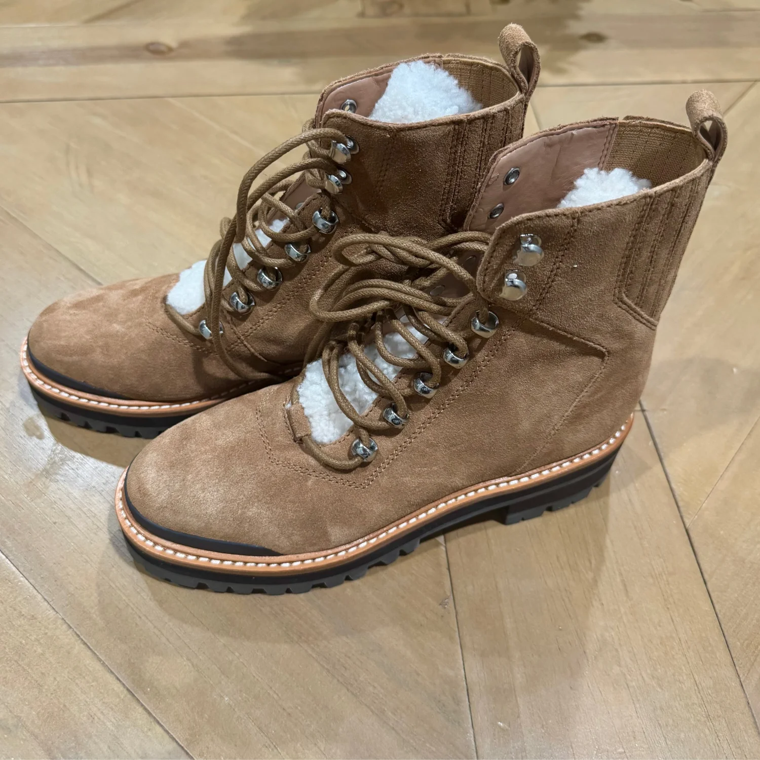 Say hello to the perfect, most versatile boot. The ankle height makes this style easily transition from day to night. Wear them with your favorite skinny jeans and tee for a more laid back look, or pair them with your favorite mini dress and jacket for a night out on the town. The Women's Izzie Ankle Boot elevates outdoor style with its thick treaded soles and distinctive double lace detail, perfect for hiking adventures. Constructed with a leather upper and lined with cozy shearling, this boot ensures both durability and comfort. The rubber outsole provides excellent traction, while the block heel offers stability with a low height of 1.73 inches. The almond toe design adds a modern touch, making these boots a fashionable yet functional choice for any outdoor enthusiast. Size: 5 1/2 Width: Medium Thick treaded sole. 7.87" Shaft height. Rubber sole. 100% Leather. MSRP $271