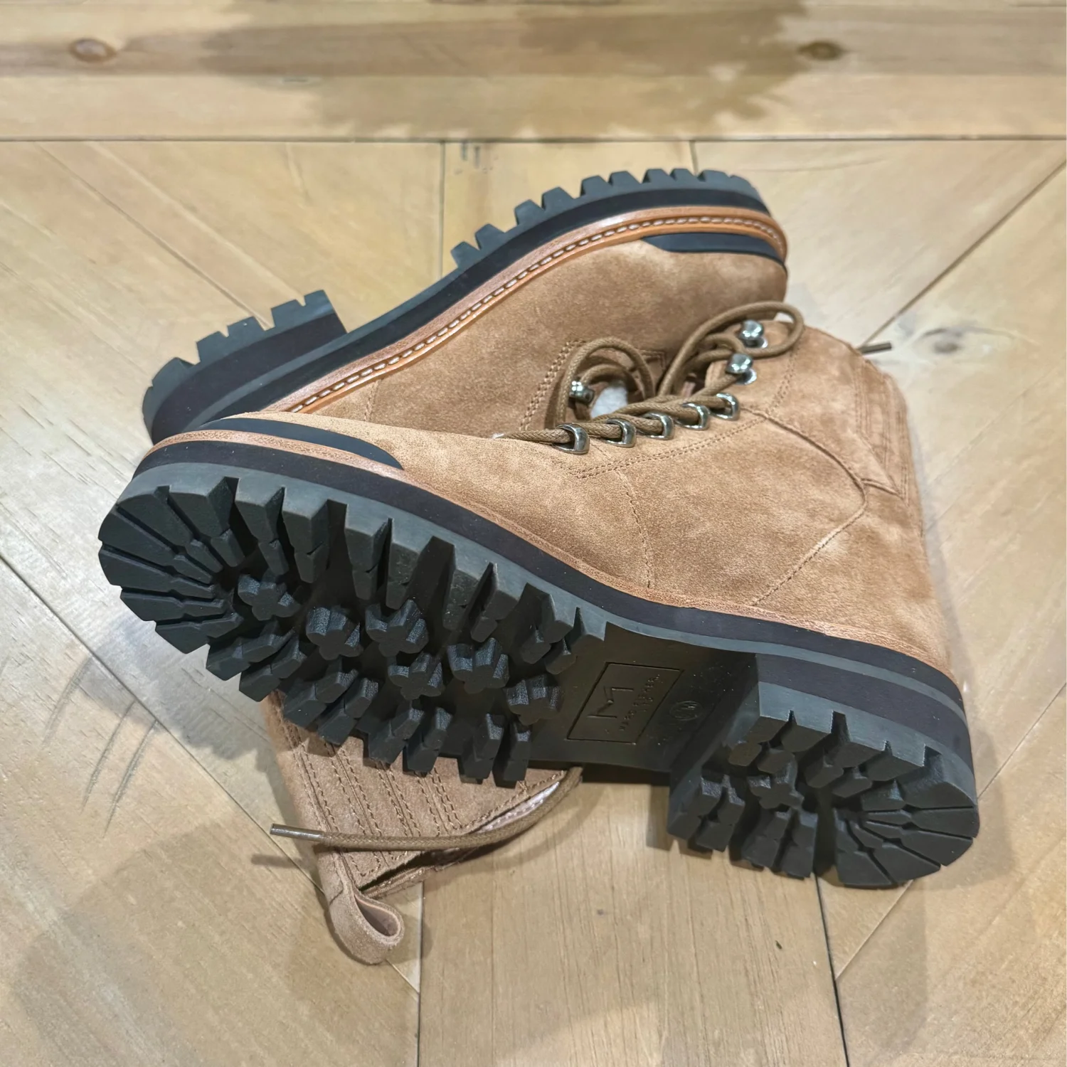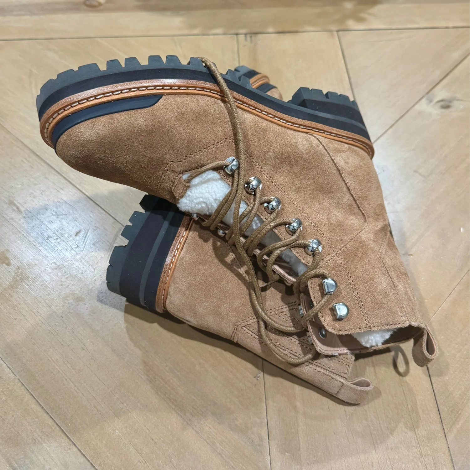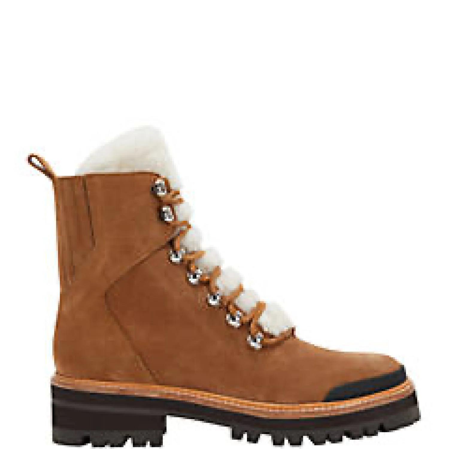 Say hello to the perfect, most versatile boot. The ankle height makes this style easily transition from day to night. Wear them with your favorite skinny jeans and tee for a more laid back look, or pair them with your favorite mini dress and jacket for a night out on the town. The Women's Izzie Ankle Boot elevates outdoor style with its thick treaded soles and distinctive double lace detail, perfect for hiking adventures. Constructed with a leather upper and lined with cozy shearling, this boot ensures both durability and comfort. The rubber outsole provides excellent traction, while the block heel offers stability with a low height of 1.73 inches. The almond toe design adds a modern touch, making these boots a fashionable yet functional choice for any outdoor enthusiast. Size: 5 1/2 Width: Medium Thick treaded sole. 7.87" Shaft height. Rubber sole. 100% Leather. MSRP $271