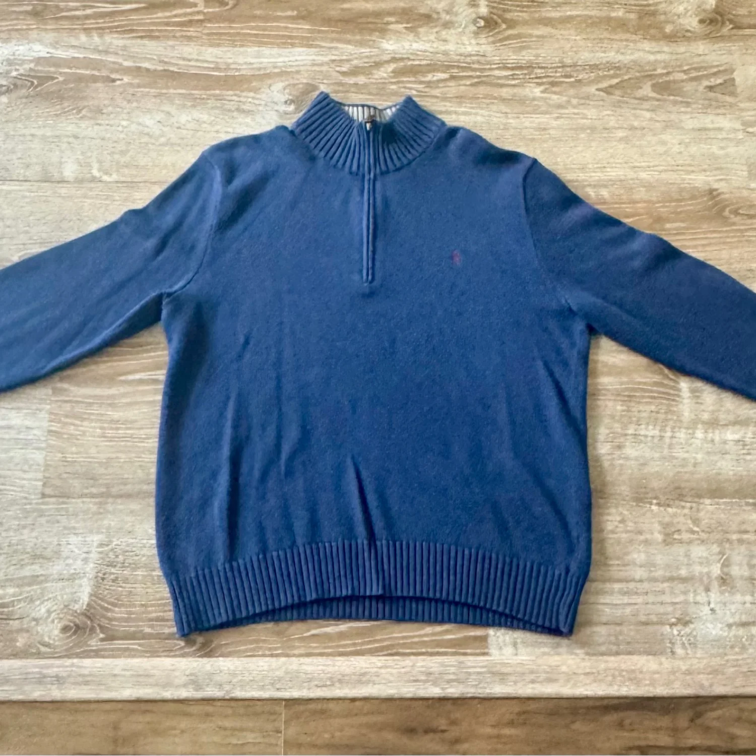Used good condition Premium soft cotton and a signature embroidered Pony elevate this quarter-zip sweater by Polo Ralph Lauren. • Size: Large • Material: 100% Cotton • Neck: 16-16.5” • Chest: 42-45” • Sleeve: 35-36” • Waist: 35-38” • Ribbed knit mockneck • Quarter zip placket • Long sleeves with ribbed cuffs • Ribbed knit hem • Signature embroidered Pony at the left chest • Hand wash cold separately • Made in China • MSRP: $150