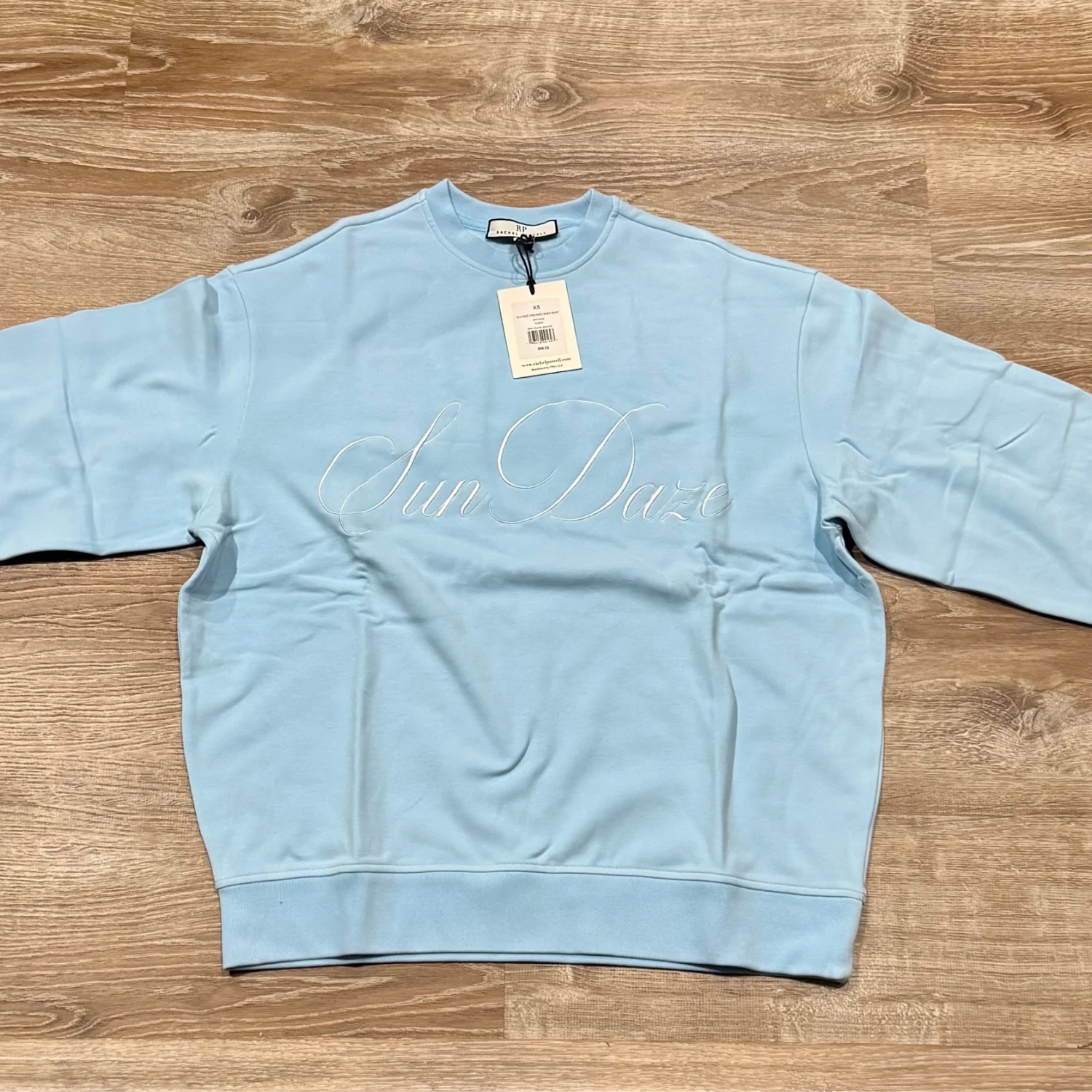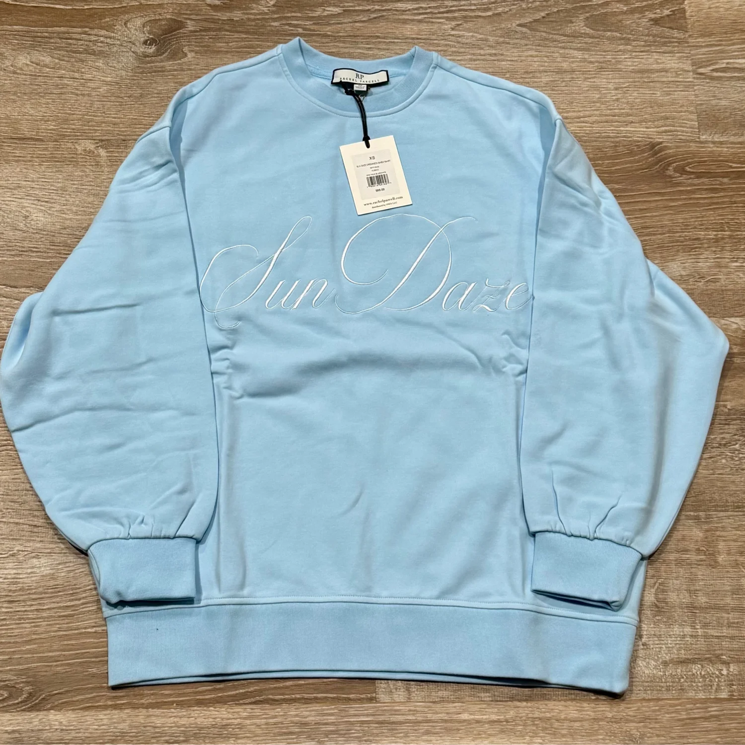 Rachel Parcell White Sun Daze Embroidered Graphic Oversized Crew Neck Elevate your casual look with this sky blue crewneck. Soft and comfortable for everyday wear. Size: XSmall Brand: Rachel Parcell Color: Pale Blue / White Crew neck sweatshirt Oversized fit Pullover styling Embroidered front graphic "Sun Daze" in white Material: 96% Cotton, 4% Elastane Machine wash gentle cycle do not bleach Measurements: underarms pit to pit 25.5” Length: 29 Made in China MSRP: $88