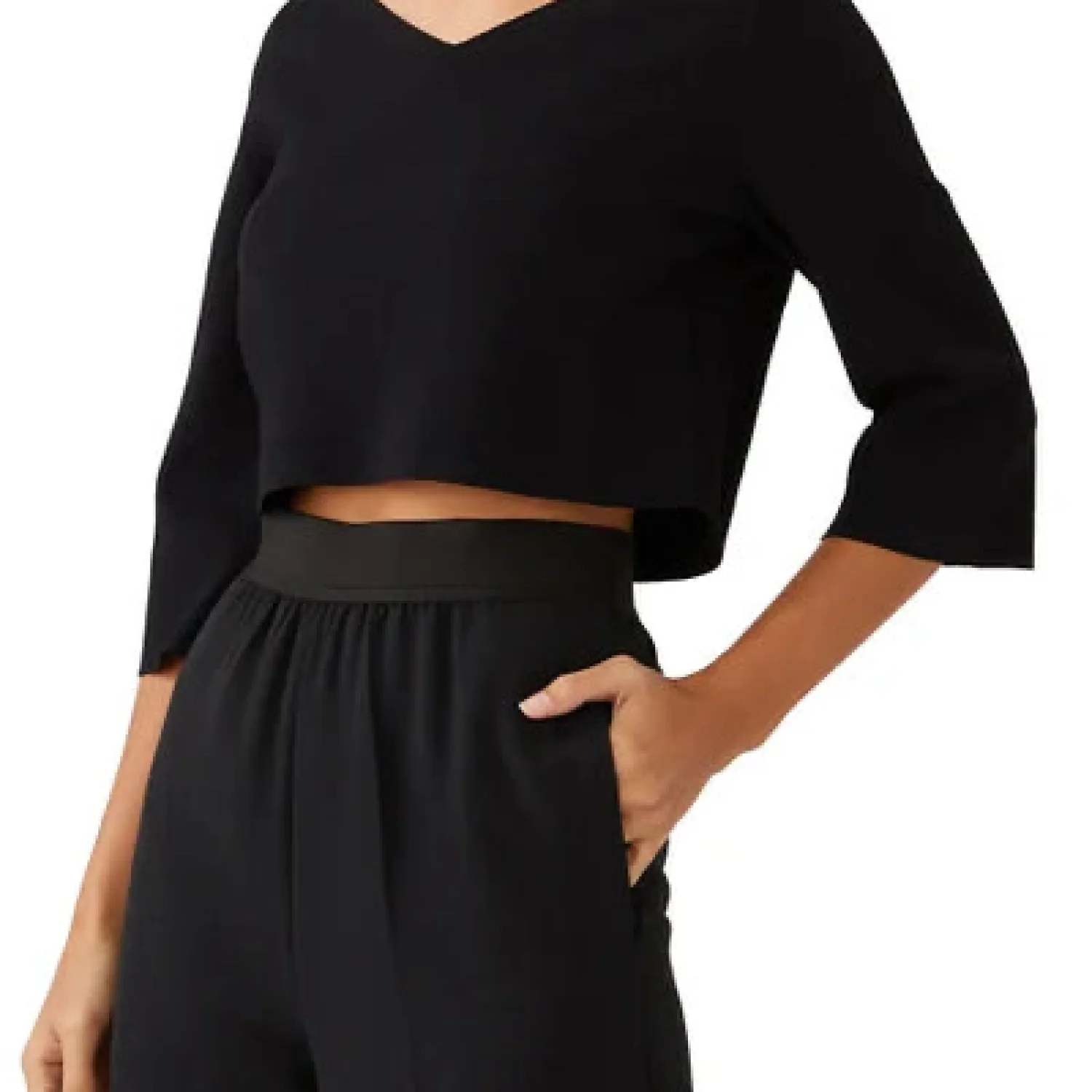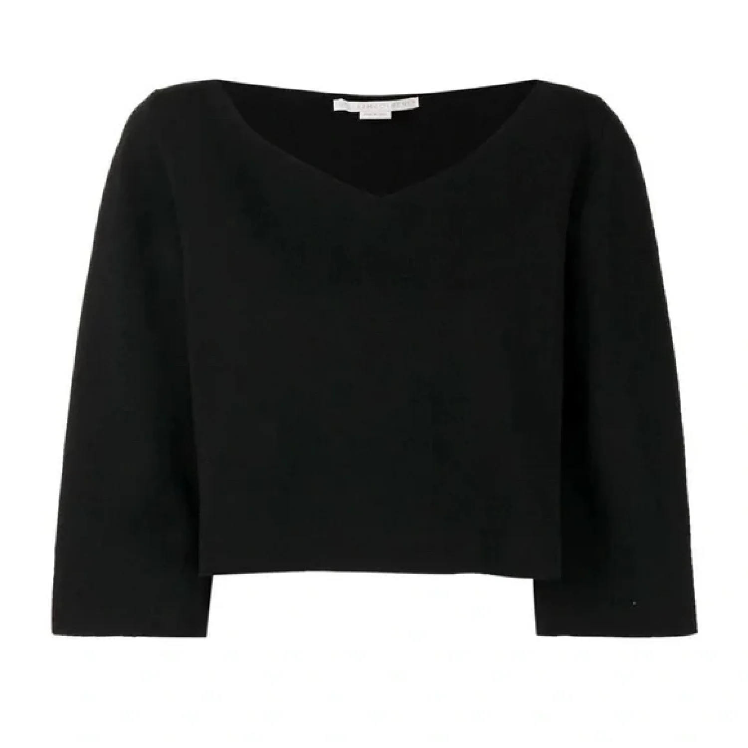Used great condition This Stella McCartney top is an everyday staple. With a gentle V-neck, mid-length sleeves and a slightly cropped design, this wardrobe-essential piece will be with you for years to come. - size 40 - 83% Sustainable Viscose, 17% Polyester - Made in Italy - Dry Clean only - MSRP $1200