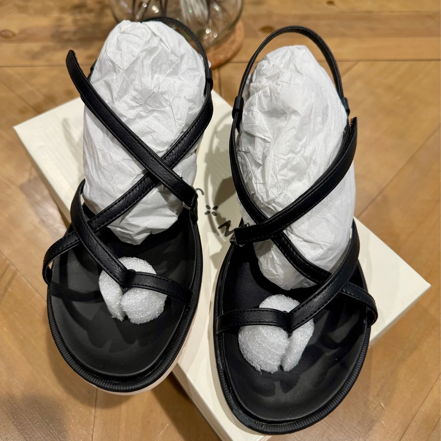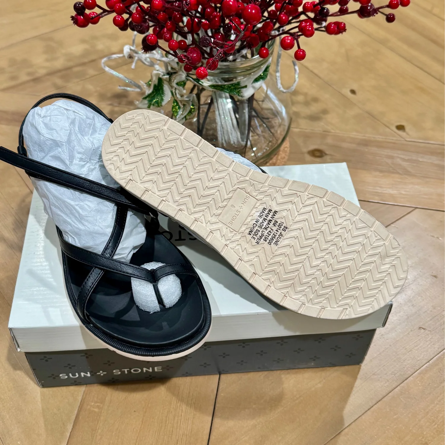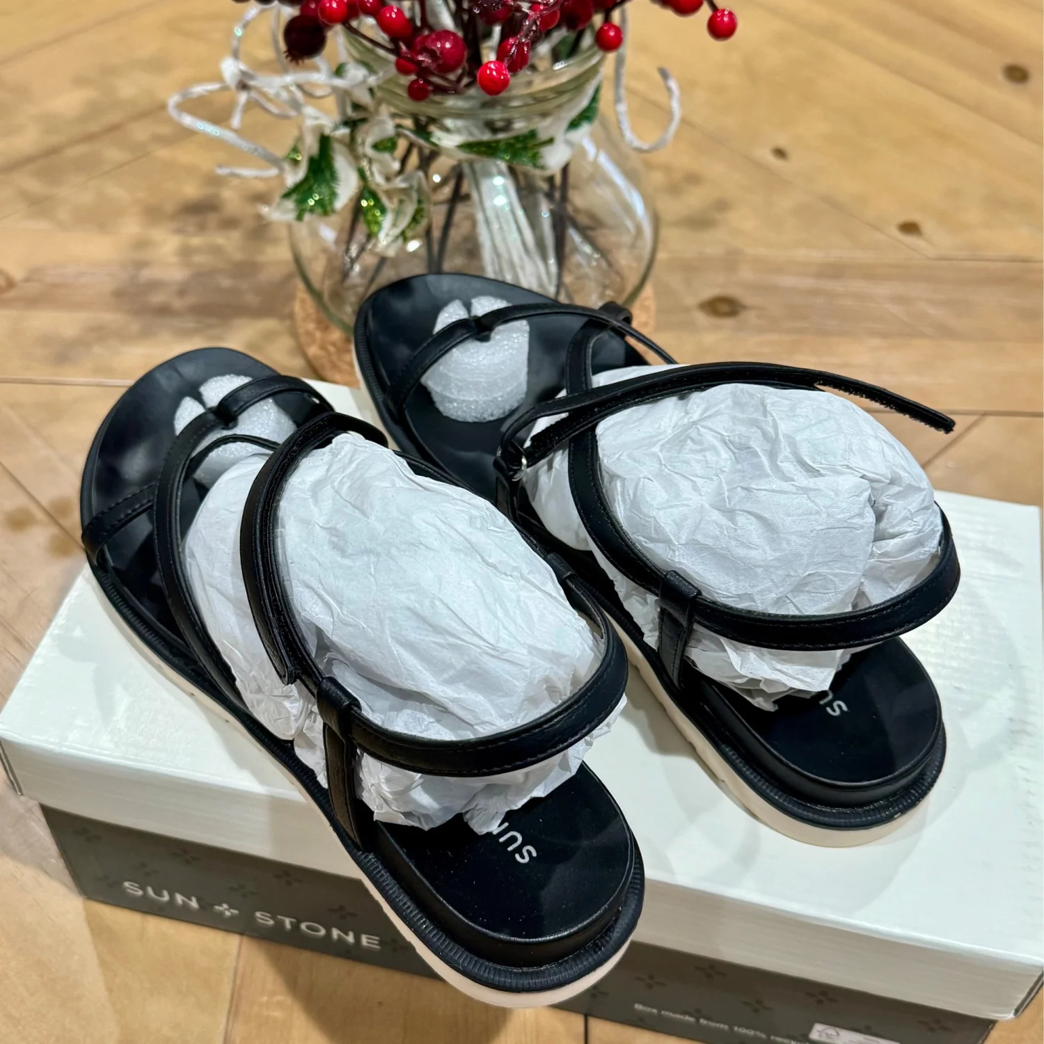 Update your closet with fashion designs from SUN STONE and discover all the stylish pieces they have to offer. You'll find versatile wardrobe trends that will look perfect with various outfits and occasions. Whether you are missing something modern, casual, or chic SUN STONE has the selection your closet, and you, have been waiting for! Size: 8 Width: Medium Fabric Type: Faux Leather Sole material: Rubber Outer material: MAN MADE Closure type: Hook & Loop Slingback Sandals Made in China MSRP: $85