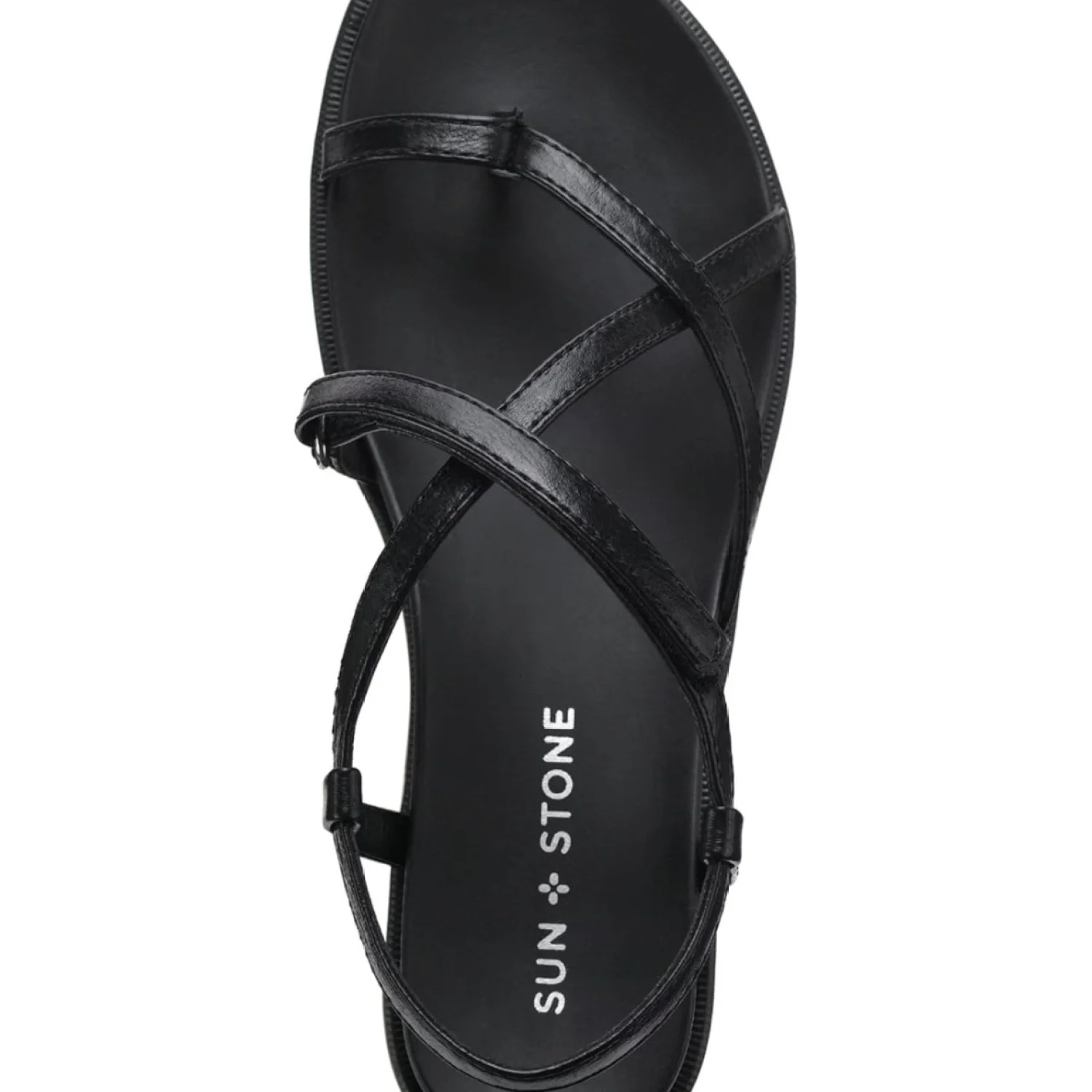 SUN STONE Womens Juune Faux Leather Slingback Sandals