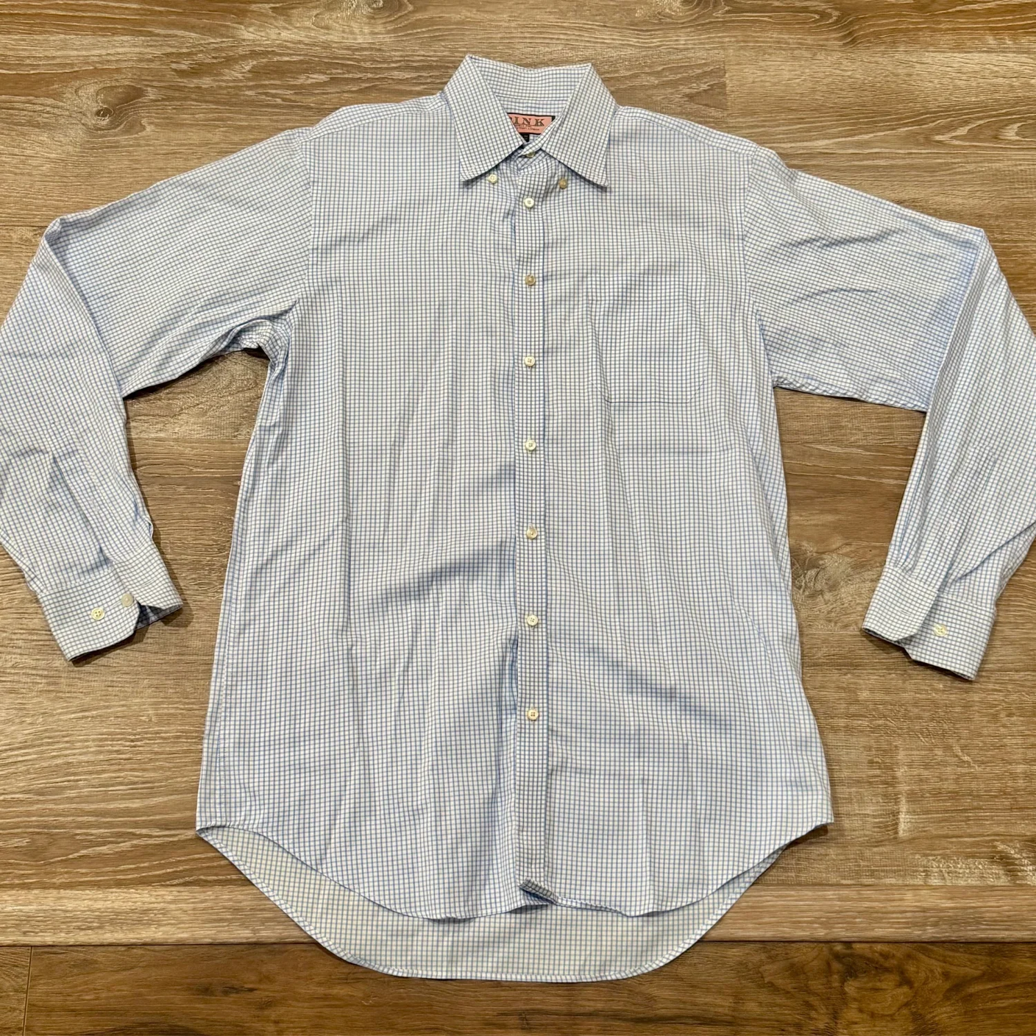 Used great condition Thomas Pink Jermyn Street London Men’s Dress Shirt Blue white check. Sharing the same design DNA as other Thomas Pink shirts, our Traveler shirts have been created as the perfect travel companions. Traveller shirts are made from long-staple cotton and woven to be crease-resistant. This means they can be worn straight from your luggage but will also stay crisp and sharp from departure to arrival and long after. Blending the convenience of an easy-care shirt with the tailoring excellence you expect from Thomas Pink, our Traveller shirts take the toil out of touring. Size: 15.5-36 small Underarm pit to pit flat: 21.5 - 22” Length front: 32.5” Length back: 34” Traveller classic Material: 100% cotton Wash dark colors separately Made in Indonesia MSRP: $175 Available 2