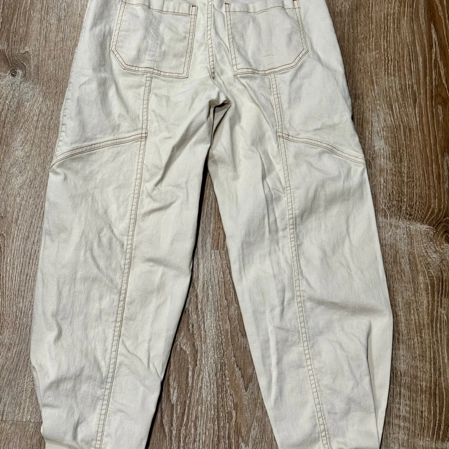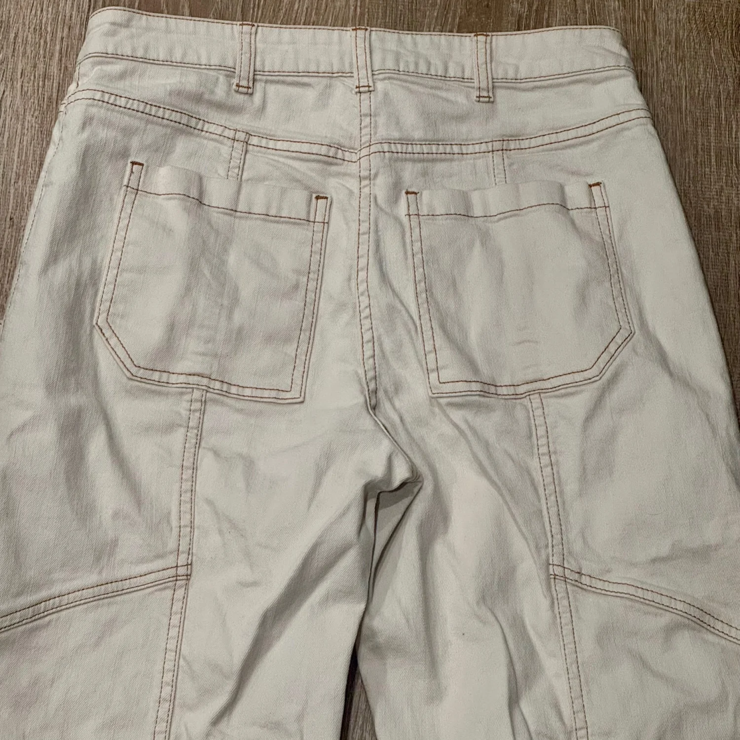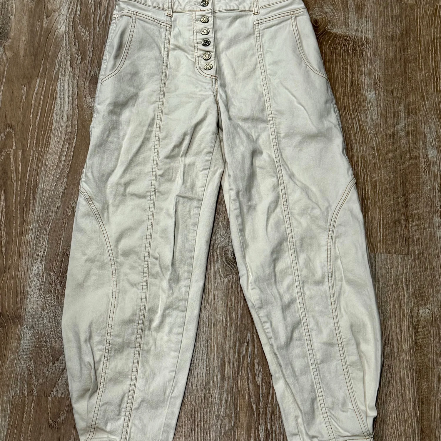 Used great condition Elevate your wardrobe with these chic cream pants. Featuring a stylish button-up design, they offer both comfort and elegance. Perfect for any occasion. Size: 2 / Xsmall Waist: 14” (28) Length: 36” Rise: 11” Material: 99% Cotton 1% Elastane Color: Cream Beige Cold Hand Wash , do not bleach Made in China