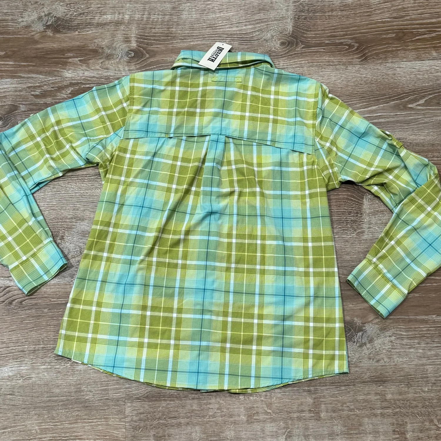 The sidewinder glides through harsh desert landscapes with astonishing fluidity and grace. Sure it's a snake, but a snake so flexible we designed our Sidewinder Shirt to give you that same kind of agility and ease. You'll move effortlessly all day thanks to 4-way flexible DuluthFlex® fabric, underarm gussets and a box pleat. And like its namesake, this shirt is built for searing climates: super-light, 3.2-oz. wicking performance fabric has UPF 30, wicks sweat, keeps you cool. Plus, there's even breathable mesh under the back cape. Super-lightweight performance fabric handles the heat and wicks away sweat Super-flexible fabric plus Reach Gussets® for unrestricted movement No-gap button placket prevents gapping around the gals Button-through tabs for rolling up sleeves Front left pocket zips closed Back locker loop Size: Medium Material: 97% Nylon 3% Spandex Trim fit Machine wash cold with like colors Made in Vietnam MSRP: $69.50