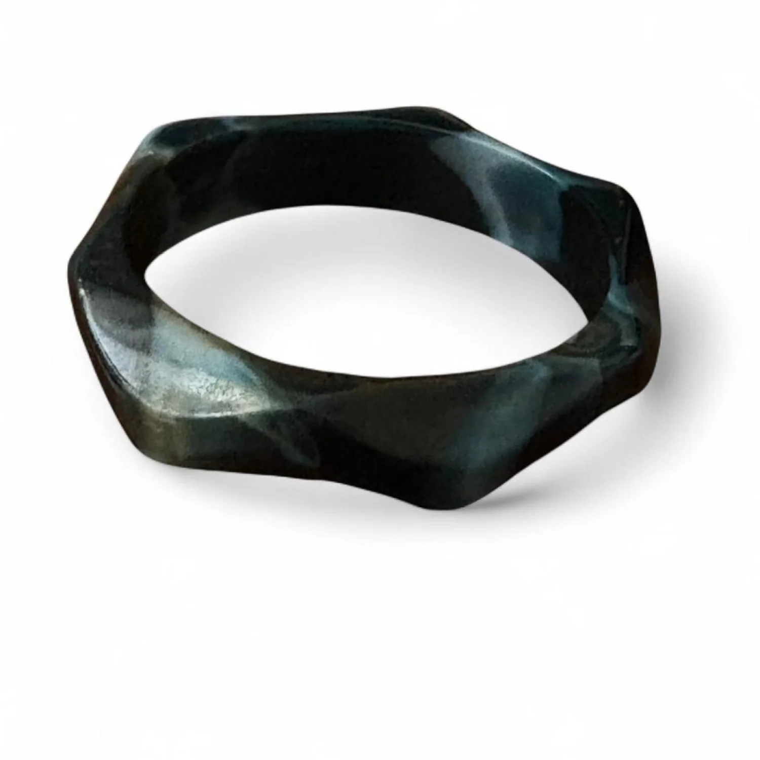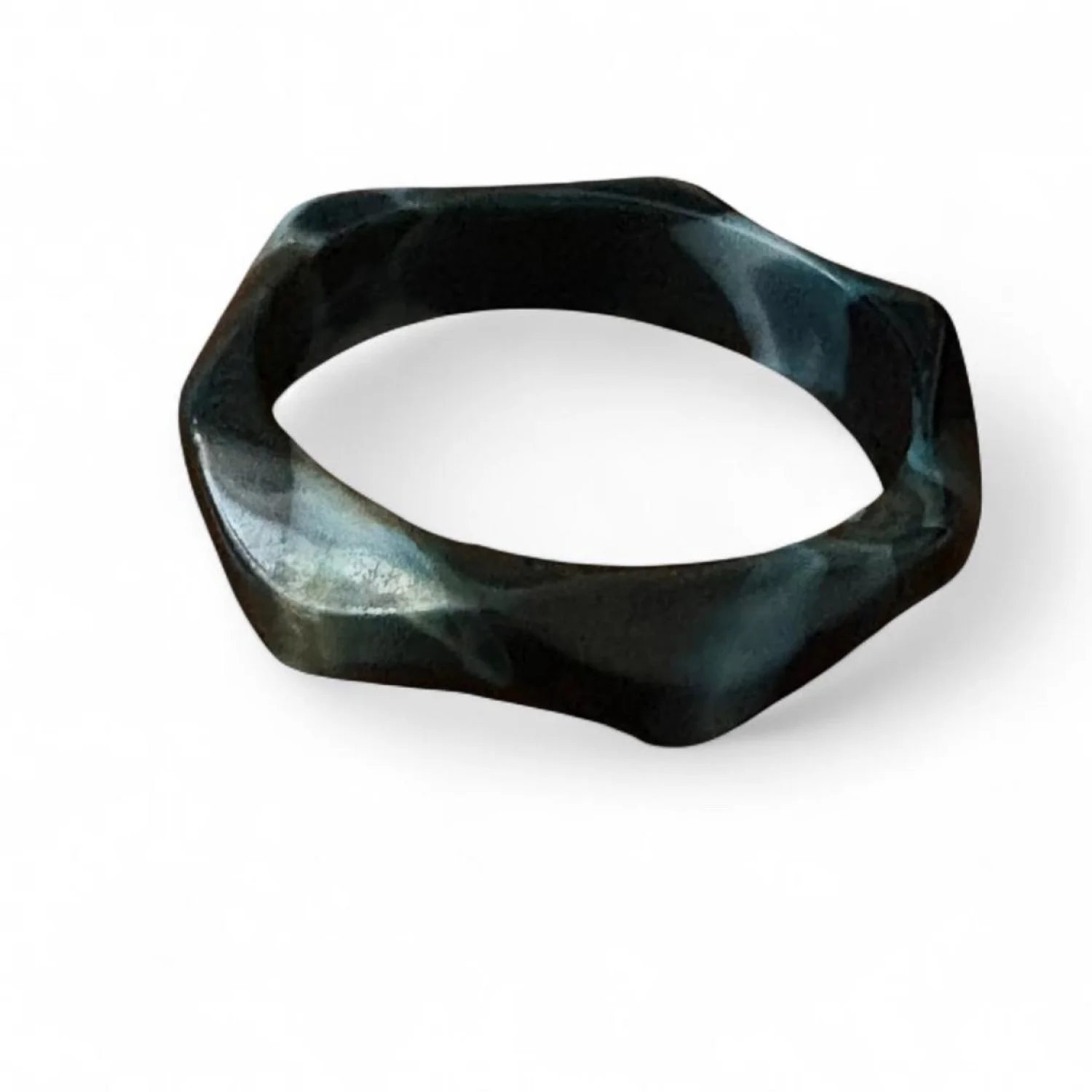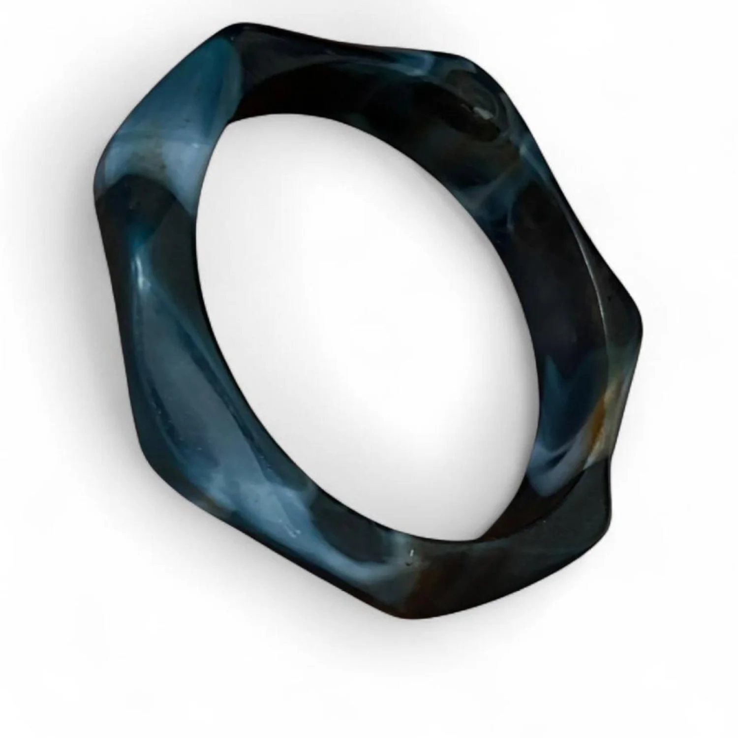 This elegant bangle is crafted from high-quality resin, featuring a unique blue marble pattern that swirls across the surface. Its twisted design adds a modern touch, making it perfect for both casual and formal wear. The bracelet is lightweight and comfortable, ideal for stacking or wearing alone. #bangle #vintage #accessories #party #goth