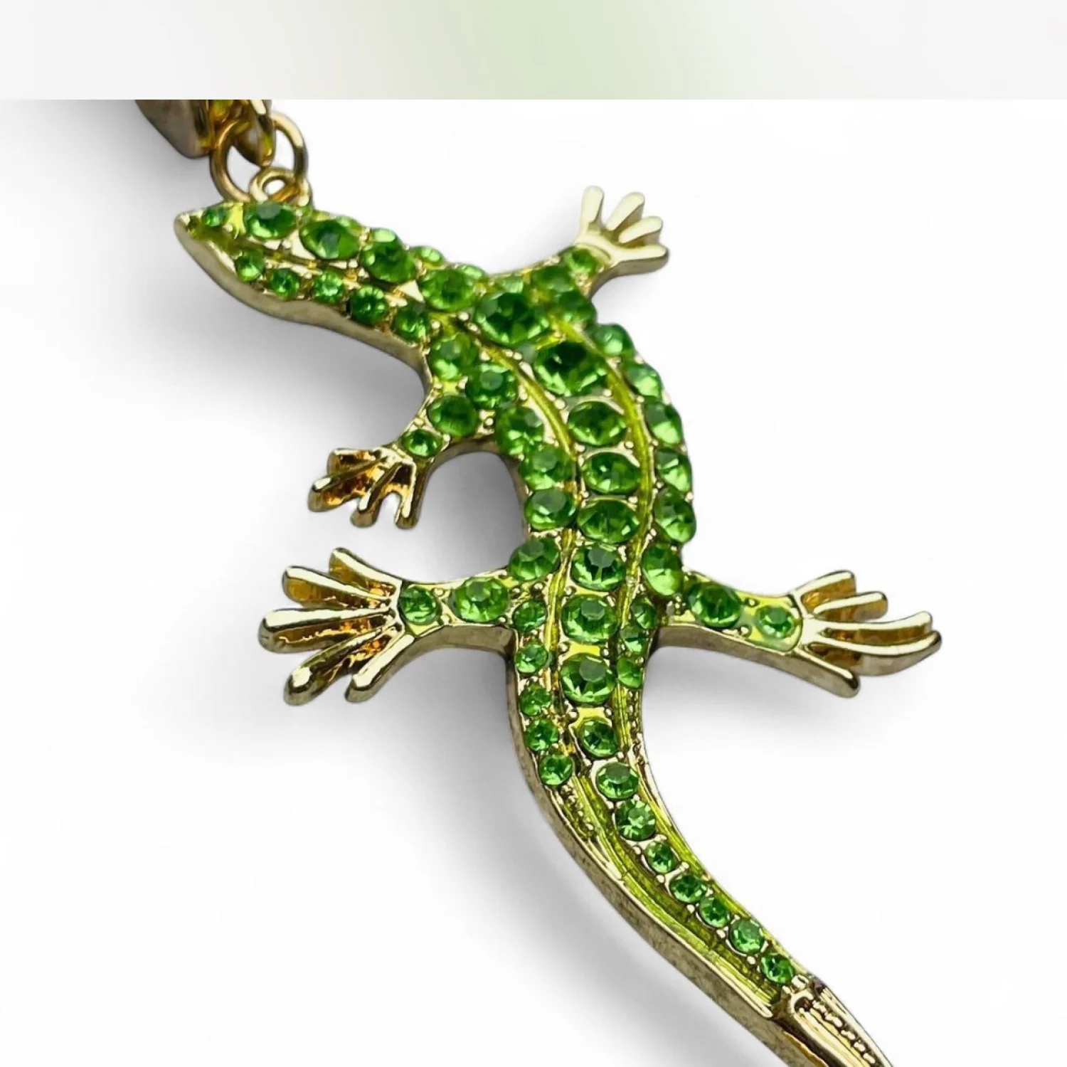 This eye-catching keychain features a lizard design encrusted with vibrant green crystals, perfect for adding a touch of sparkle to your keys or bag. The lizard is detailed with gold-toned metal, giving it a luxurious finish. Ideal for animal lovers or as a quirky gift. #lizard #crystal #accessories