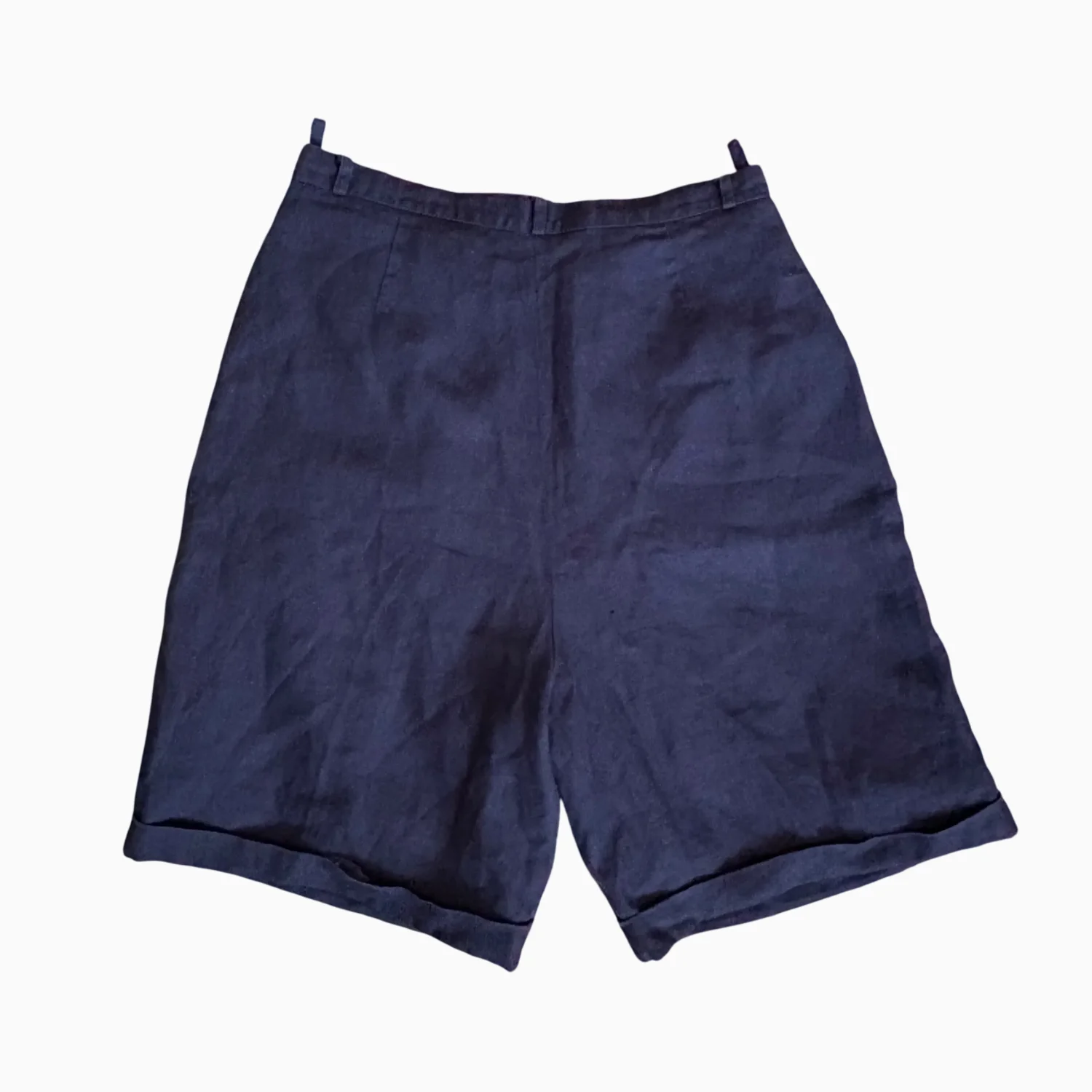 Navy Linen High Waisted Pleated Shorts