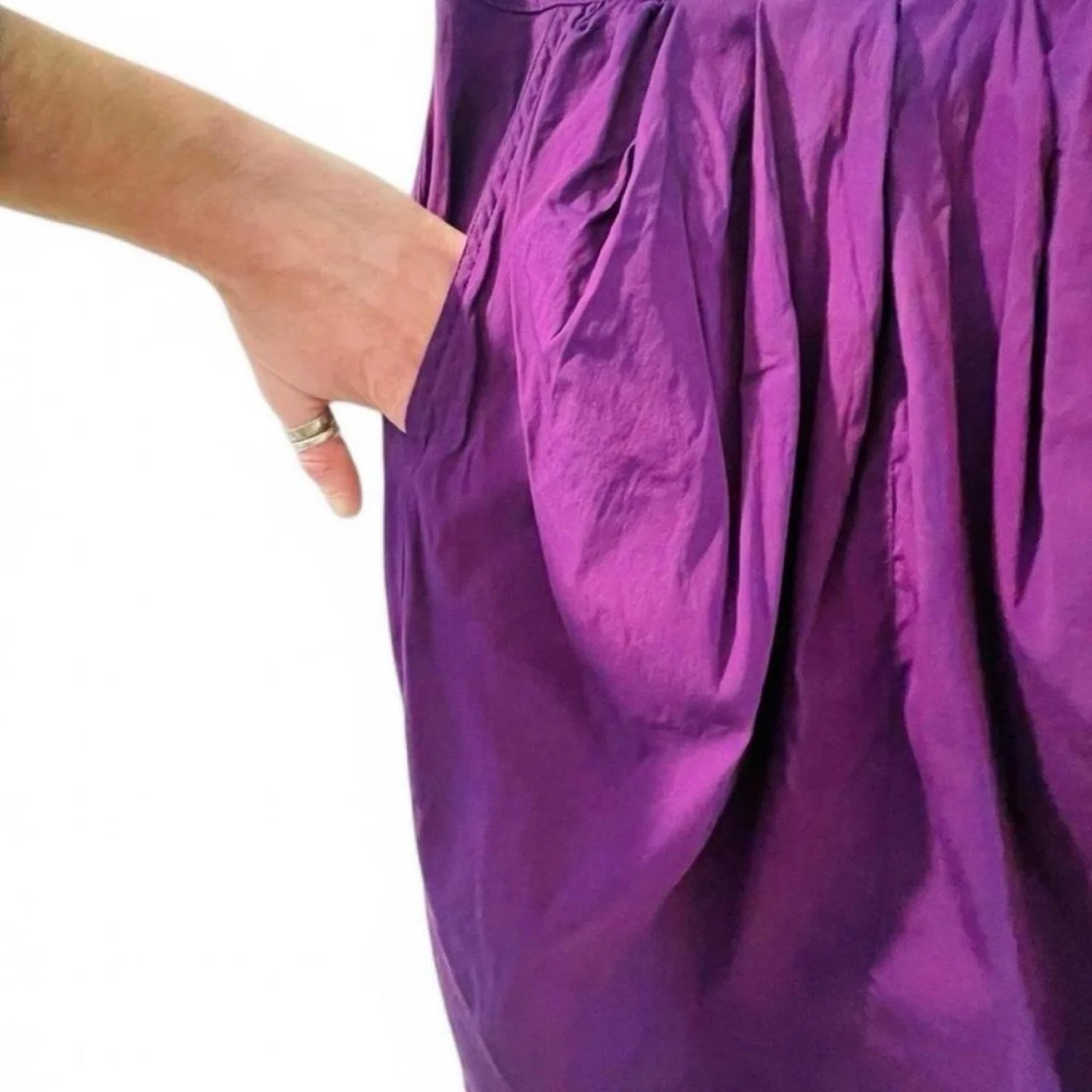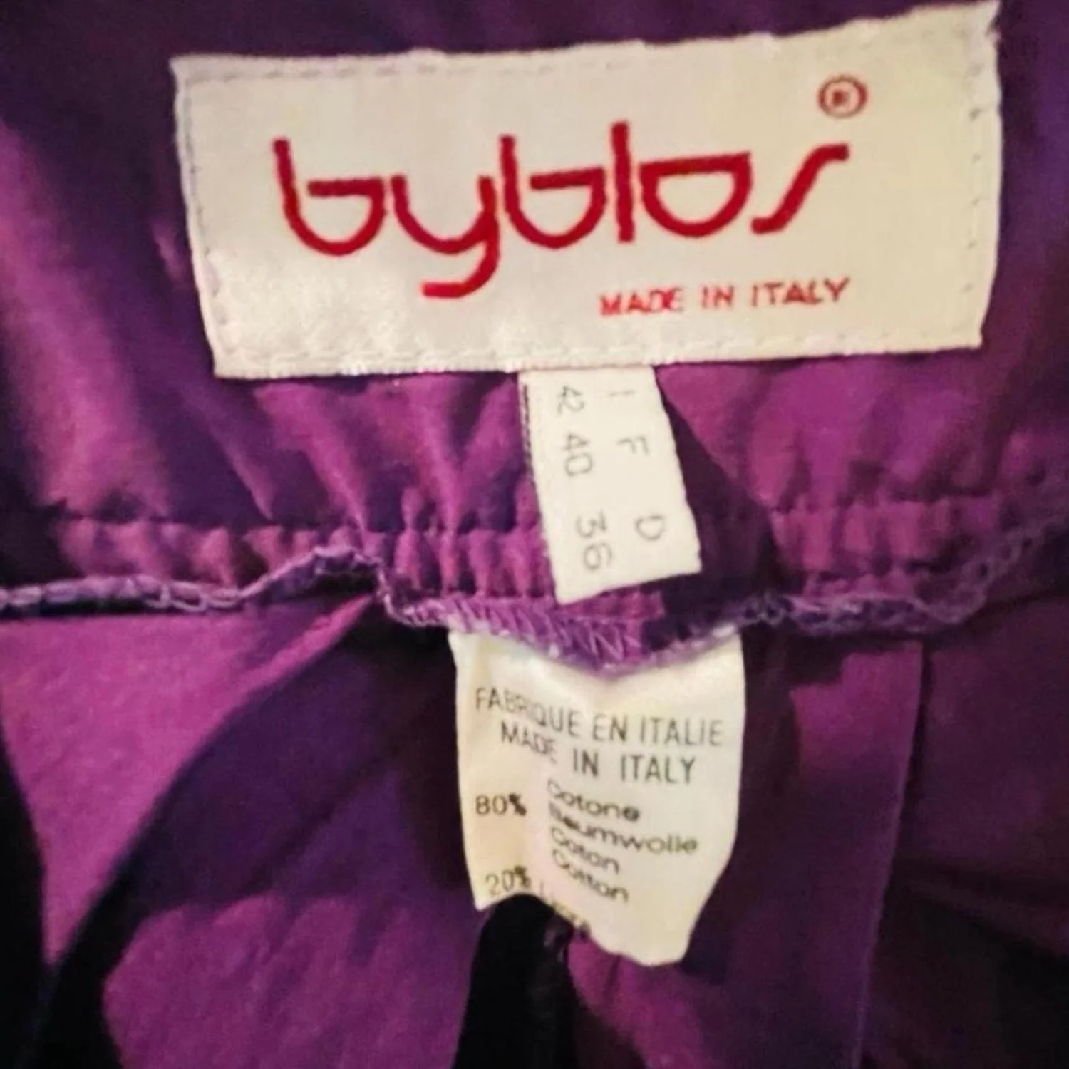 This super rare vibrant purple skirt by Byblos is made in Milan Italy and crafted from 80% cotton and 20% synthetic fiber for a comfortable fit. It features a pleated design, giving it a stylish and flowy look. Size 40 (EU), suitable for a modern chic look. Perfect for casual or formal wear. Vintage sizing. #Byblos #vintageluxury #ItalianFashion #PleatedSkirt