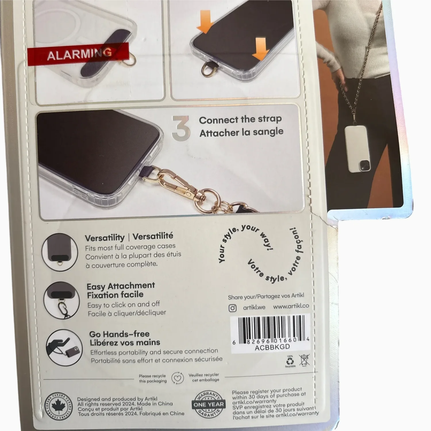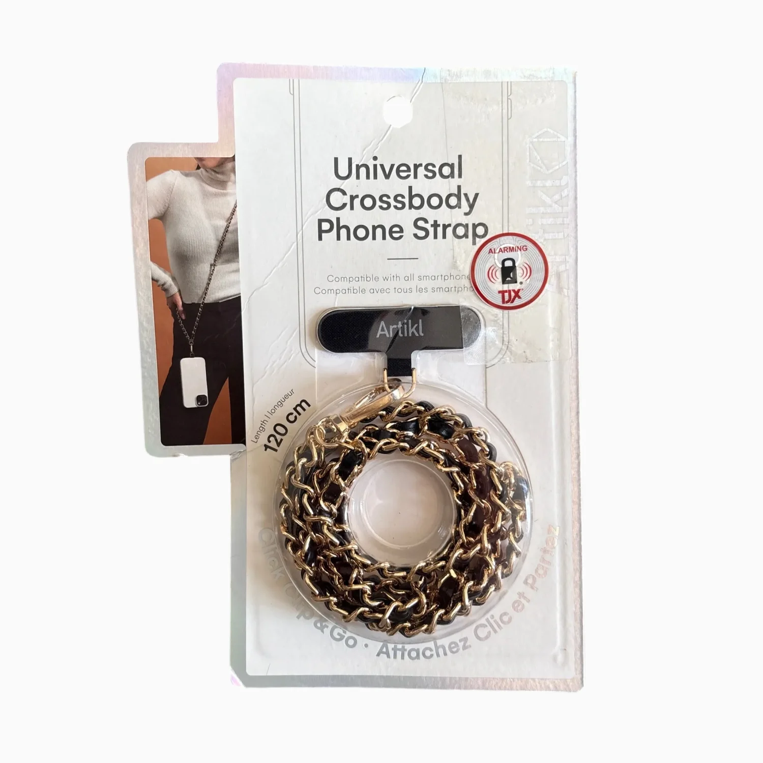 The Arikik Universal Crossbody Phone Strap is a stylish and convenient accessory for carrying your phone hands-free. Featuring a 120 cm chain design in a classic gold and black this strap easily attaches to all smart phone cases. Ideal for everyday use, it combines functionality with modern design. #crossbody #phoneaccessory #punk #glam #accessories