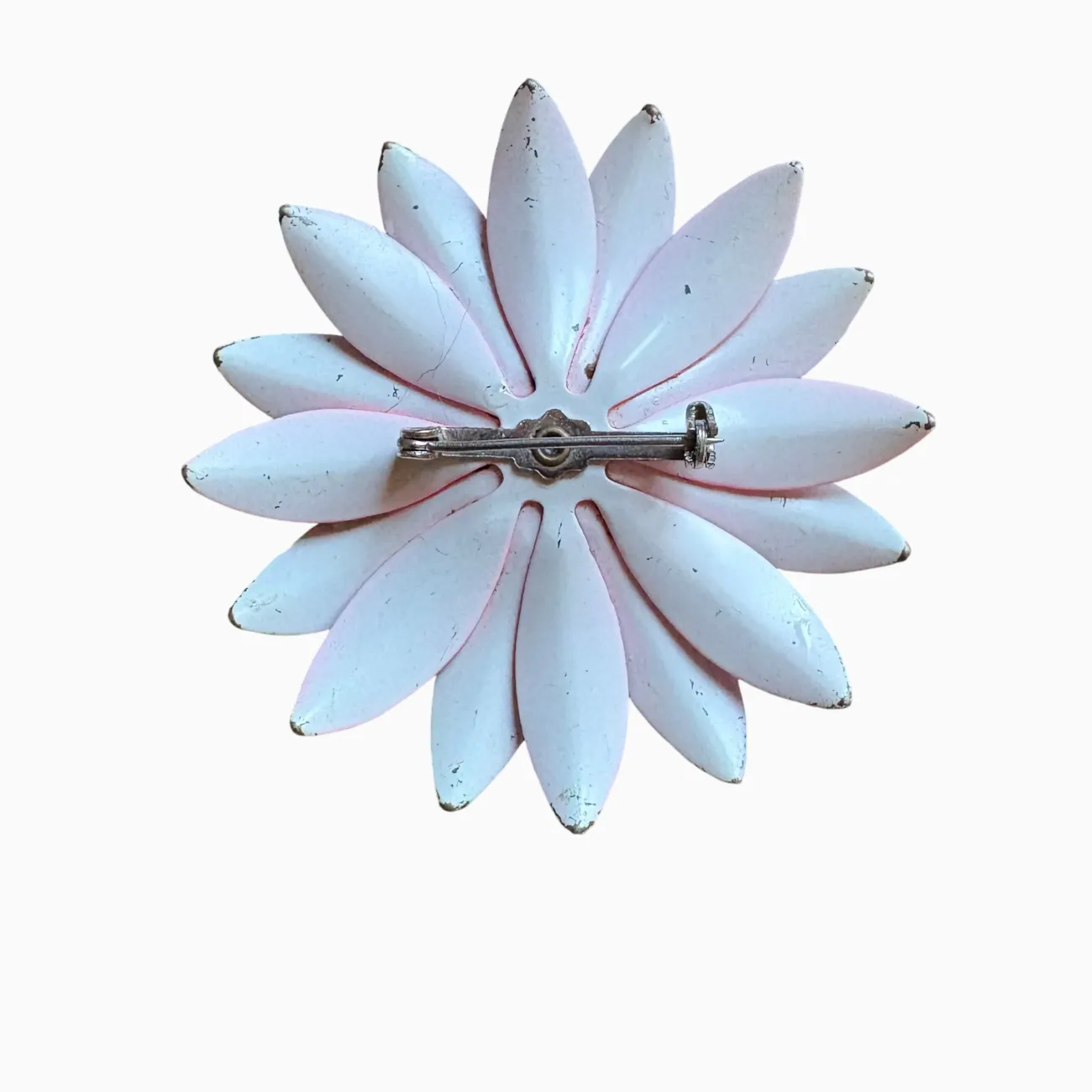 A charming vintage flower brooch featuring pink and purple petals with a secure metal pin backing. Perfect for adding a pop of color to any outfit. Ideal for retro and vintage fashion lovers. #vintagejewelry #flowerpower #brooch #midcentury