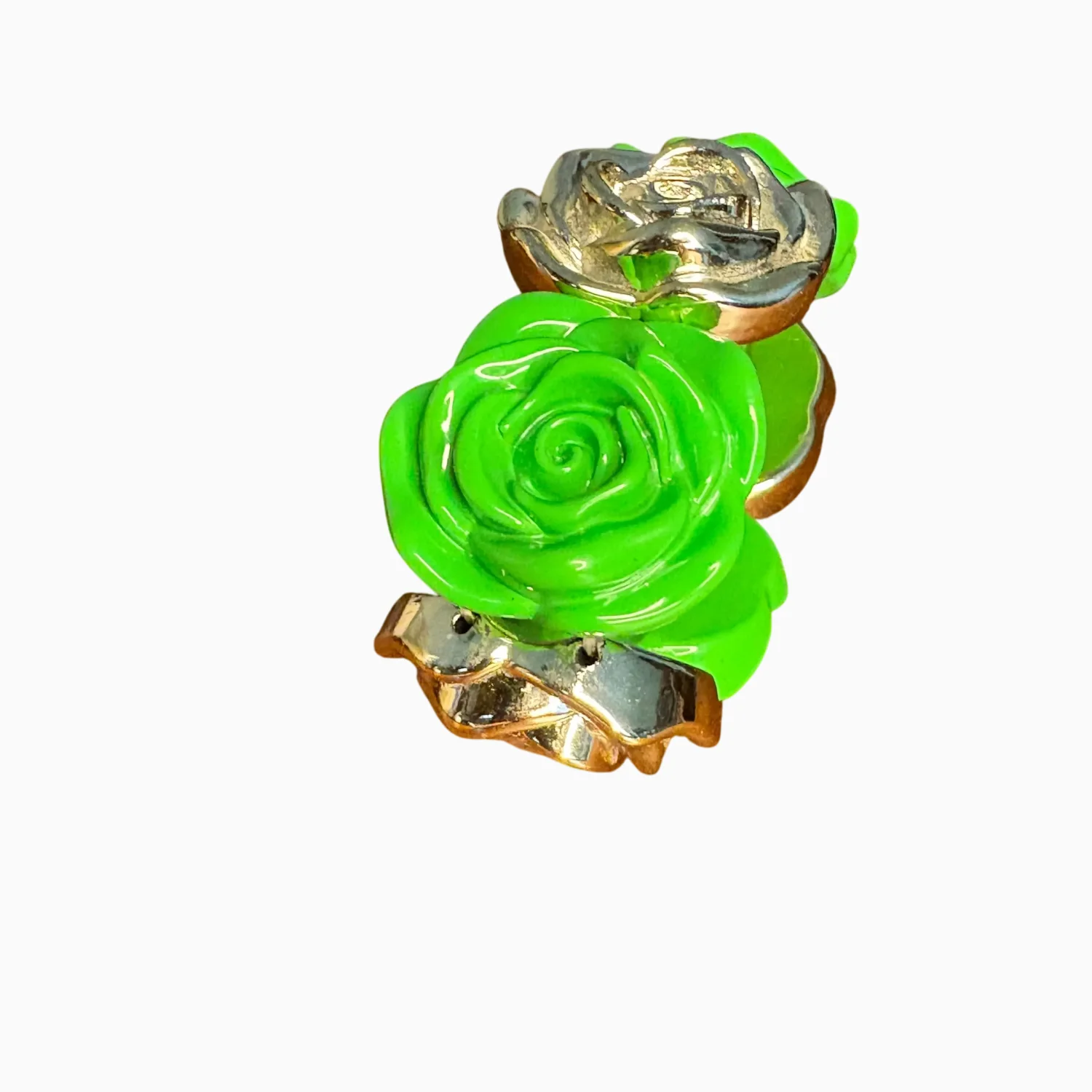 This eye-catching bangle bracelet features vibrant green and gold rose designs, adding a touch of elegance and flair to any outfit. The bracelet is composed of glossy enamel roses and metallic accents, perfect for both casual and formal occasions. Great for stacking or worn alone for a statement look. #floral #y2k #Statement #FairyCore #Floral #sofetch