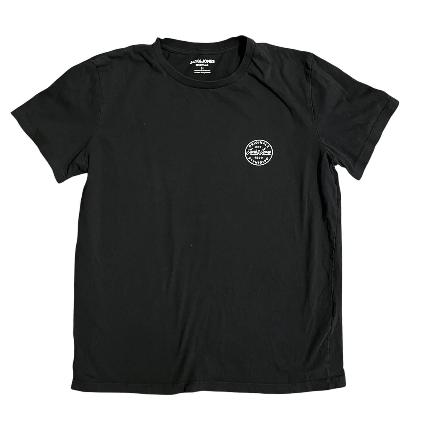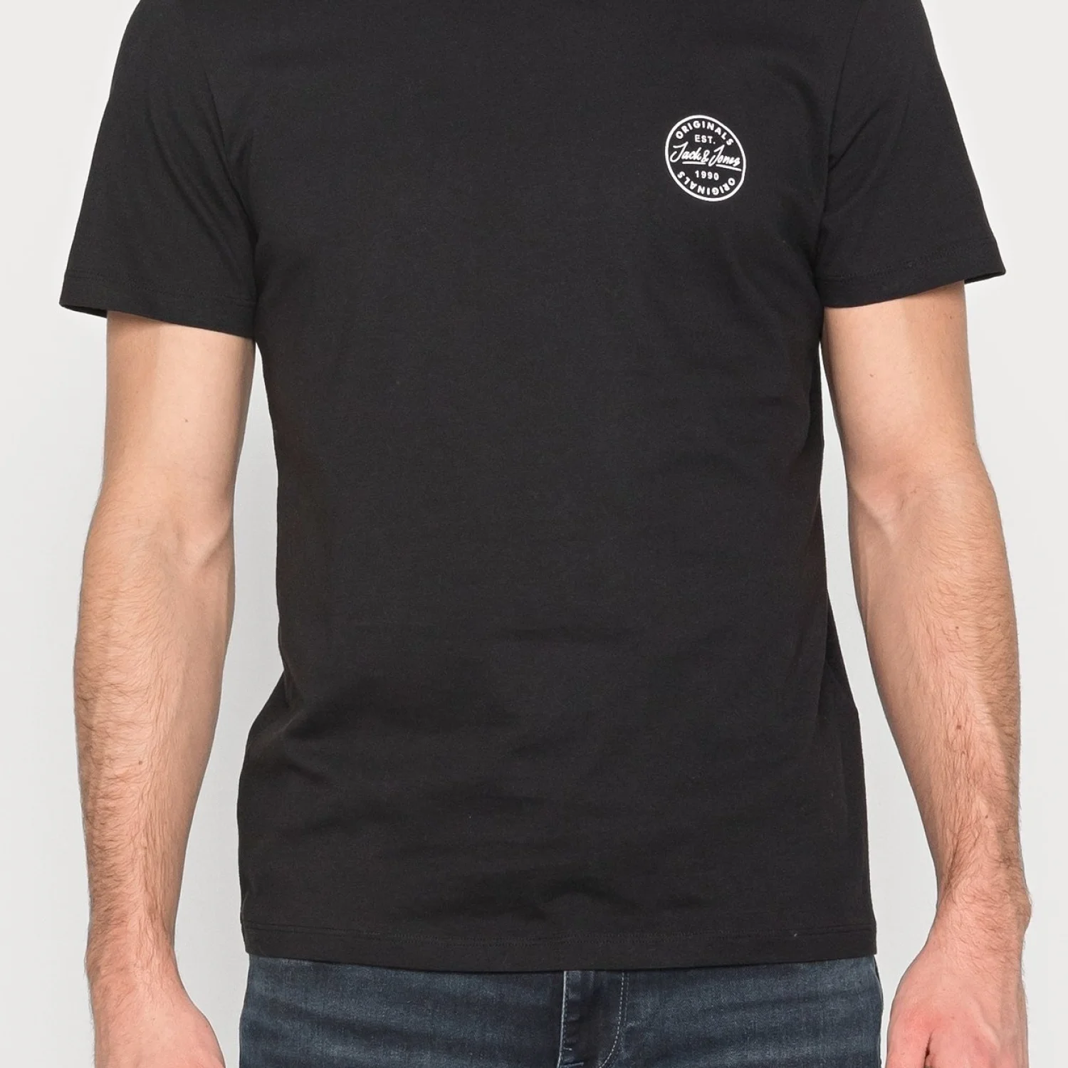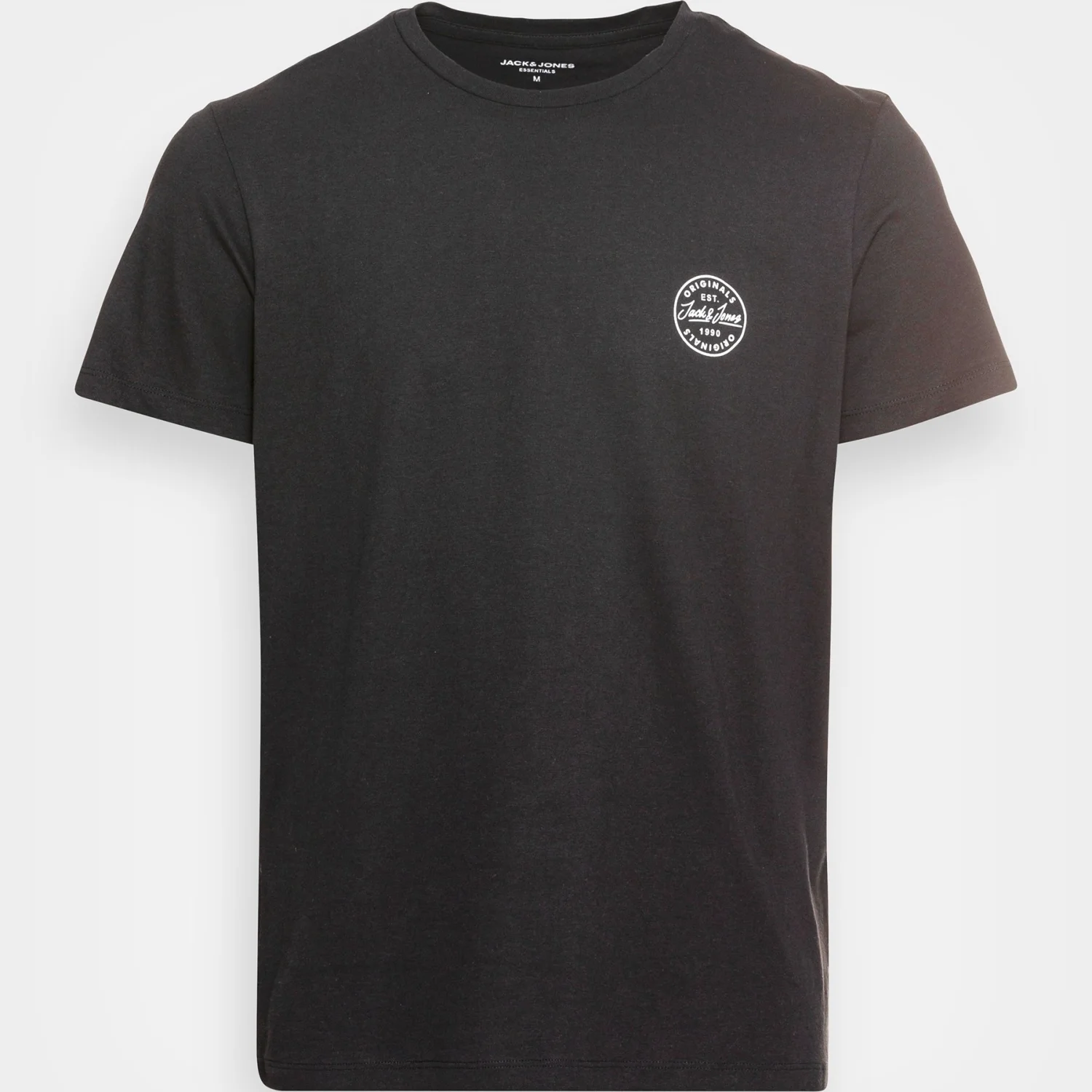 This is a classic black Jack & Jones t-shirt featuring a small circular logo on the left chest. Crafted from soft cotton, it offers a comfortable fit perfect for everyday wear. Ideal for casual outings.