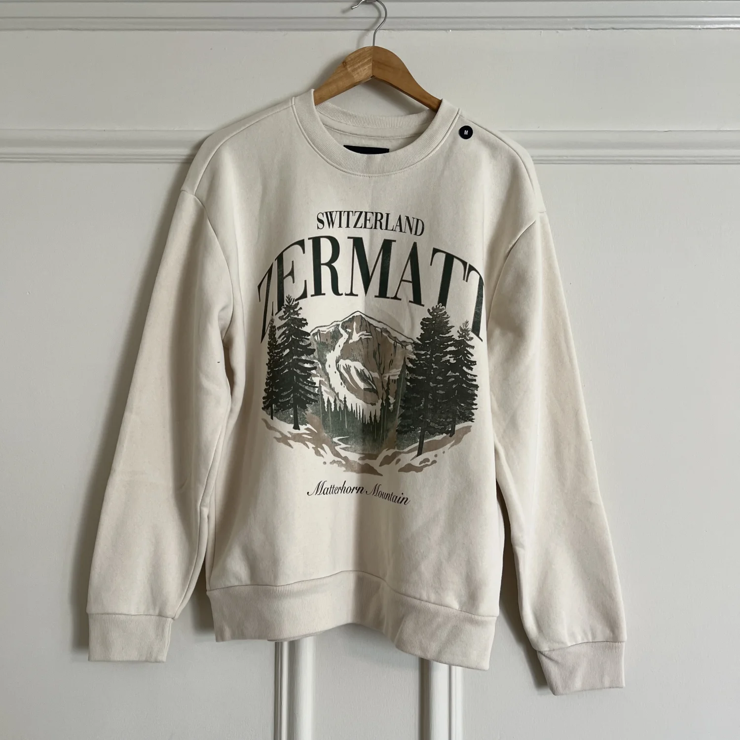 New with tags Hollister Sweater - Zermatt Switzerland, cream color. On the top right is the“M” for Medium sticker