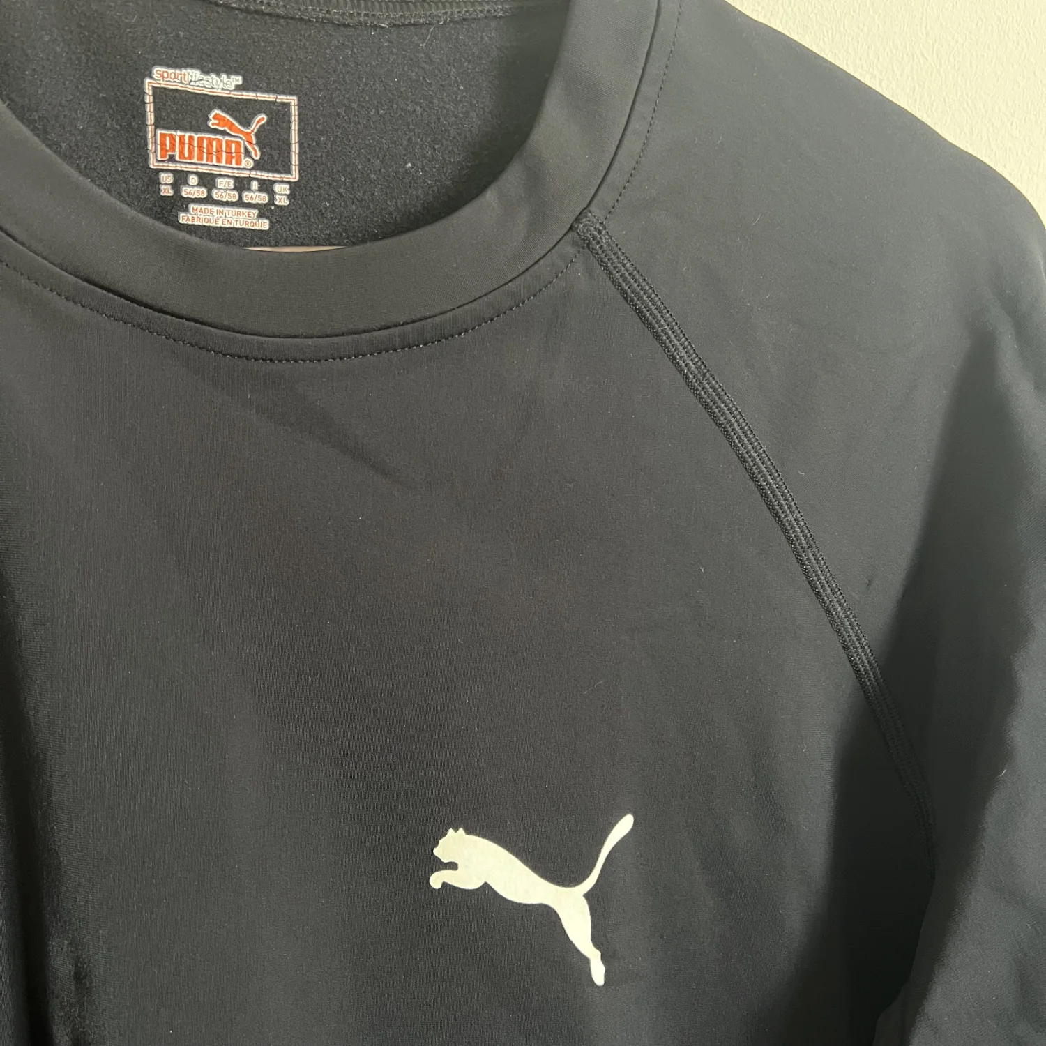 Fleece in er, Puma athletic shirt or light sweater. Not sure what you’d call it.