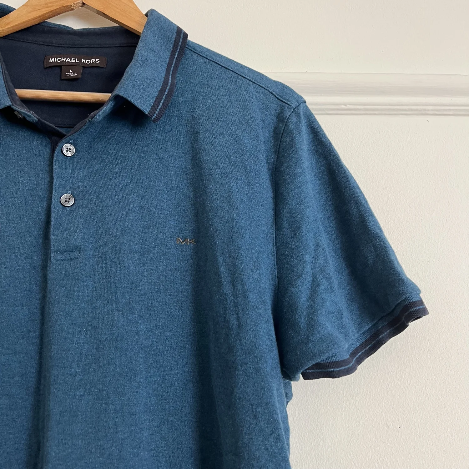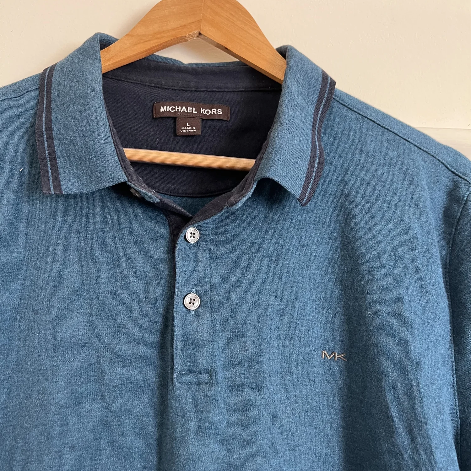 Michael Kors Teal Polo with MK logo.