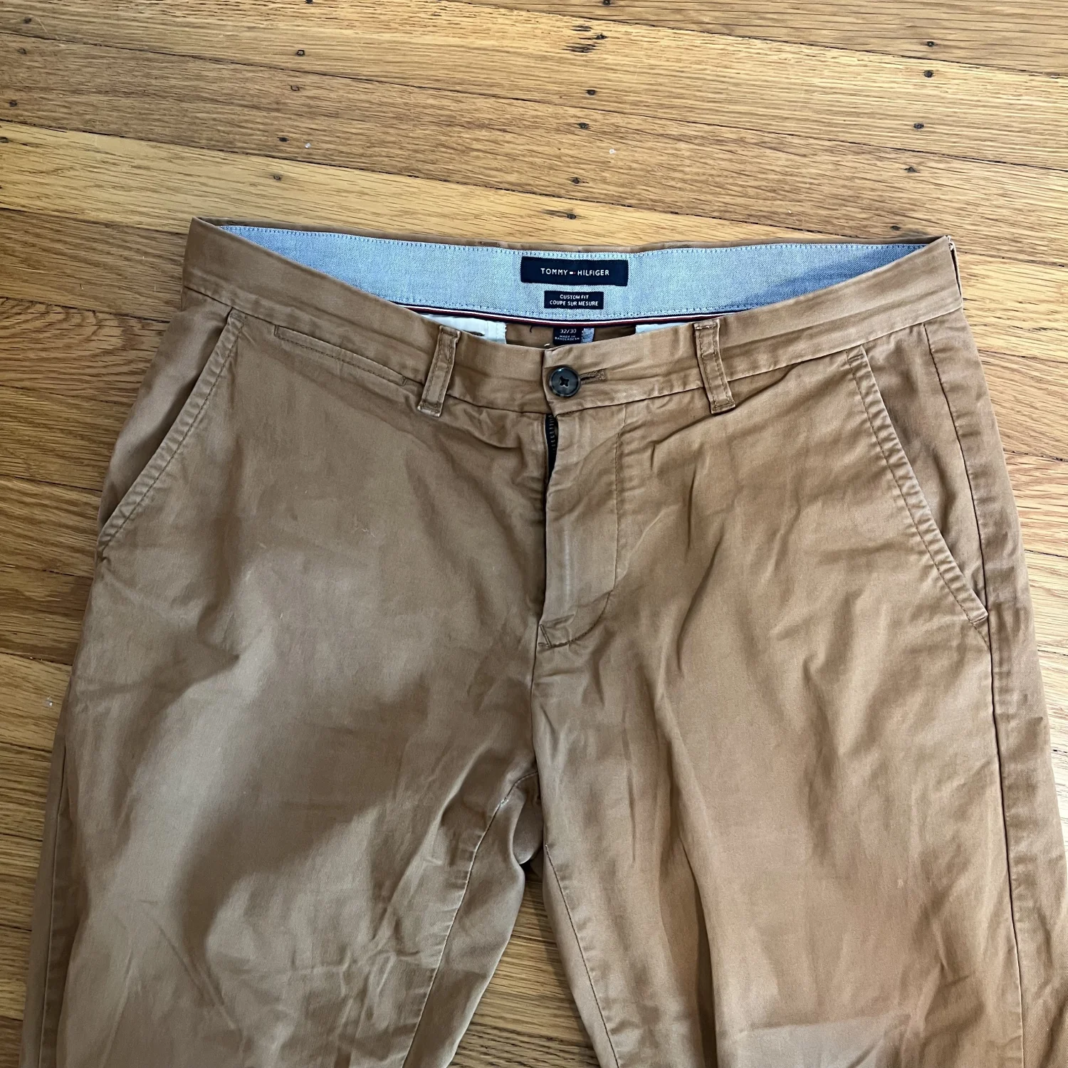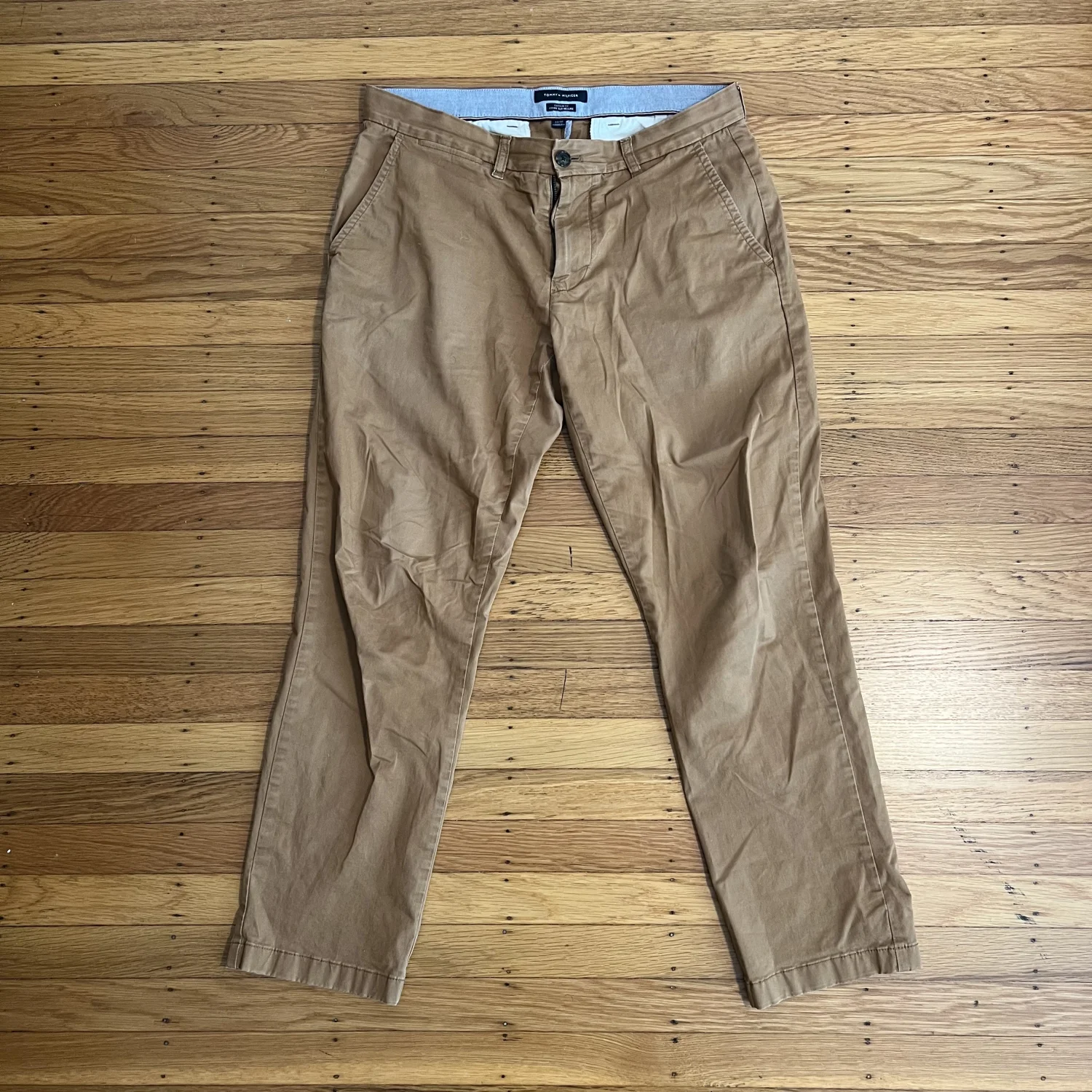 Classic preppy chinos from Tommy Hilfiger. Honey / darker khaki color. Do note the condition in the photos, particularly the back. Priced according, condition as is. You may be able to get out the marks.