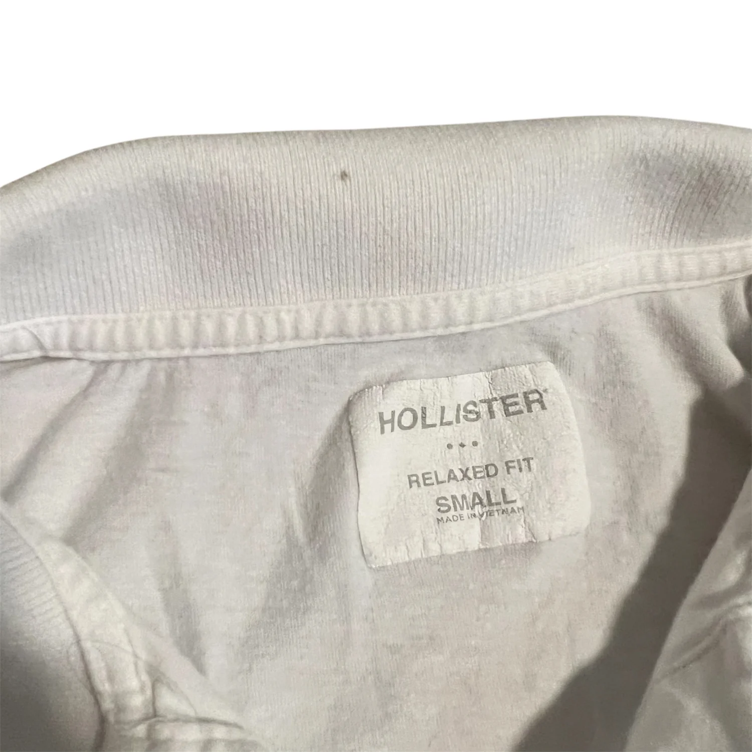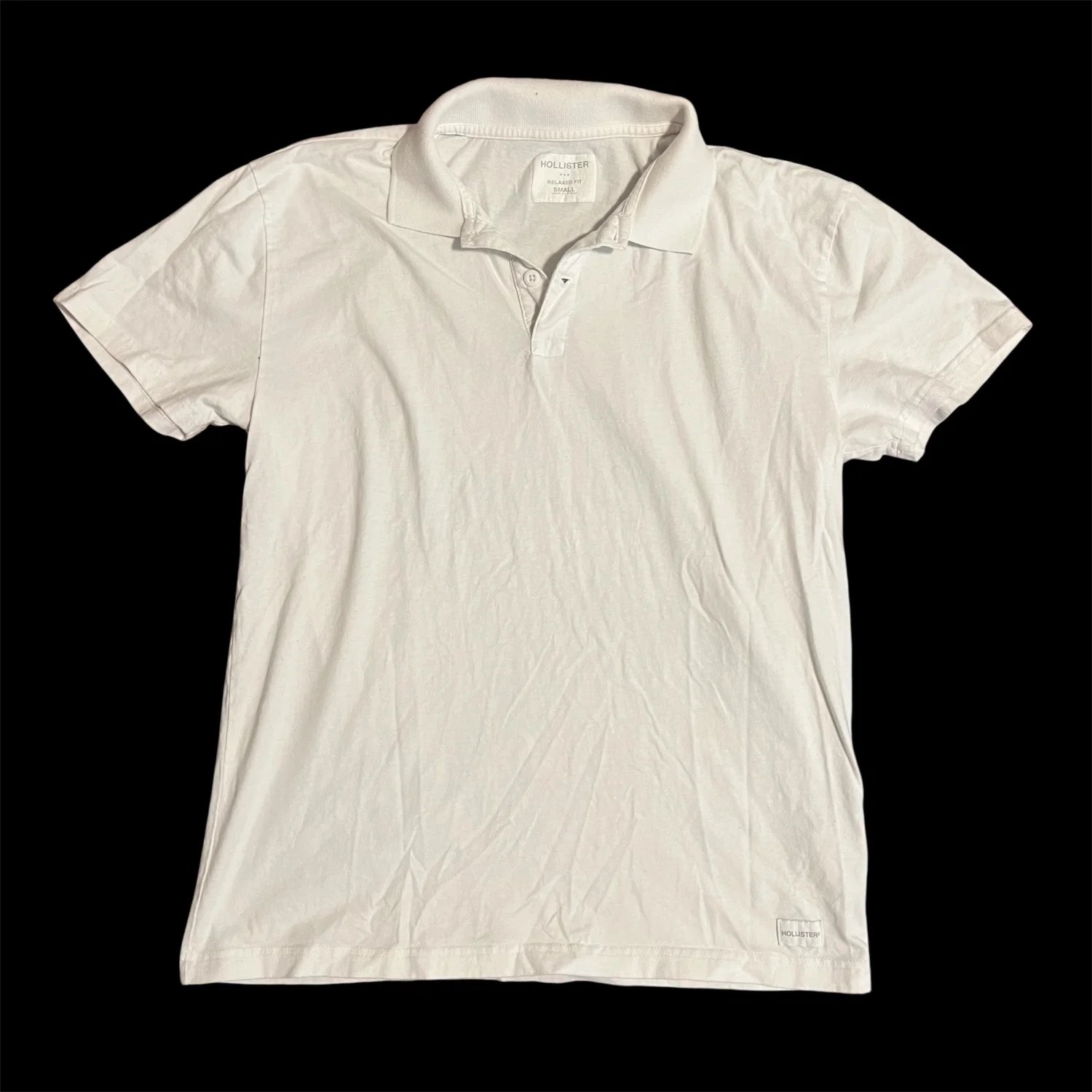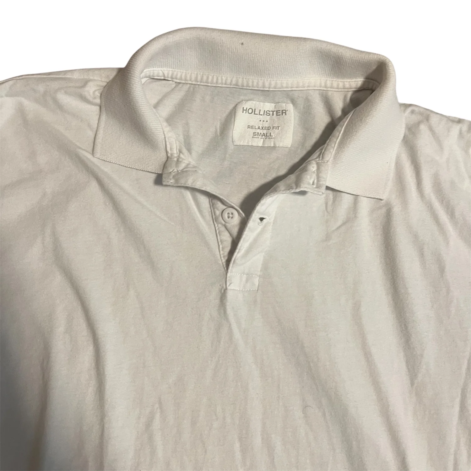 Hollister polo, relaxed fit, two buttons, small logo tag at the bottom. Size is Small. Ideal for everyday wear or casual outings. #Casual #WhitePolo #Hollister#Preppy #y2k