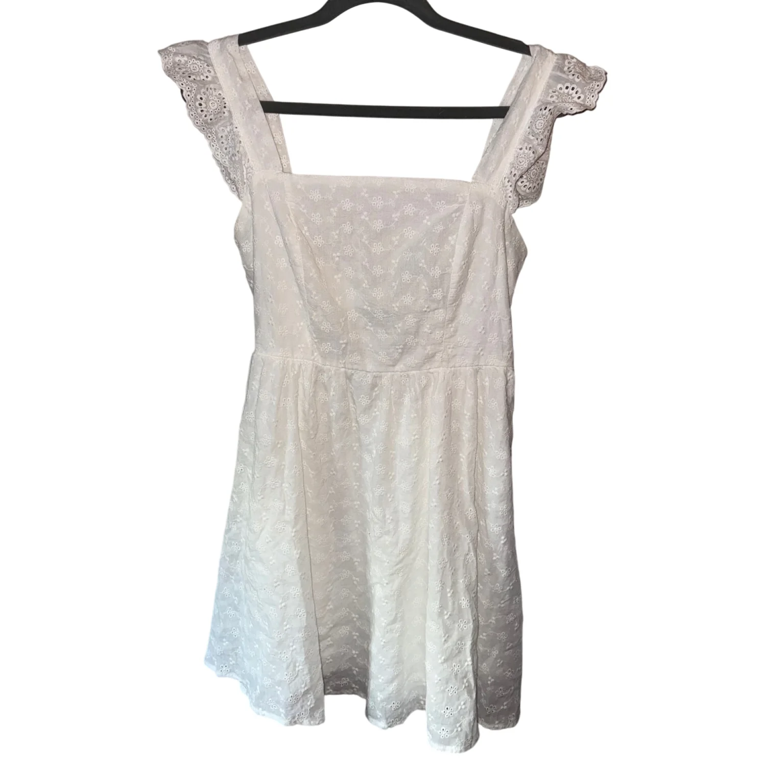 This charming white dress features delicate lace detailing and a flattering silhouette. With sleeveless shoulders adorned with lace ruffles and a tie-back design, it's perfect for summer events or casual outings. Ideal for those who appreciate a blend of elegance and comfort. Tags: #lace, #summerdress, #sleeveless.