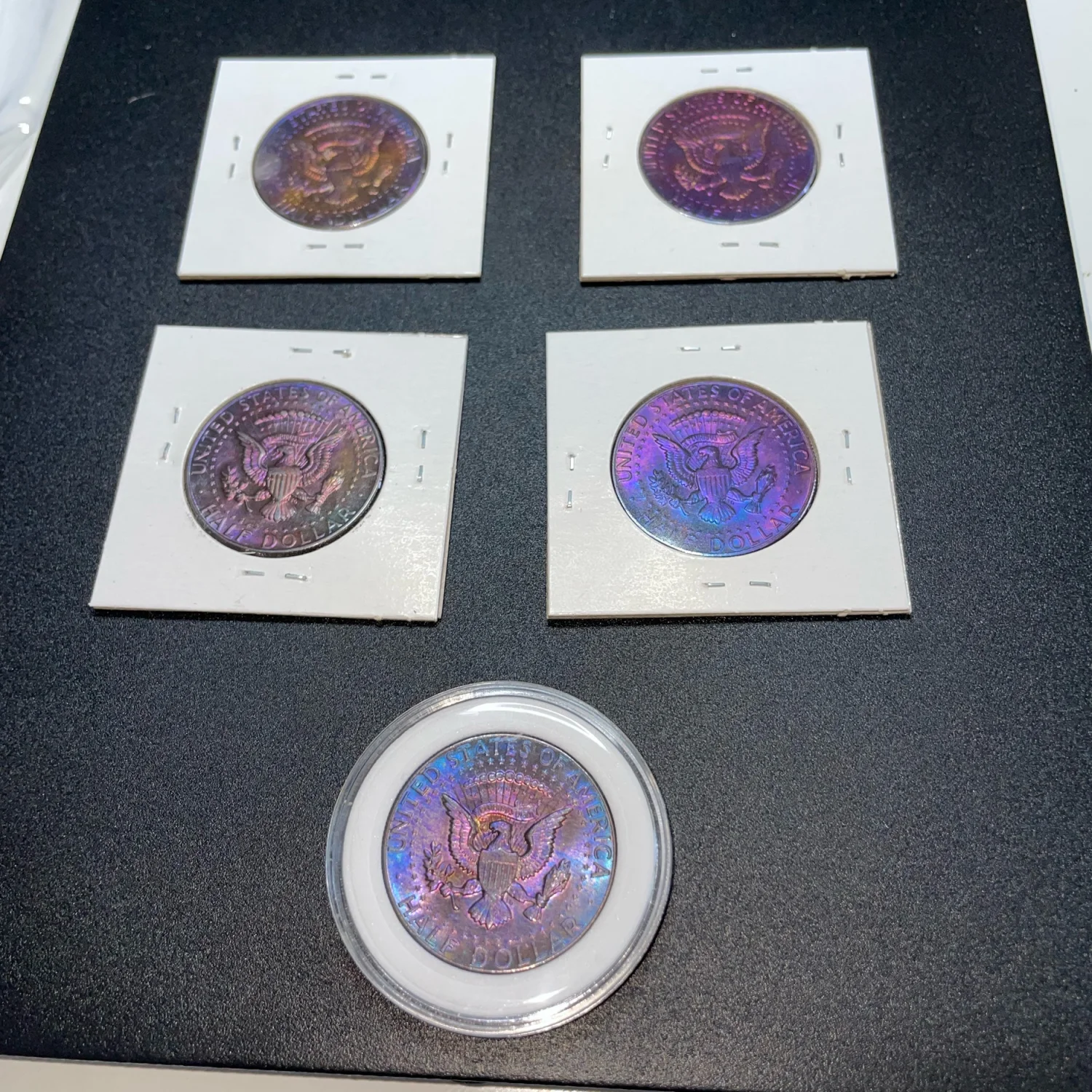 5 Naturally toned Kennedy coins with blue and reddish hues a beautiful coin to add to your collection